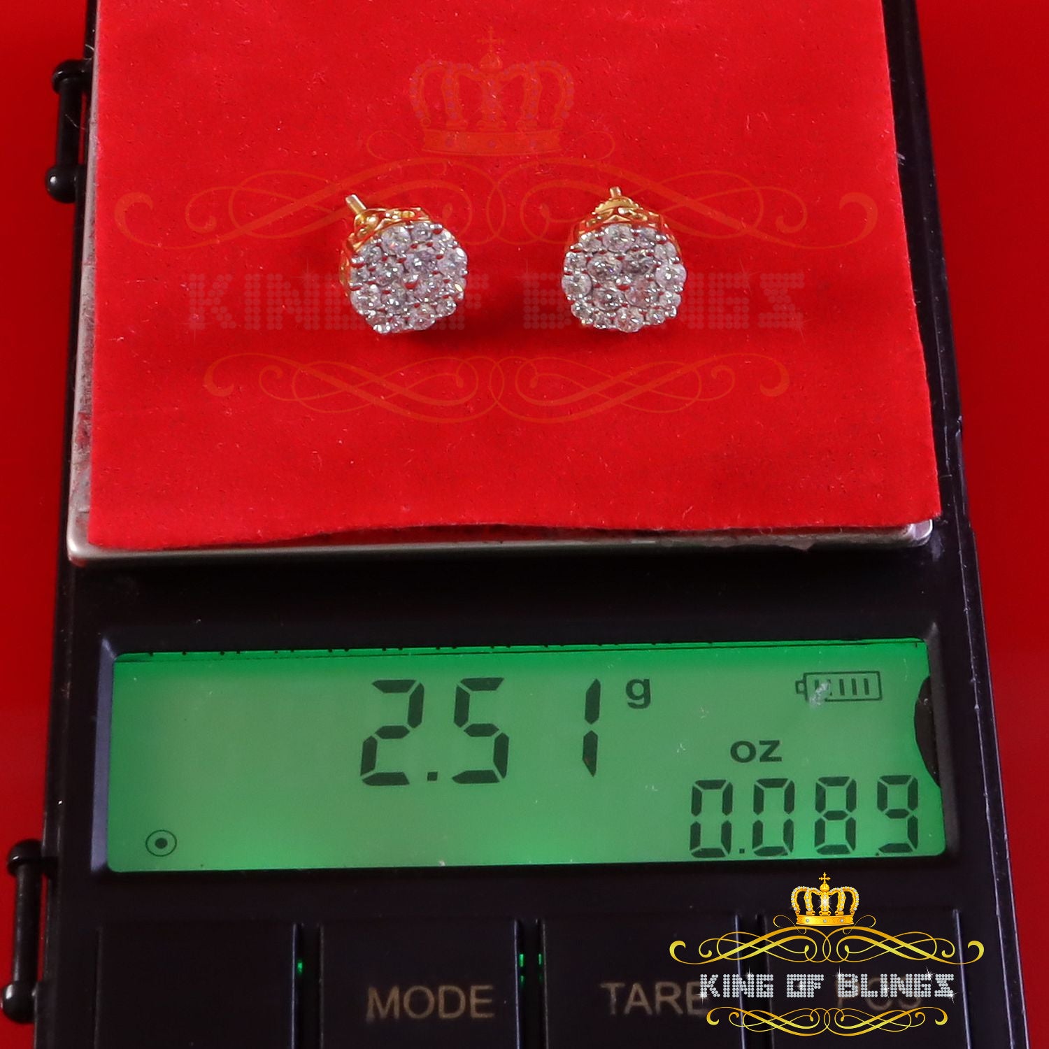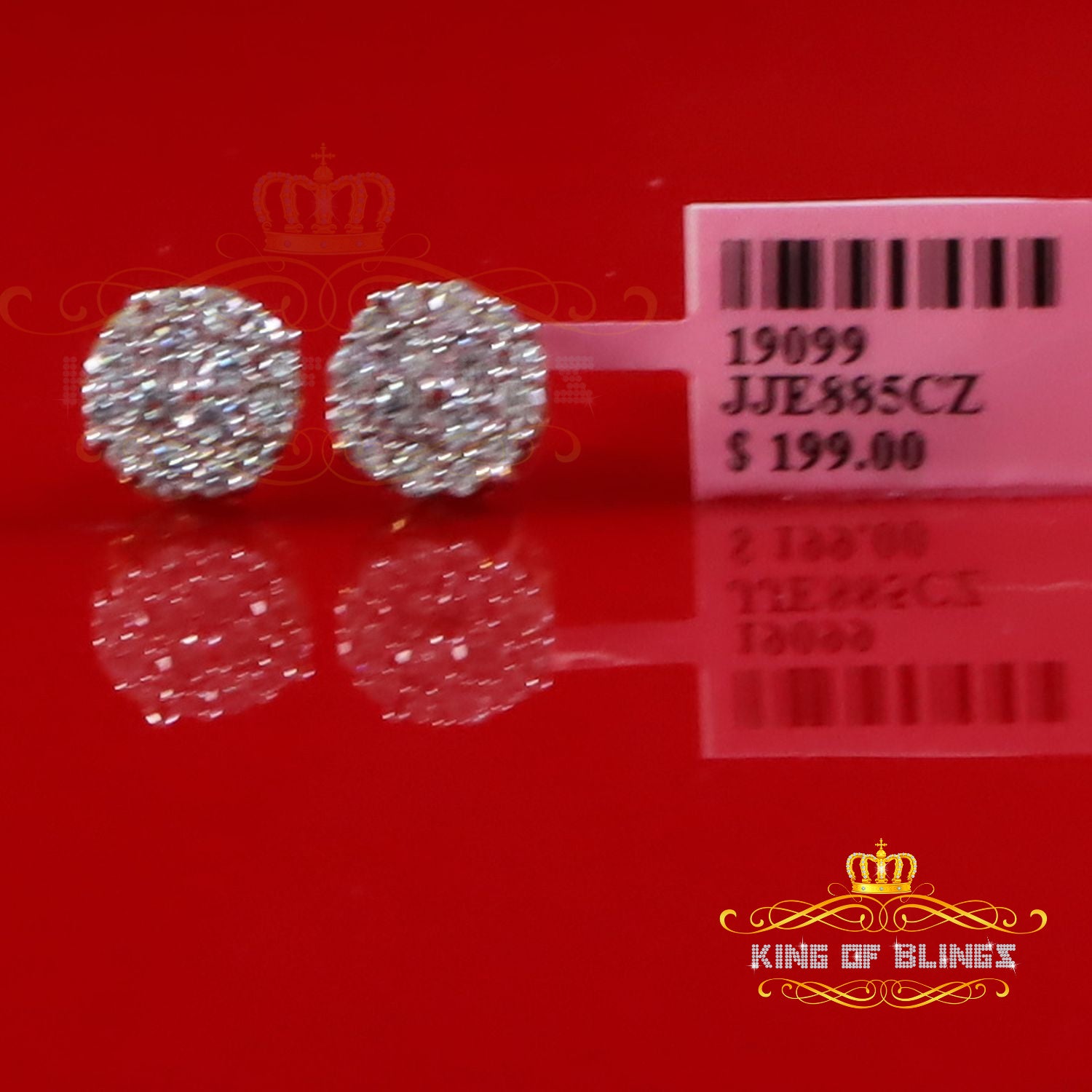 King of Bling's Aretes Para Hombre 925 Yellow Silver 2.48ct Cubic Zirconia Round Women's Earring