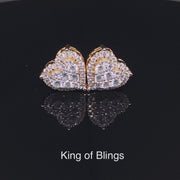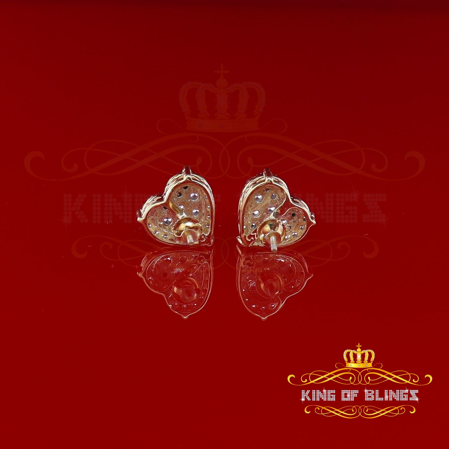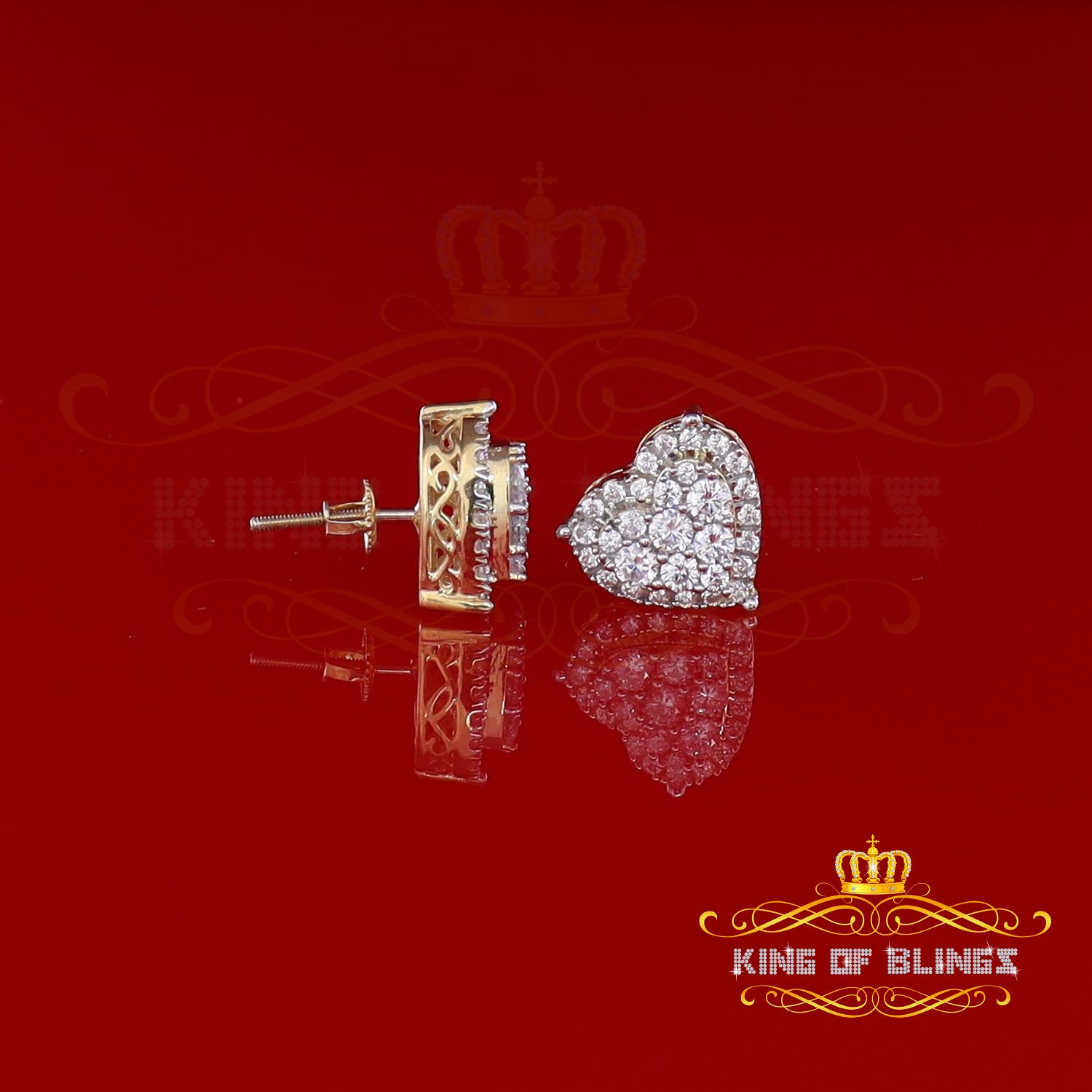 King of Bling's Aretes Para Hombre 925 Yellow Silver 2.68ct Cubic Zirconia Heart Women's Earring