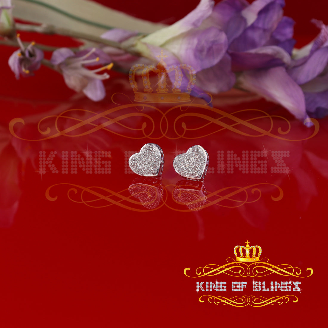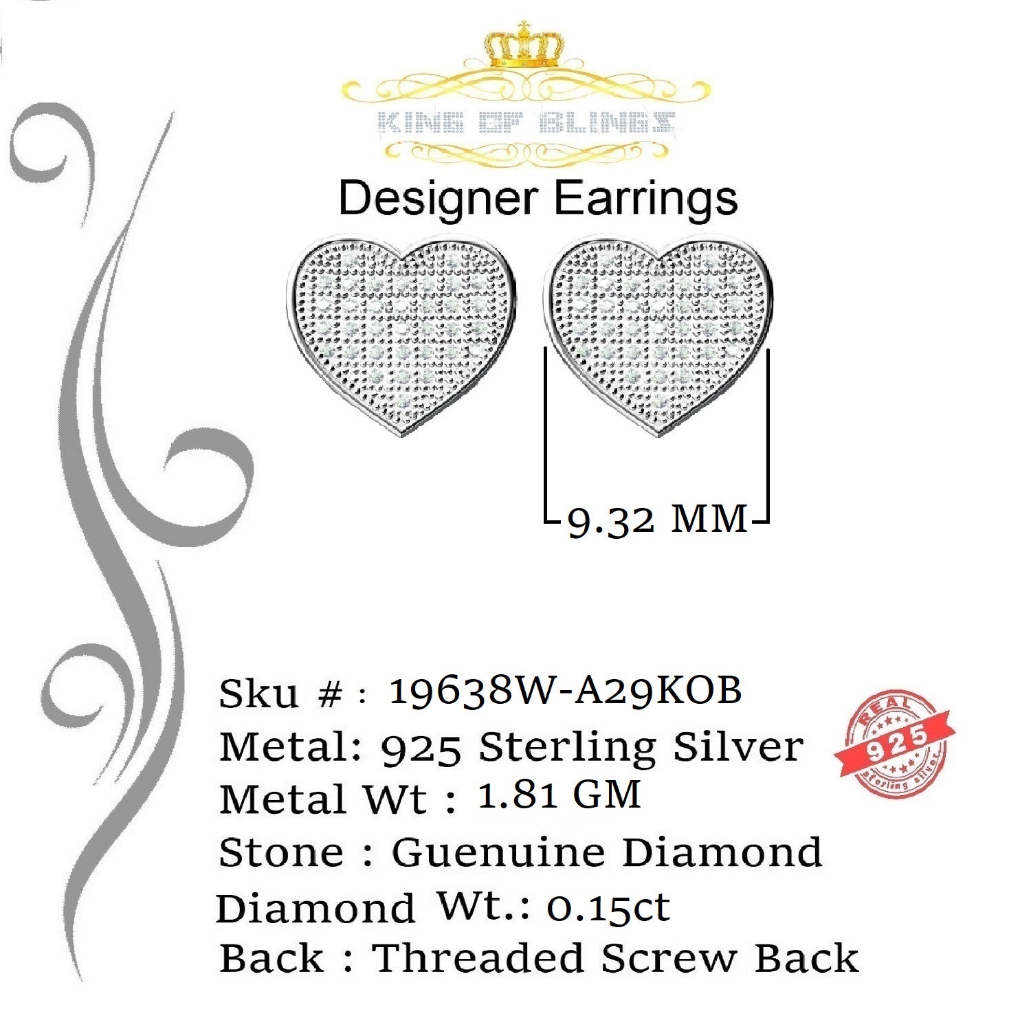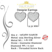 King Of Bling's Aretes Para Hombre Heart 925 White Silver 0.15ct Diamond Women's style Earring