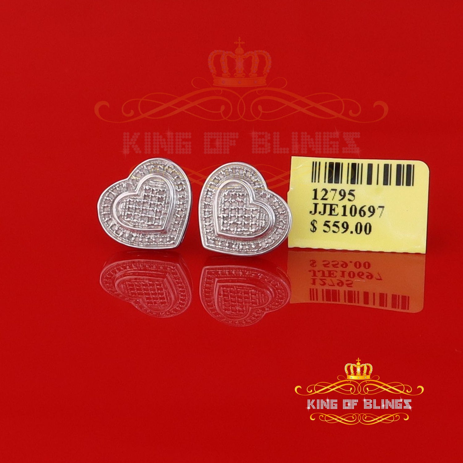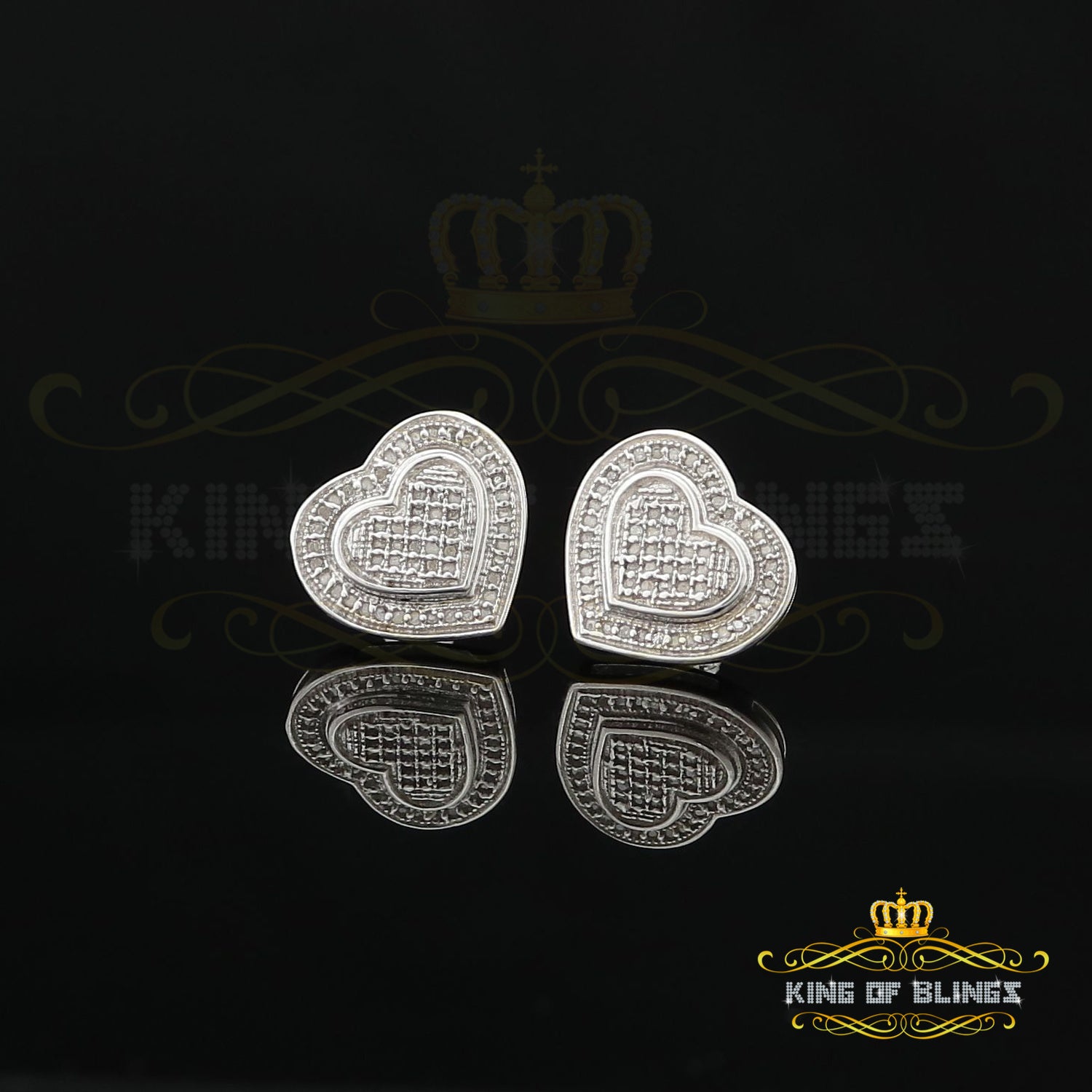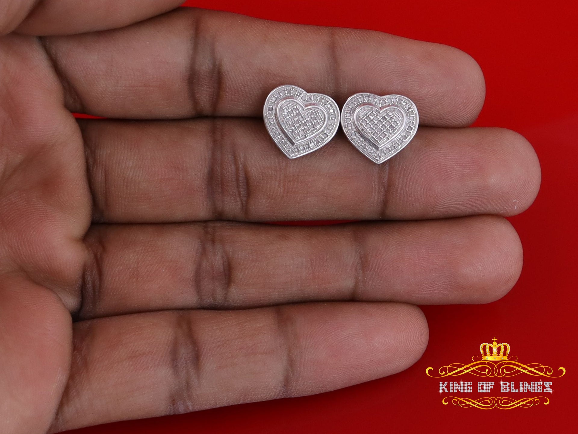 Presented as new with tags in the original packaging, these Silver Diamond earrings are ready to add a touch of sophistication to any outfit, making them a perfect choice for those seeking a combination of style and quality appealing to both men and women with their captivating sparkle. rest assured that the "King Of Blings" brand guarantees exceptional craftsmanship and materials. these womens stud earrings make a perfect gift or a stylish addition to your own jewelry collection,