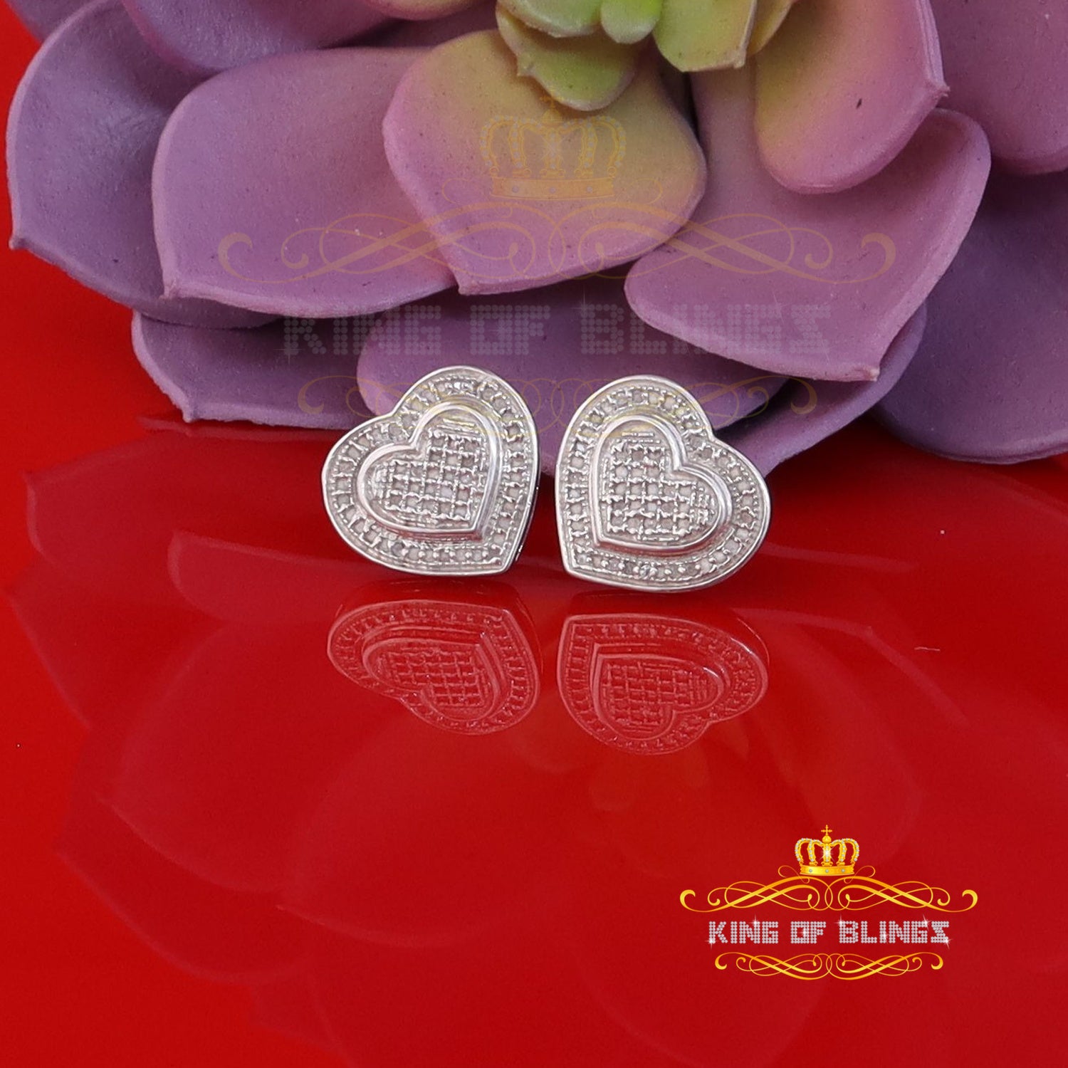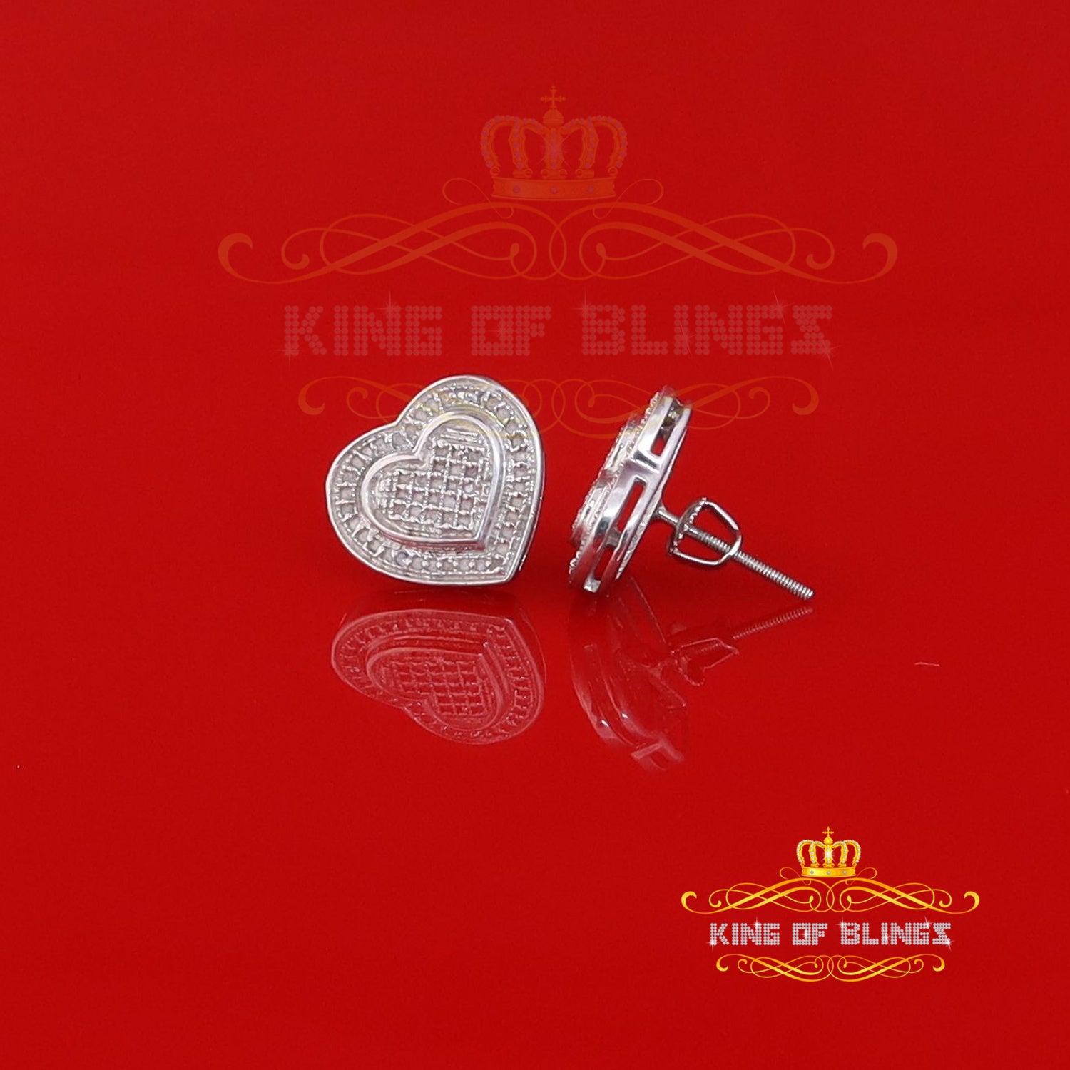 King Of Bling's Aretes Para Hombre Heart 925 White Silver 0.30ct Diamond Women's Style Earring