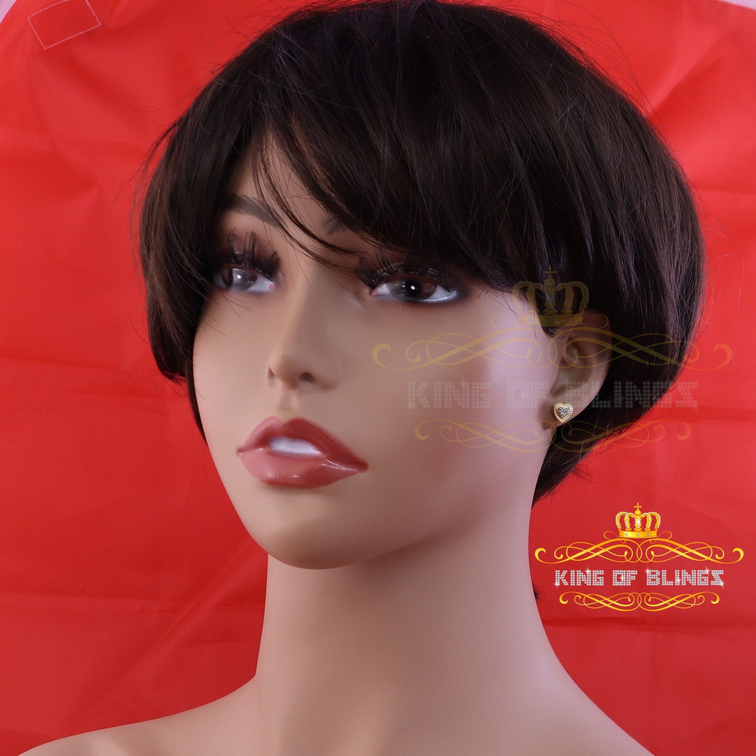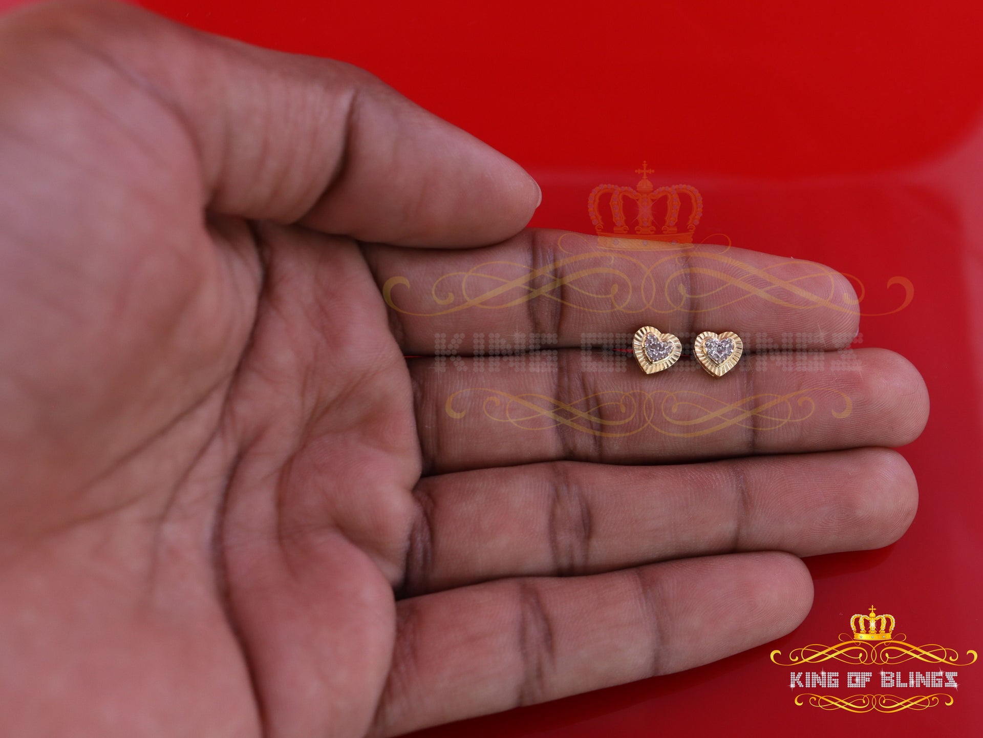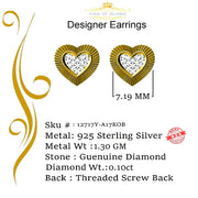 King of Blings-Aretes Para Hombre Heart 925 Yellow Silver 0.10ct Diamond Women & Men Earrings