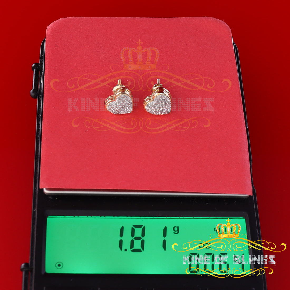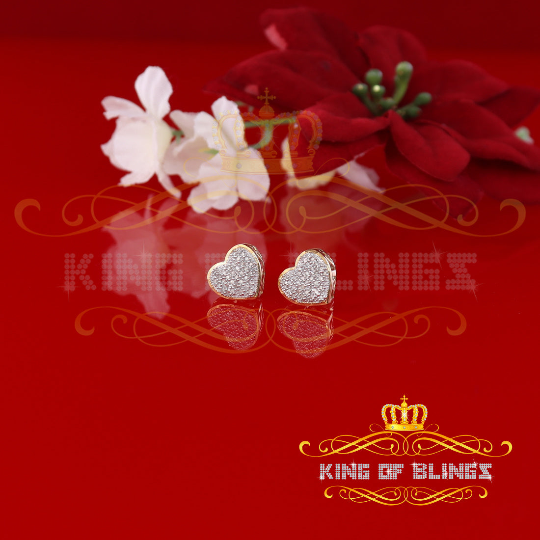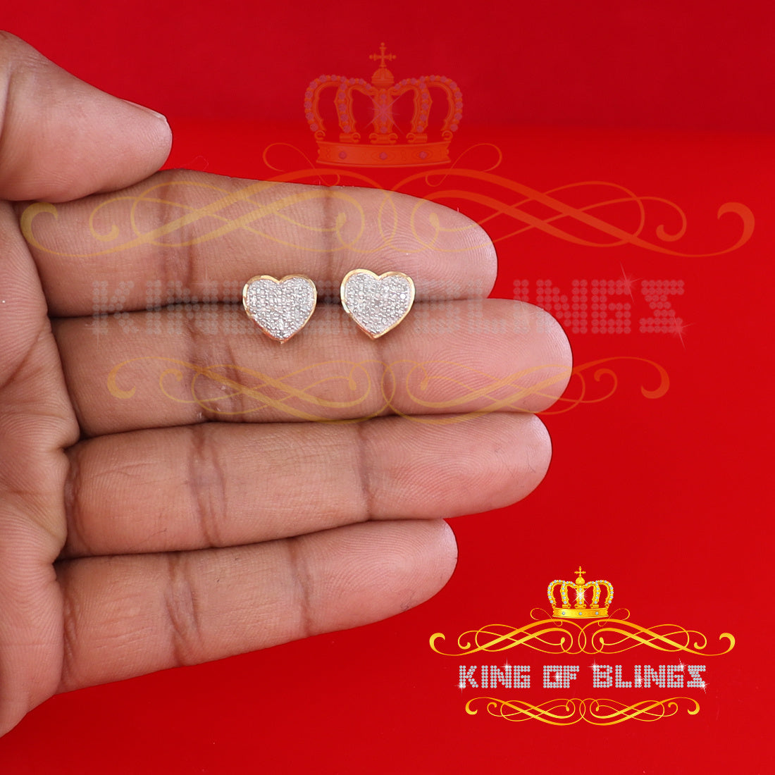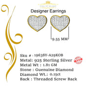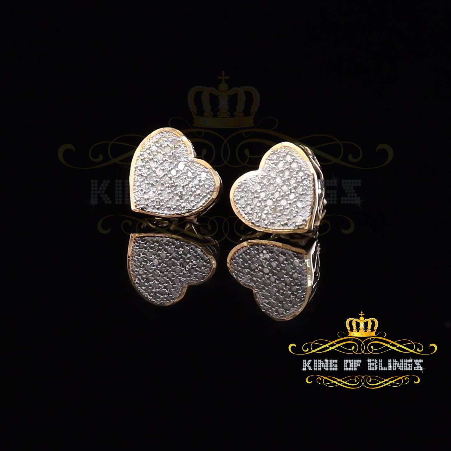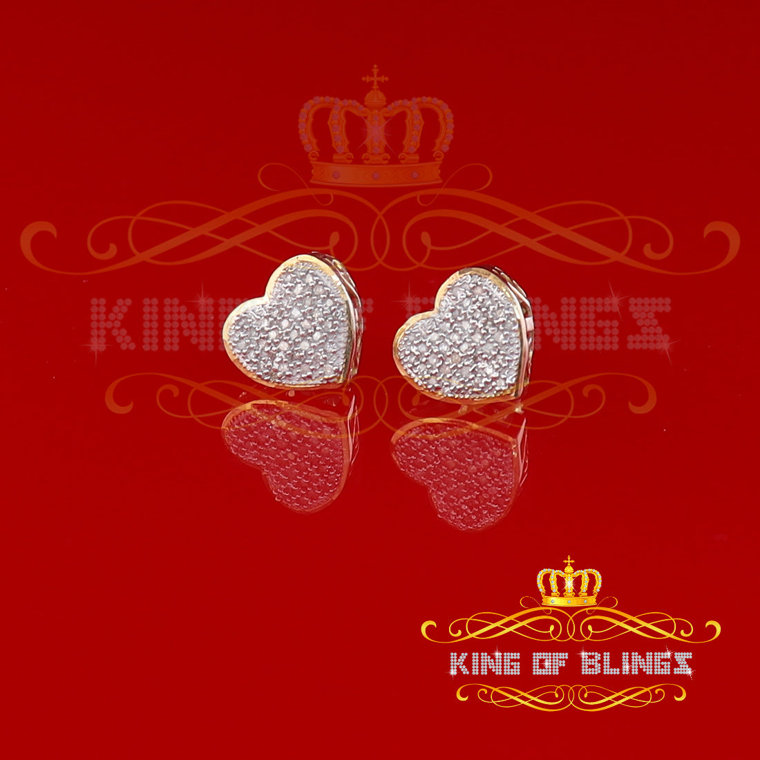 King of Blings-Aretes Para Hombre Heart 925 Yellow Silver 0.15ct Diamond Women's /Men's Earring