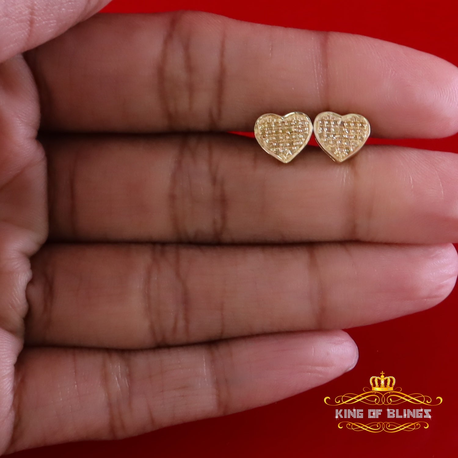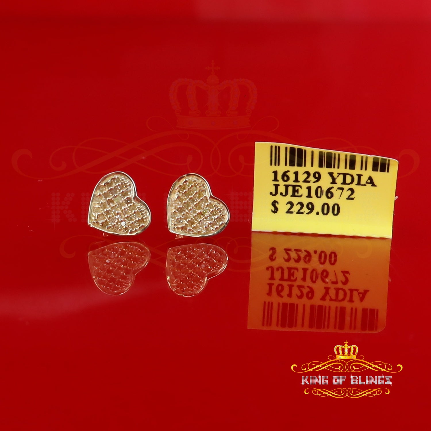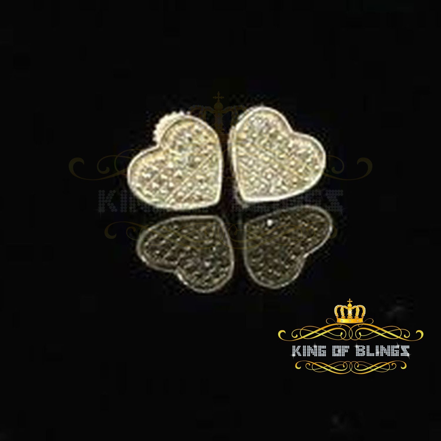 King of Blings-Aretes Para Hombre Heart 925 Yellow Silver 0.15ct Diamond Women's /Men's Earring