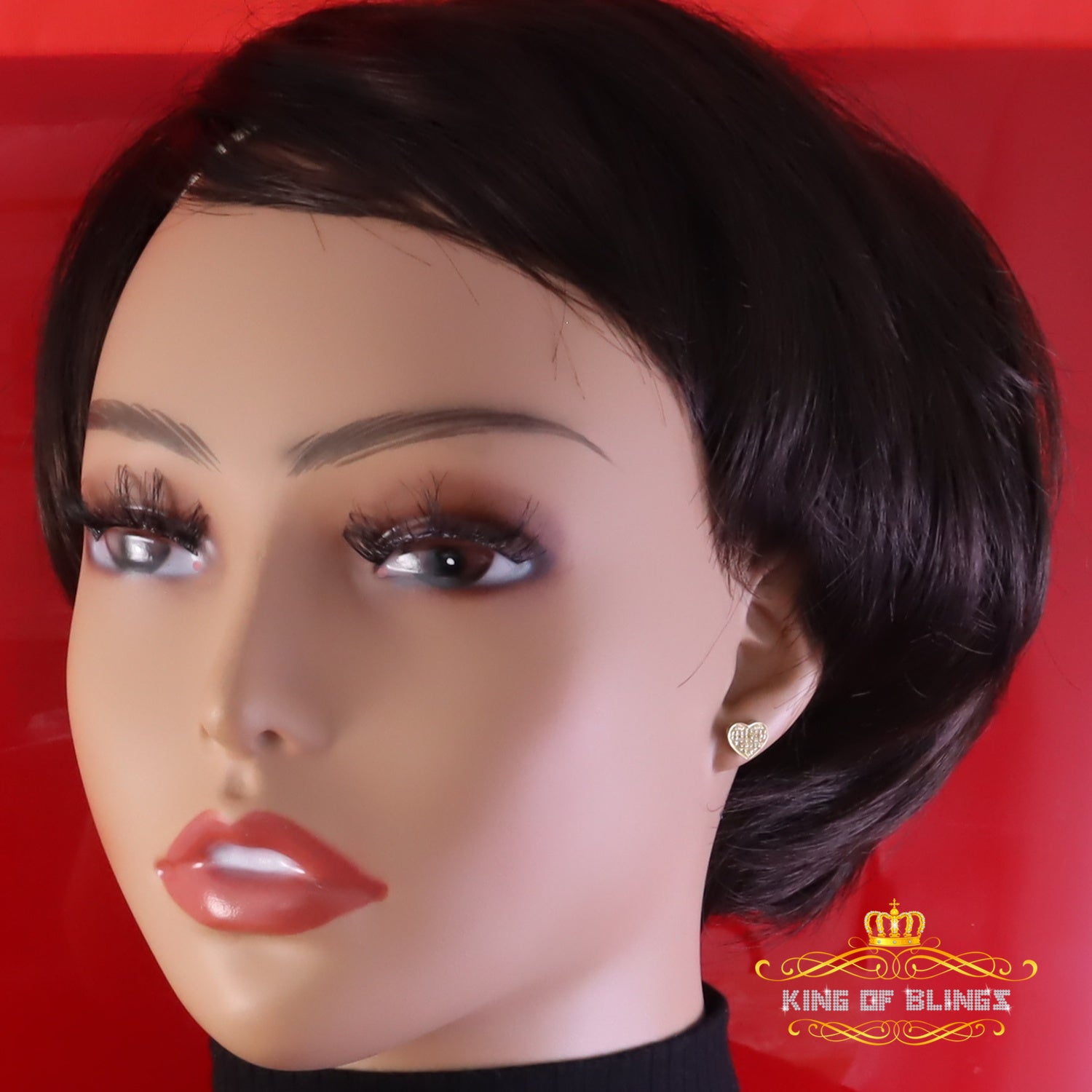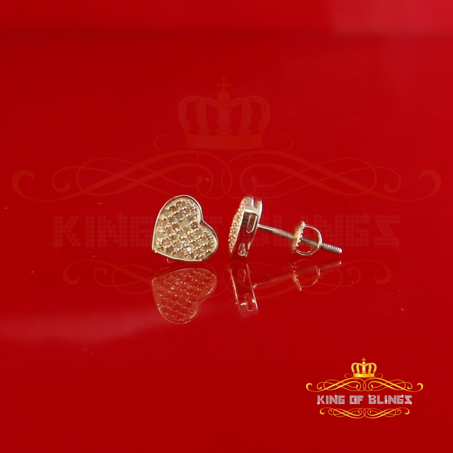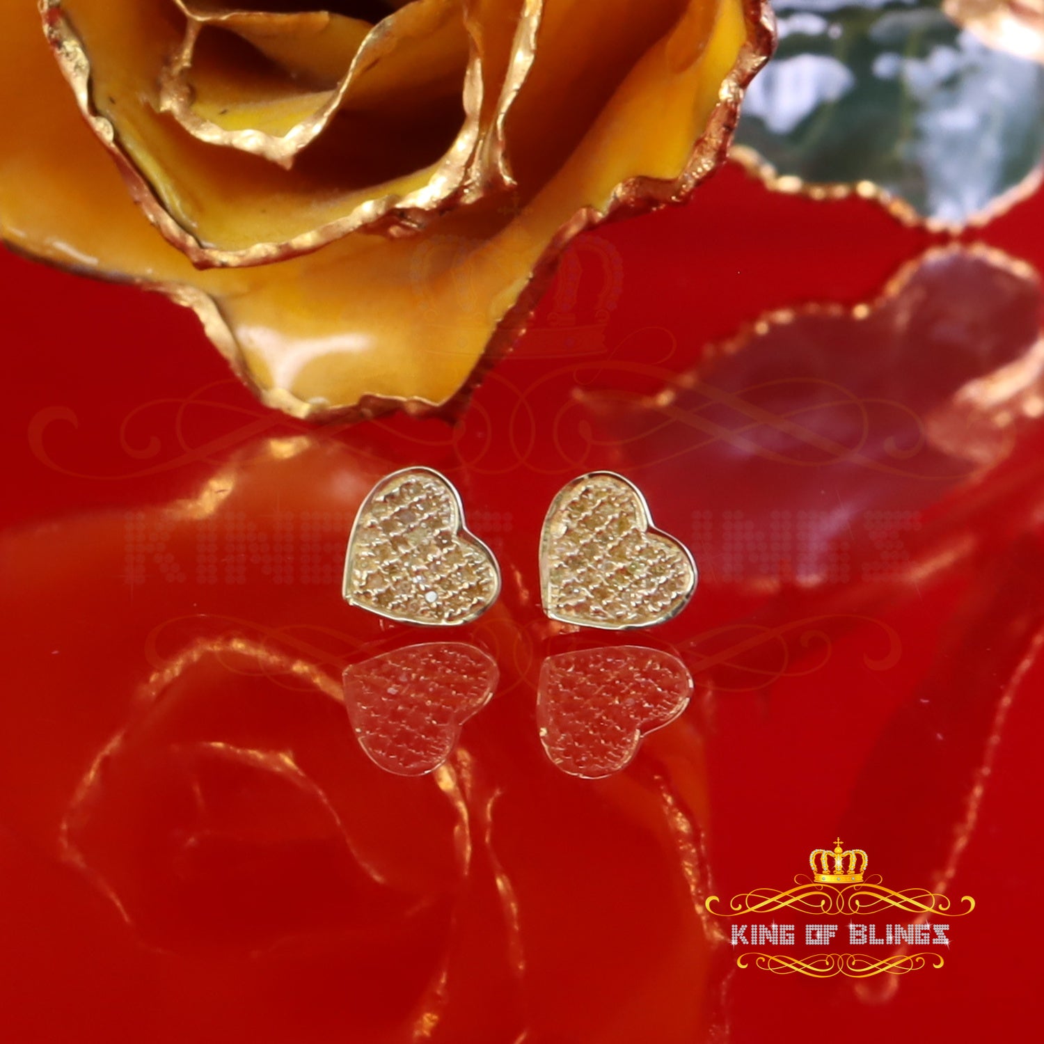 King of Blings-Aretes Para Hombre Heart 925 Yellow Silver 0.15ct Diamond Women's /Men's Earring