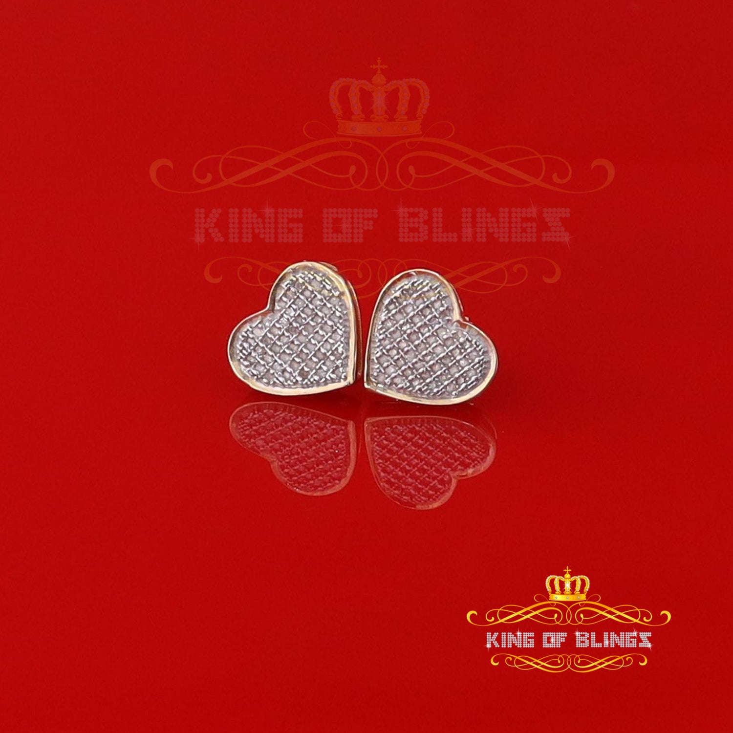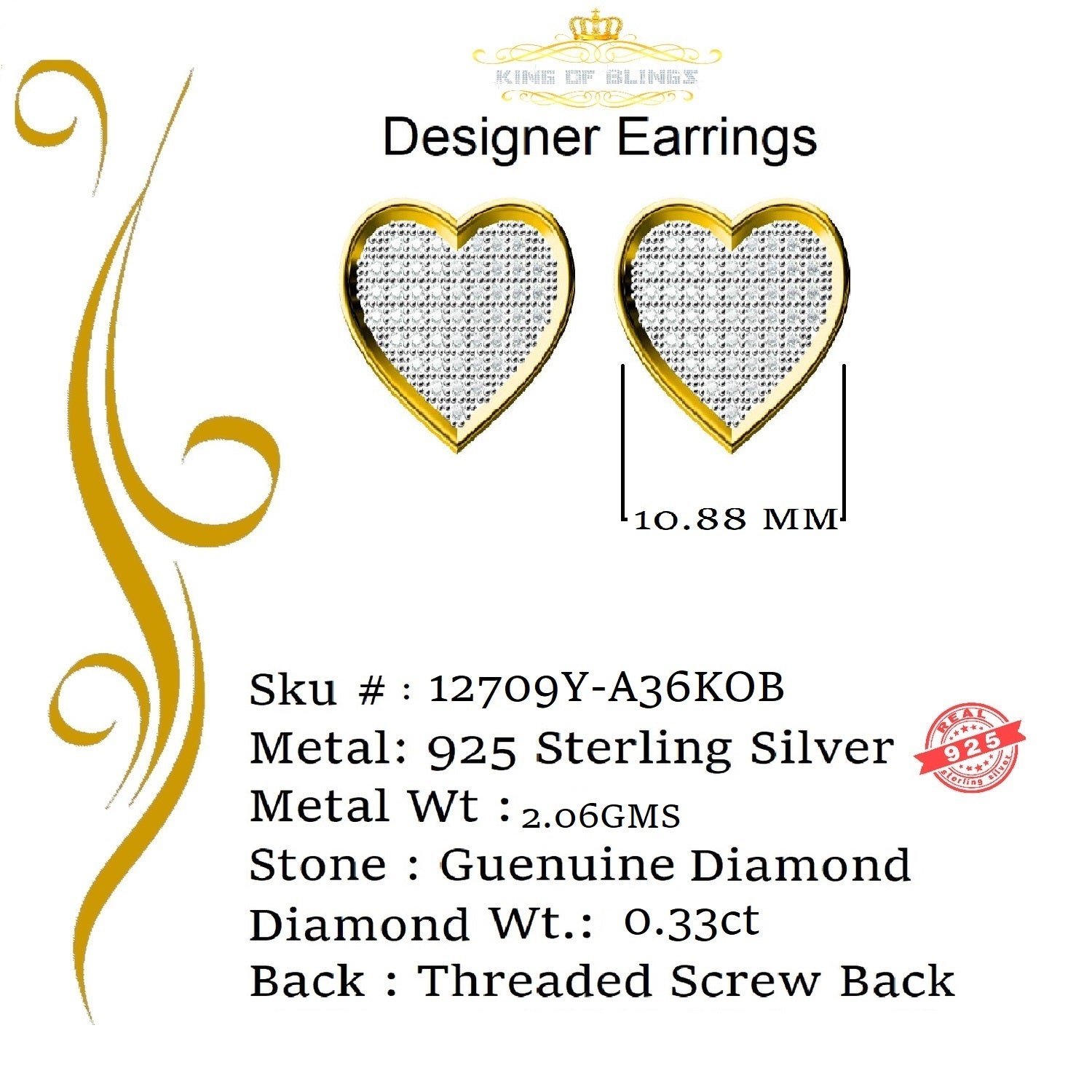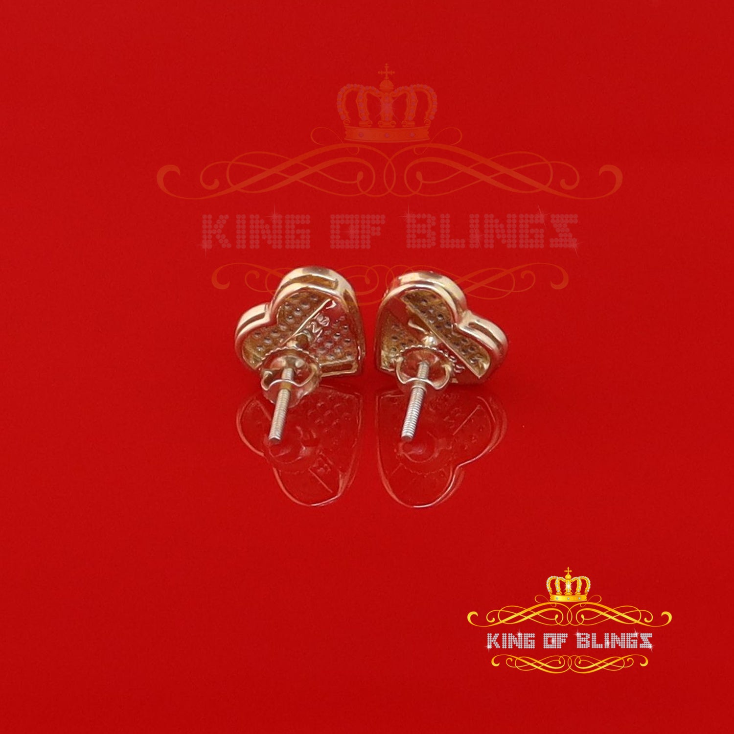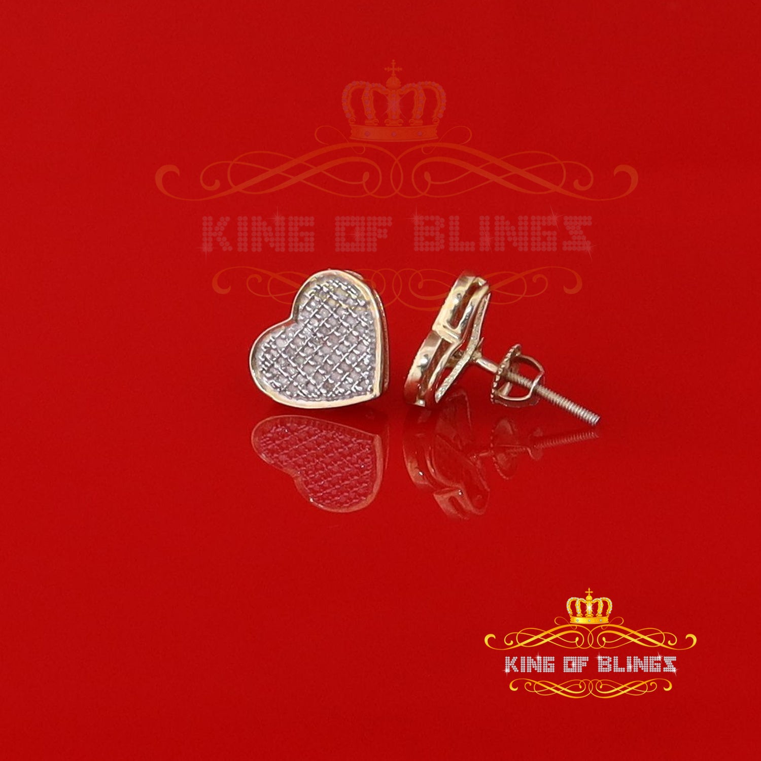 King of Blings-Aretes Para Hombre Heart 925 Yellow Silver 0.33ct Diamond Women's /Men's Earring