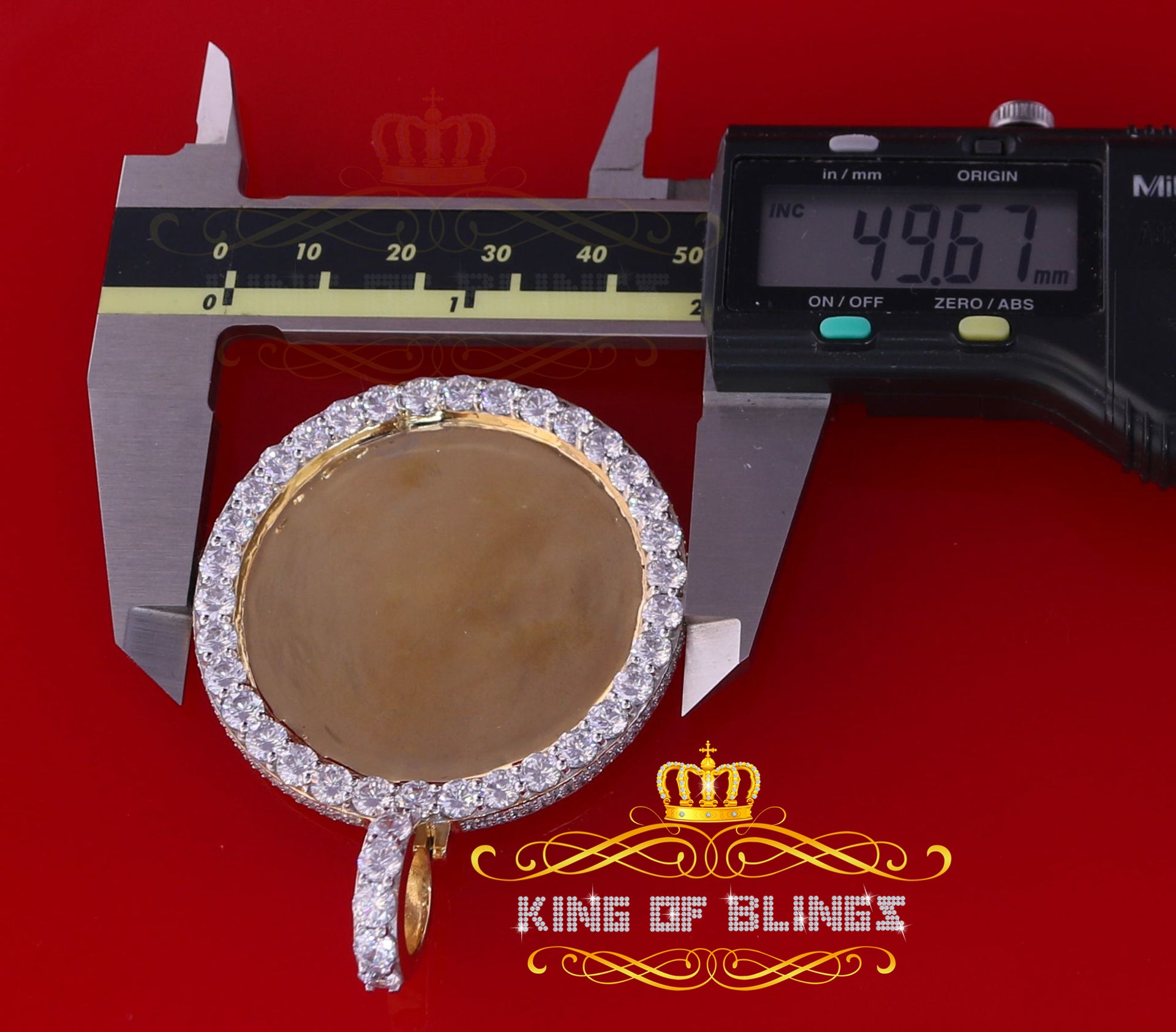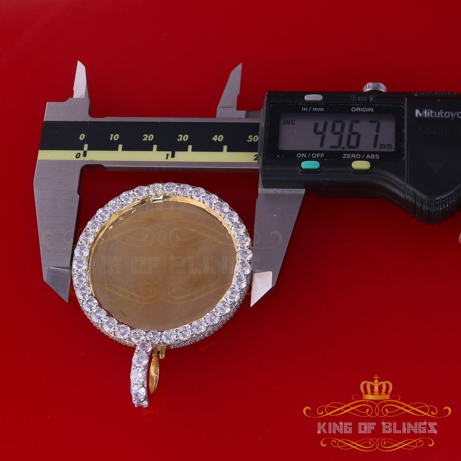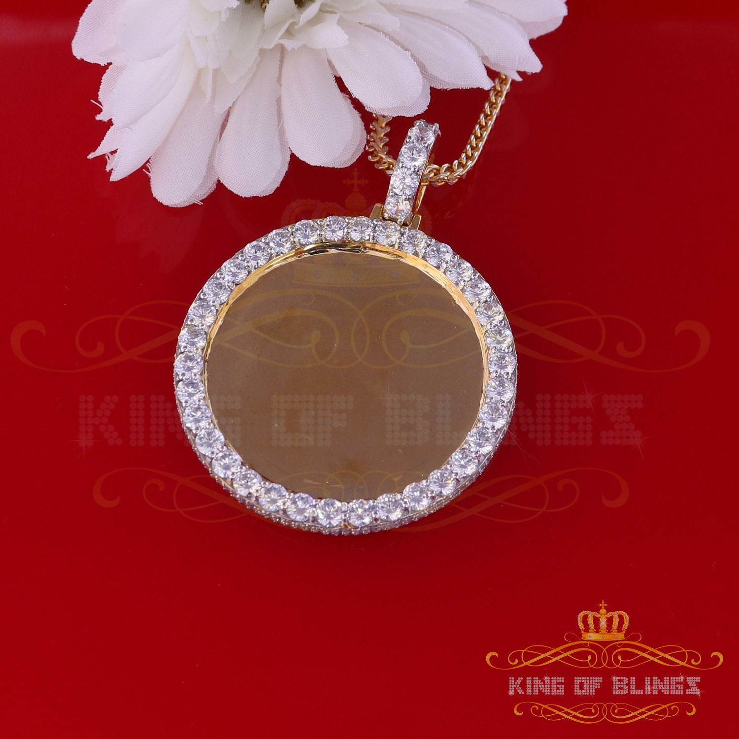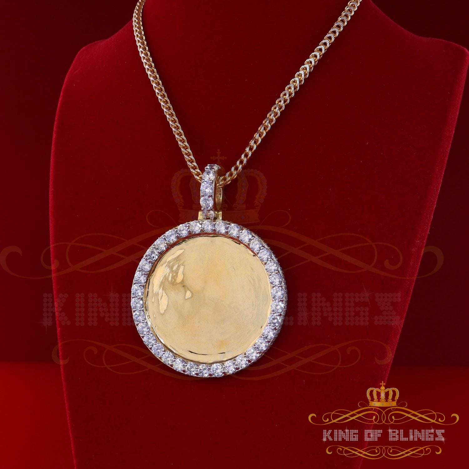 Special memories are never to be forgotten with this personalized and engravable diamond frame medallion photo pendant. Handcrafted, customized photo pendant brings a unique way to honor your loved ones, relatives and friends by allowing you to hold their memories with you in every moment. Your picture will be cropped to fit perfectly into the image area, covered by a protective glass bubble that allows you to see the image from all angles with a reflecting 3D effect. This pendant Made in 925 Yellow Silver got 41.52 gm and Sparkling AAA grade Cubic Zircon weight 12.00ct makes for the perfect holiday gift. A unique way to express your love.