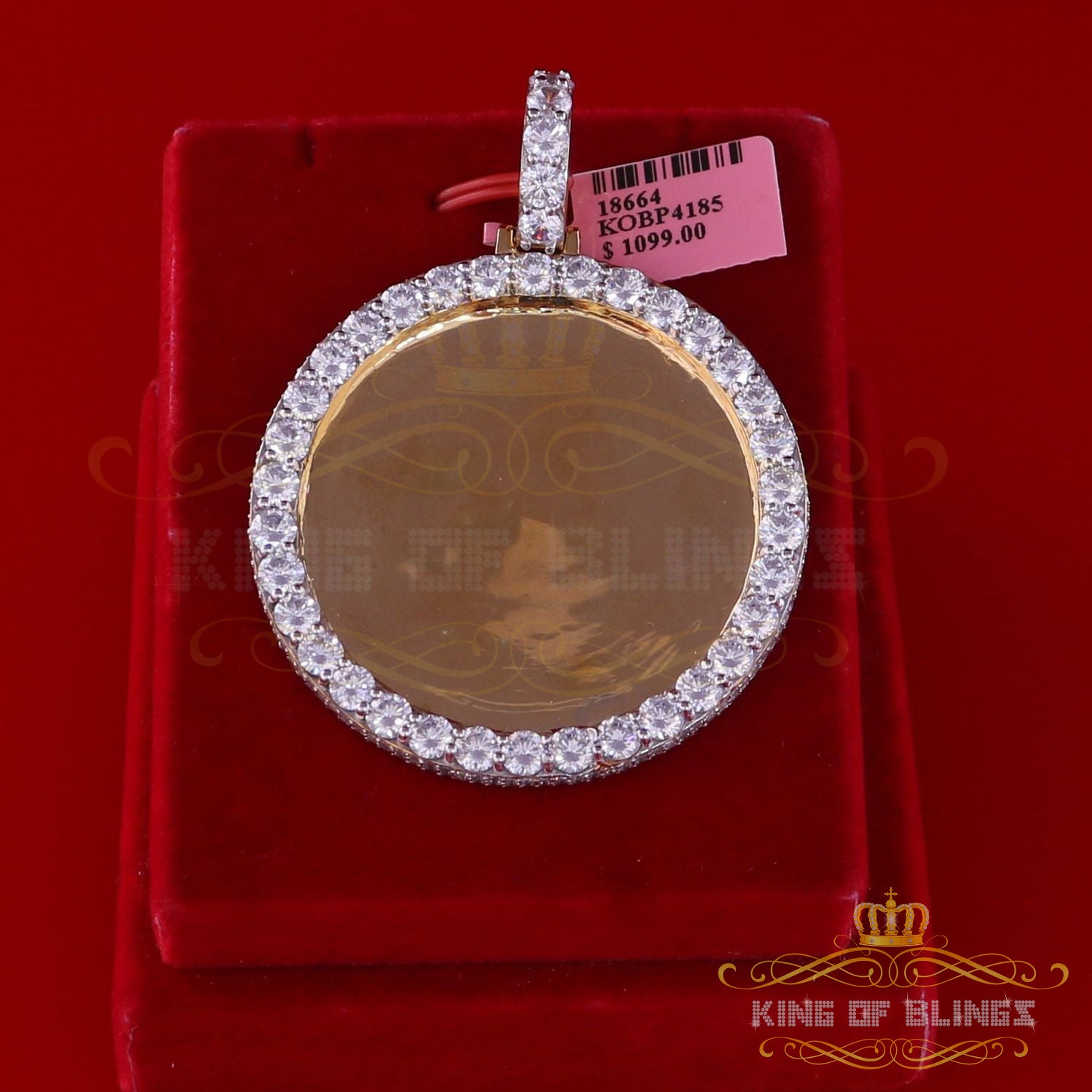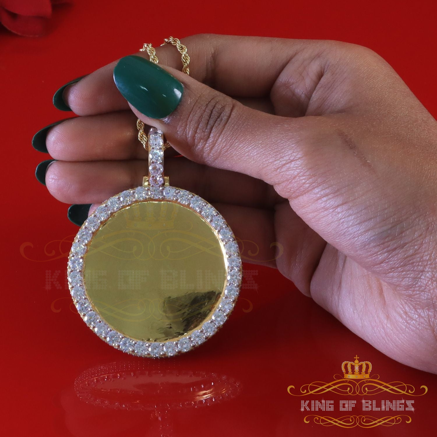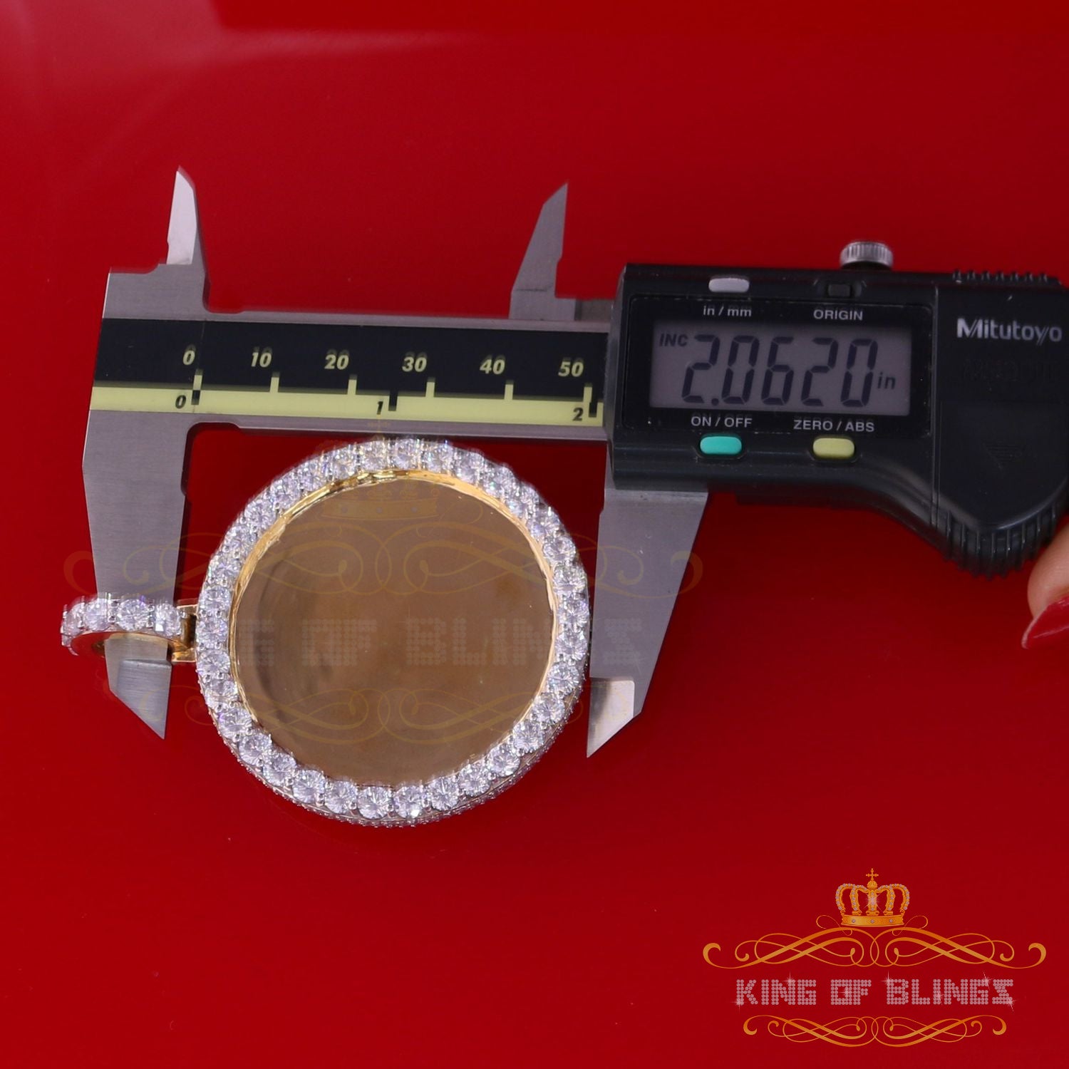 Special memories are never to be forgotten with this personalized and engravable diamond frame medallion photo pendant. Handcrafted, customized photo pendant brings a unique way to honor your loved ones, relatives and friends by allowing you to hold their memories with you in every moment. Your picture will be cropped to fit perfectly into the image area, covered by a protective glass bubble that allows you to see the image from all angles with a reflecting 3D effect. This pendant Made in 925 Yellow Silver got 41.52 gm and Sparkling AAA grade Cubic Zircon weight 12.00ct makes for the perfect holiday gift. A unique way to express your love.