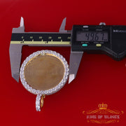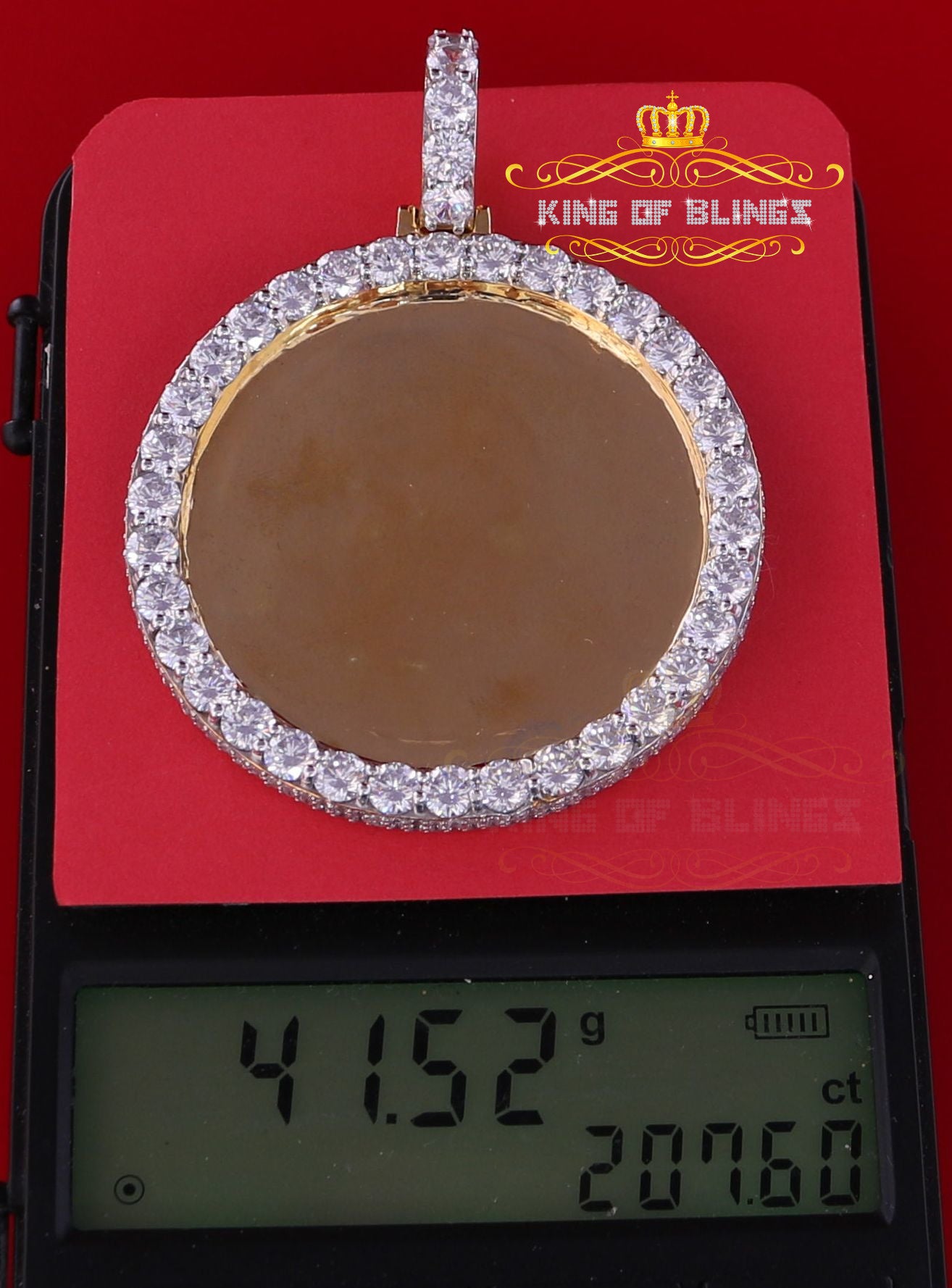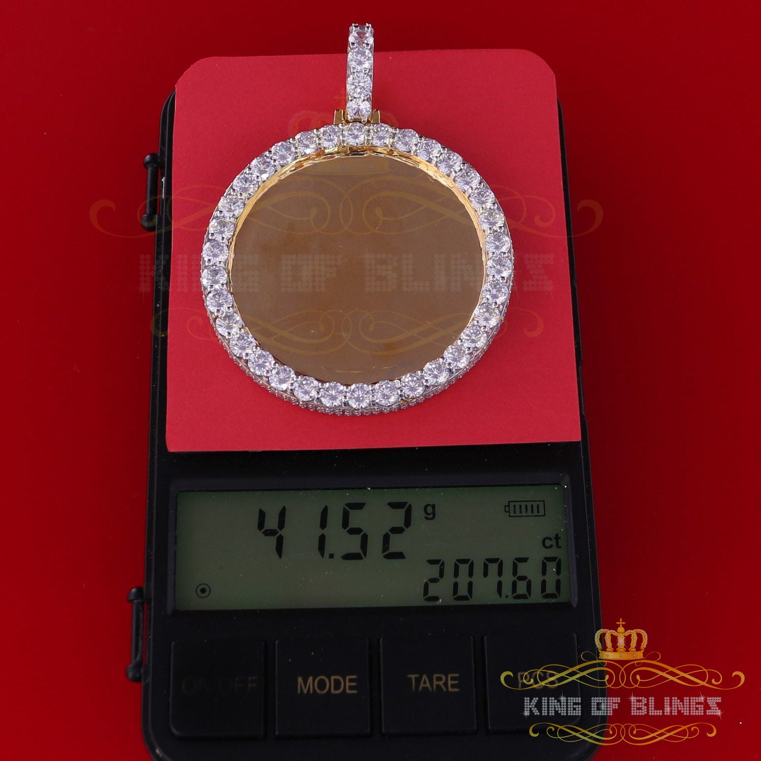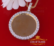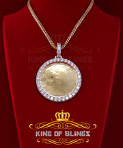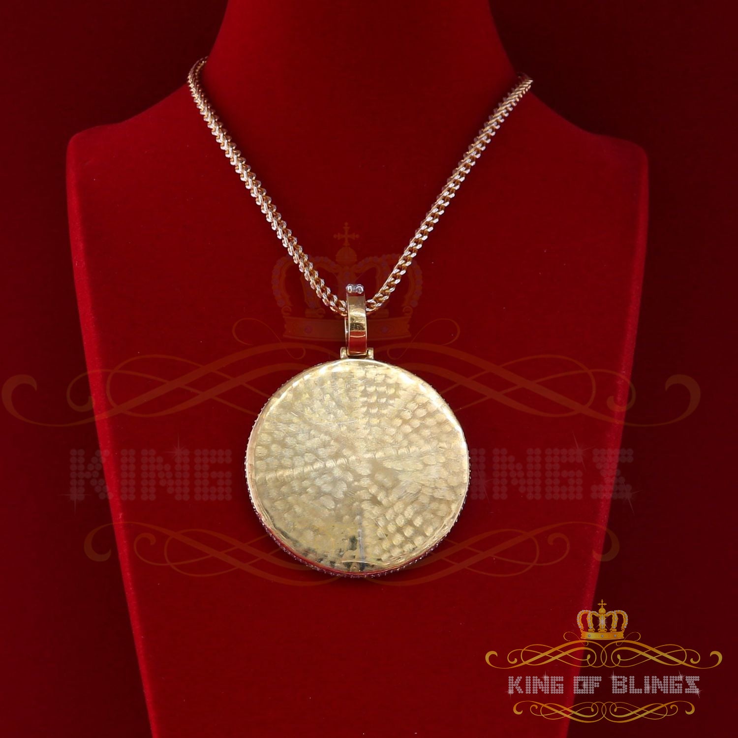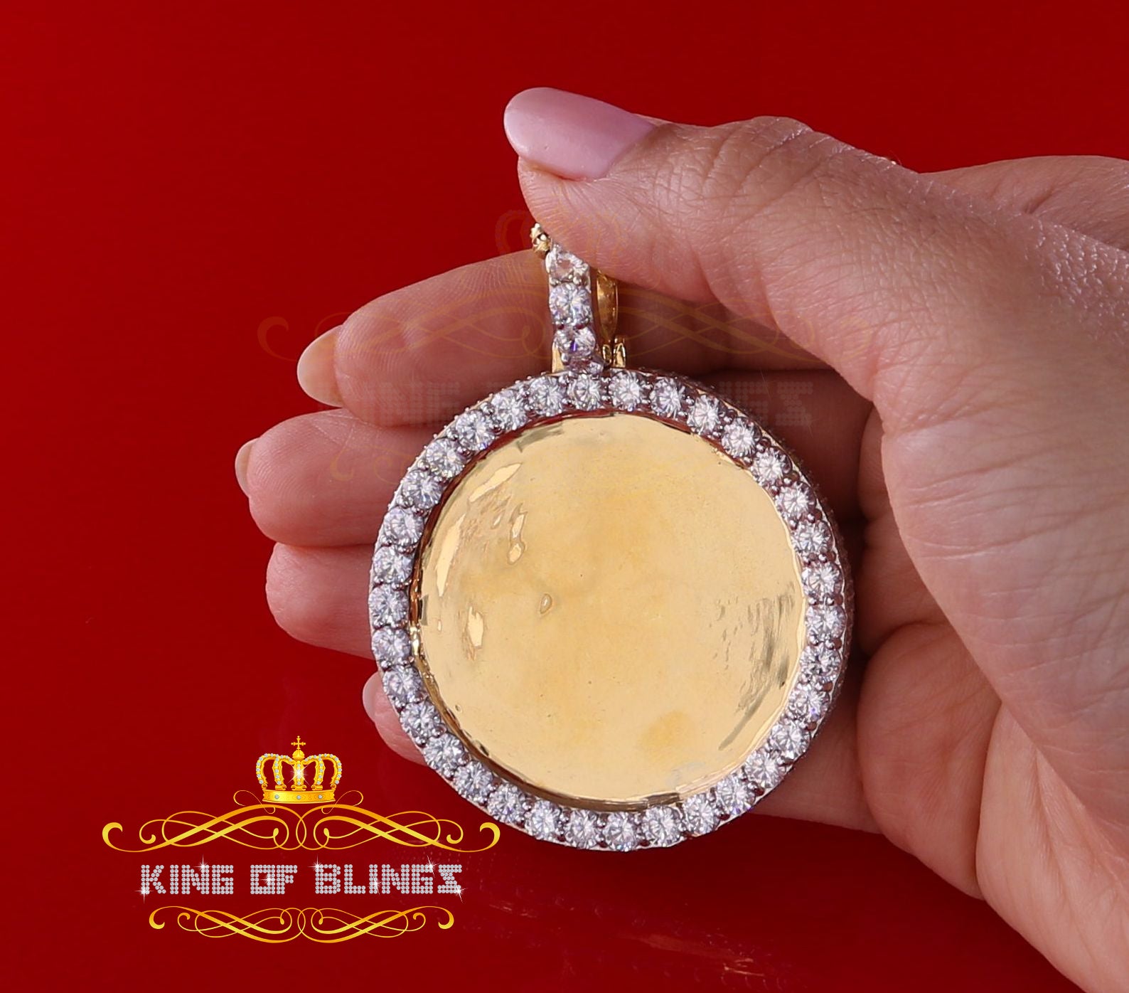 Special memories are never to be forgotten with this personalized and engravable diamond frame medallion photo pendant. Handcrafted, customized photo pendant brings a unique way to honor your loved ones, relatives and friends by allowing you to hold their memories with you in every moment. Your picture will be cropped to fit perfectly into the image area, covered by a protective glass bubble that allows you to see the image from all angles with a reflecting 3D effect. This pendant Made in 925 Yellow Silver got 41.52 gm and Sparkling AAA grade Cubic Zircon weight 12.00ct makes for the perfect holiday gift. A unique way to express your love.