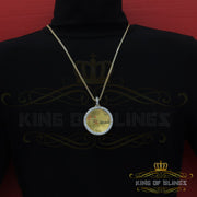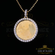 King of Bling's Beautiful Yellow 925 Sterling Silver Round Shape Pendant 12.00ctCubic Zirconia
