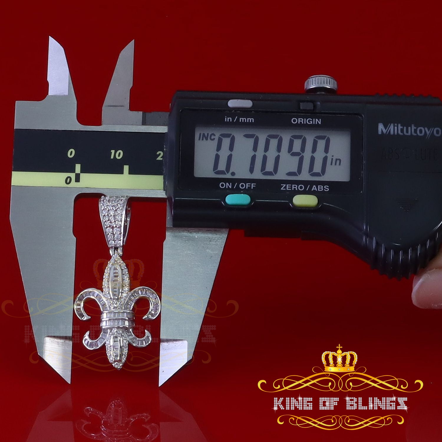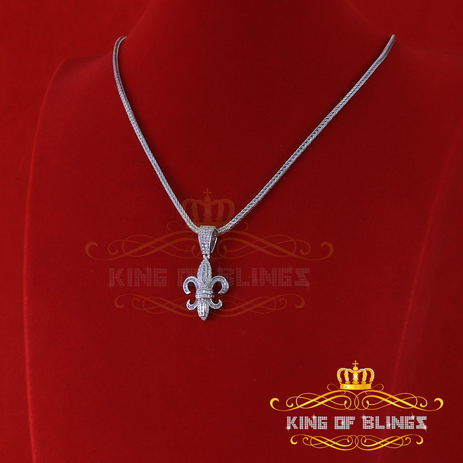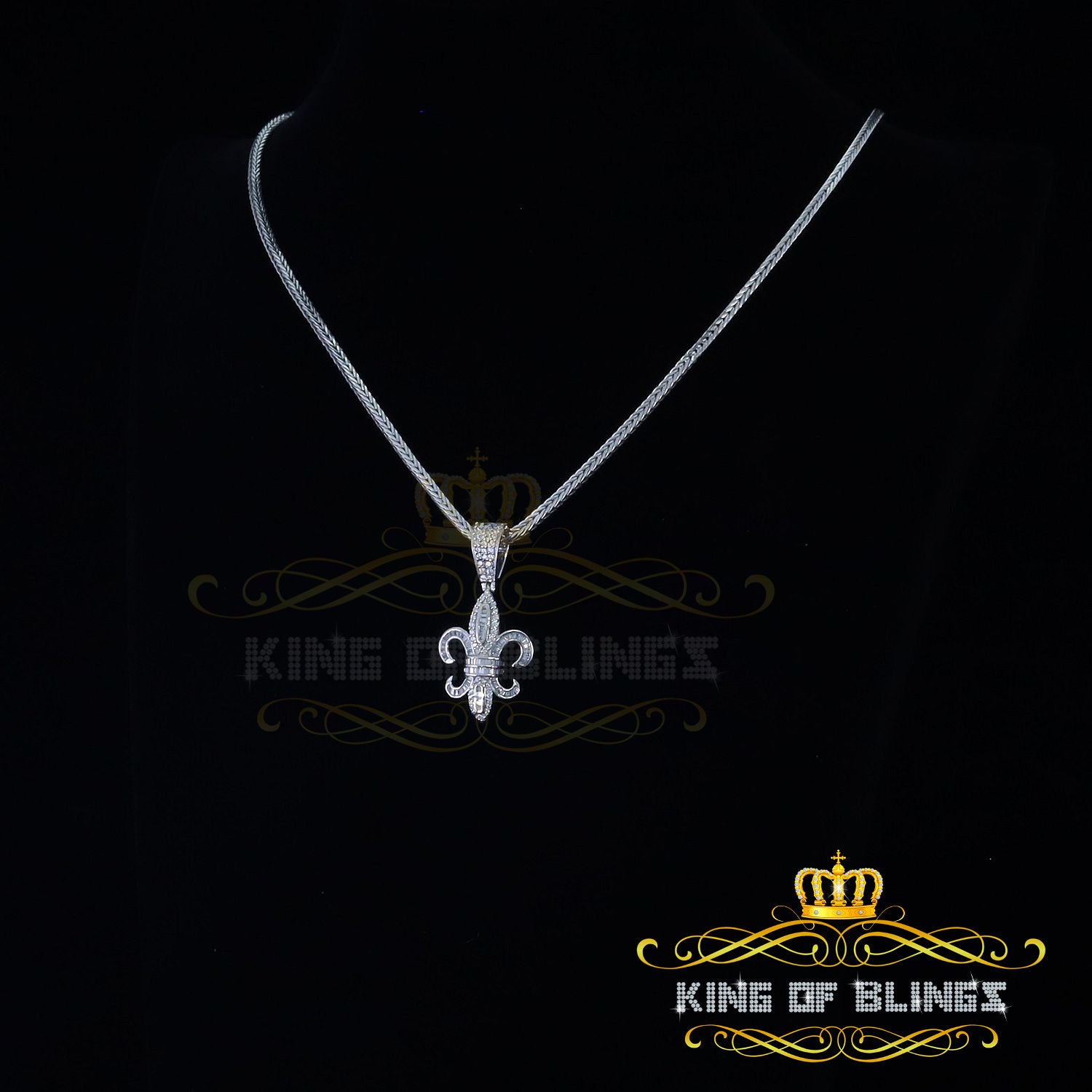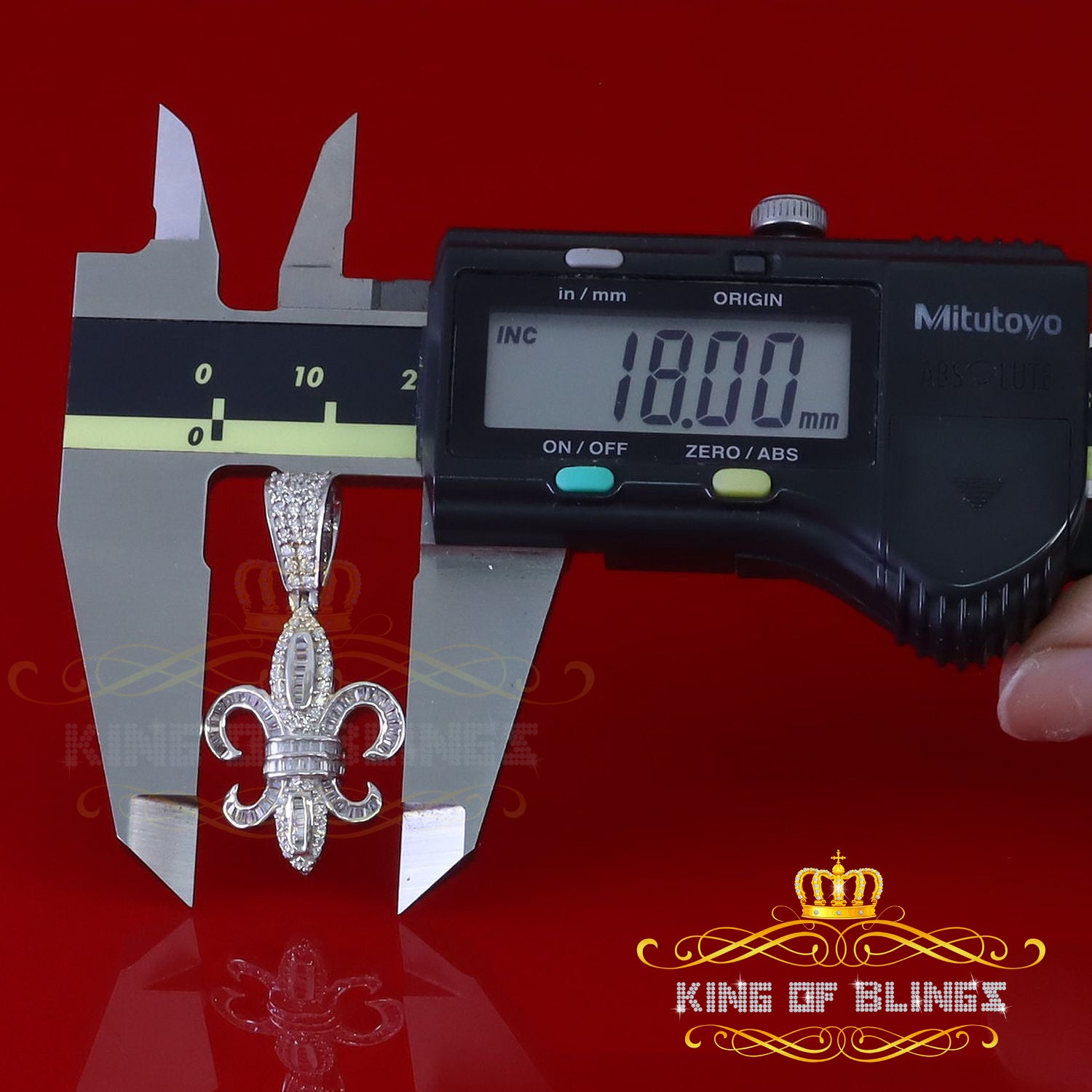 King Of Bling's Charm White Sterling Silver Fleur de Lis Pendant 2.09ct Cubic Zirconia Stone