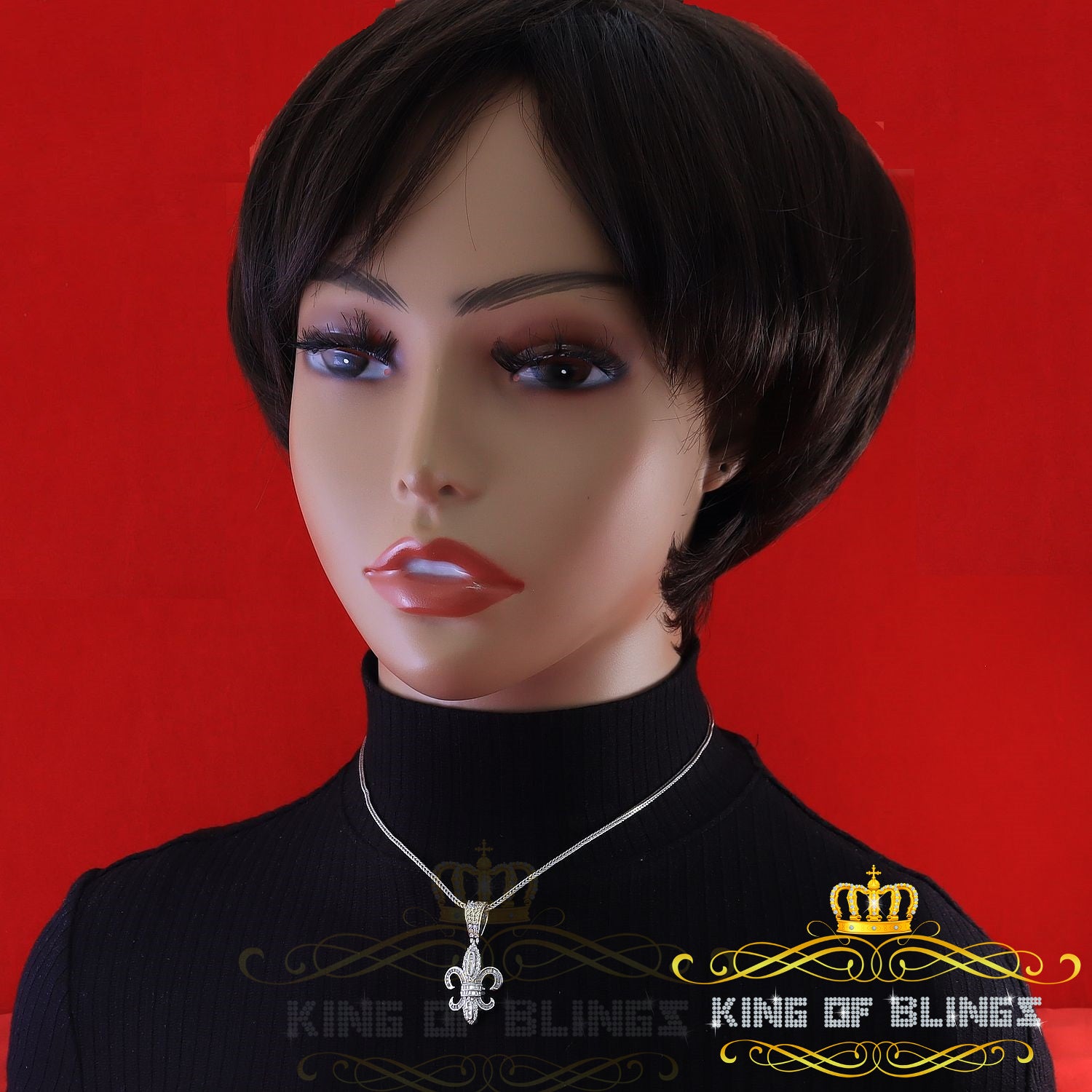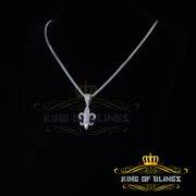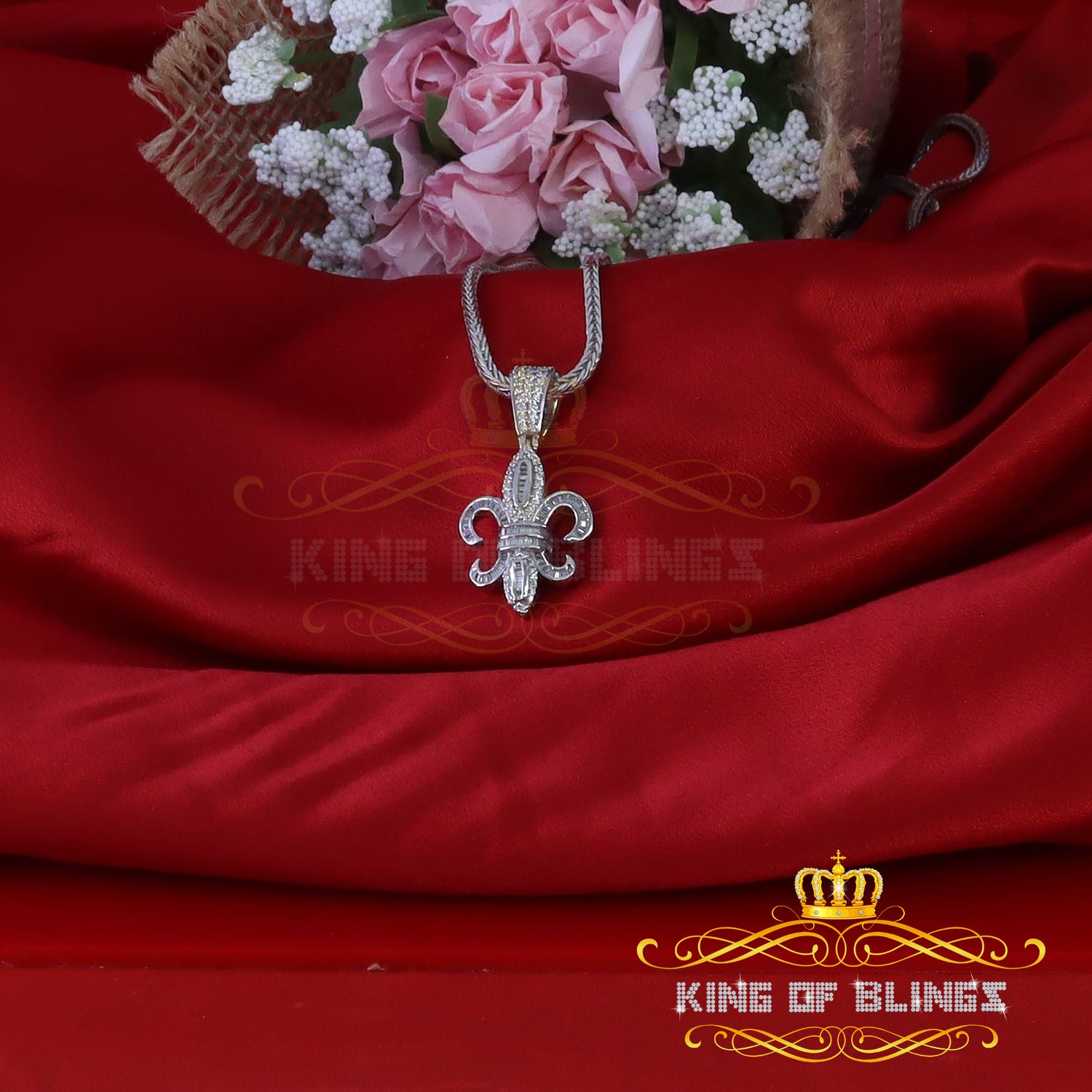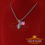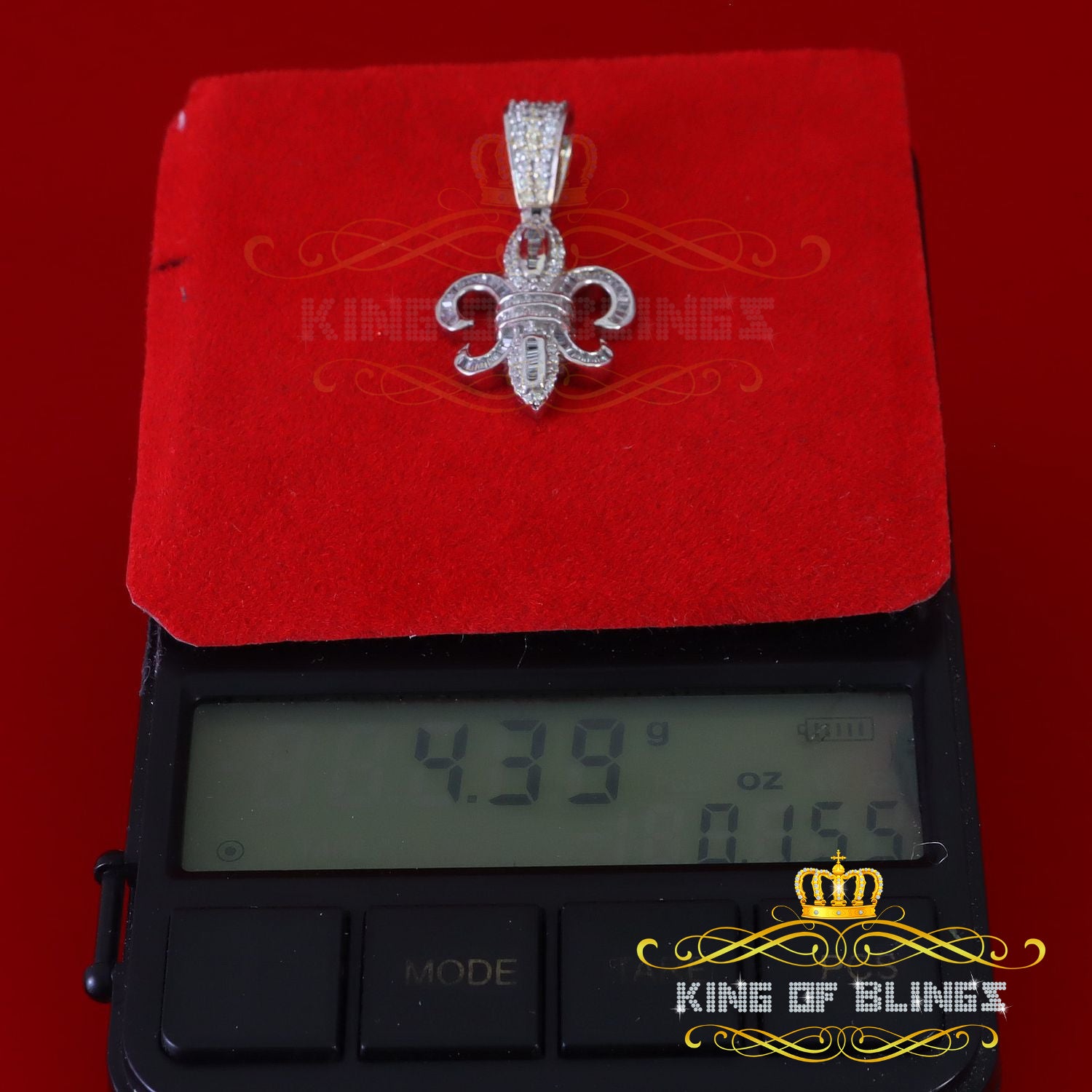 King Of Bling's Charm White Sterling Silver Fleur de Lis Pendant 2.09ct Cubic Zirconia Stone