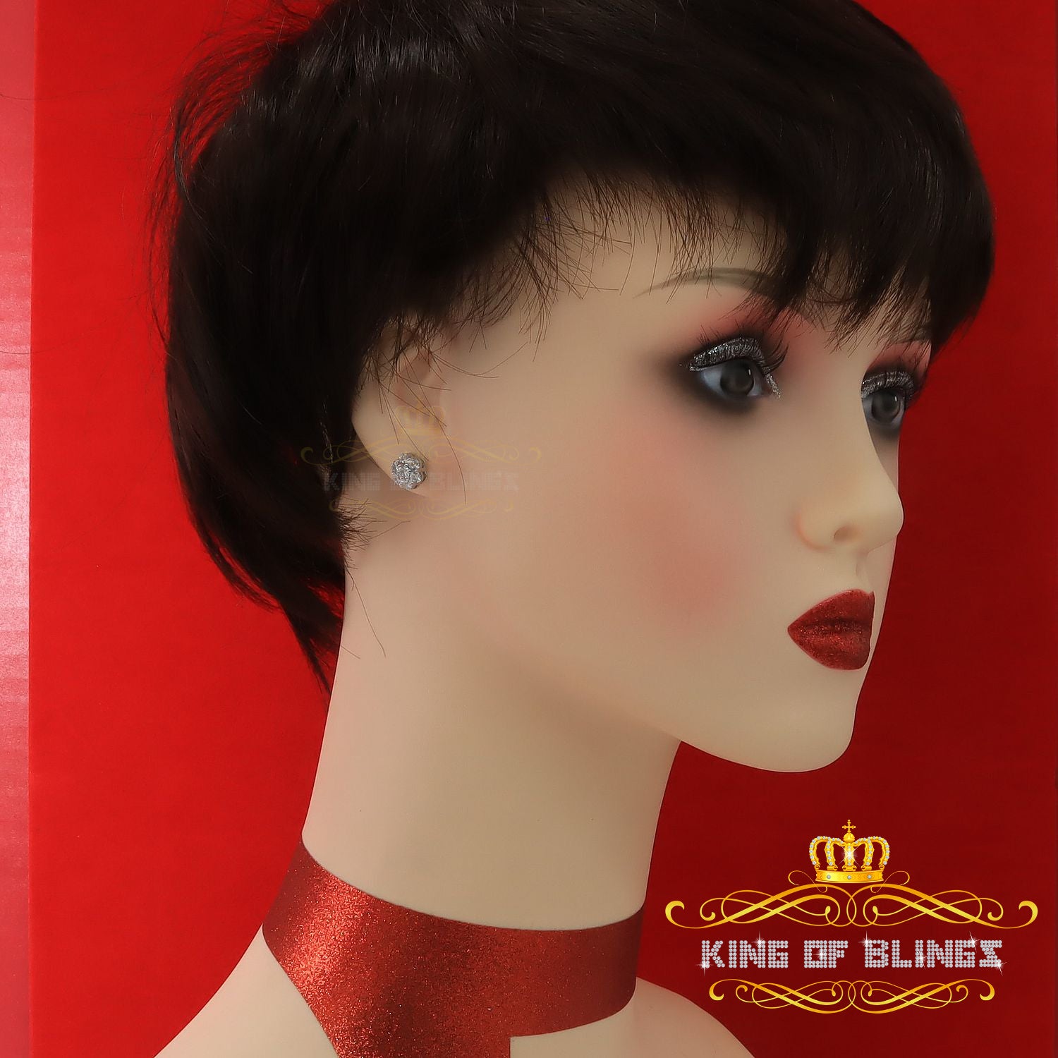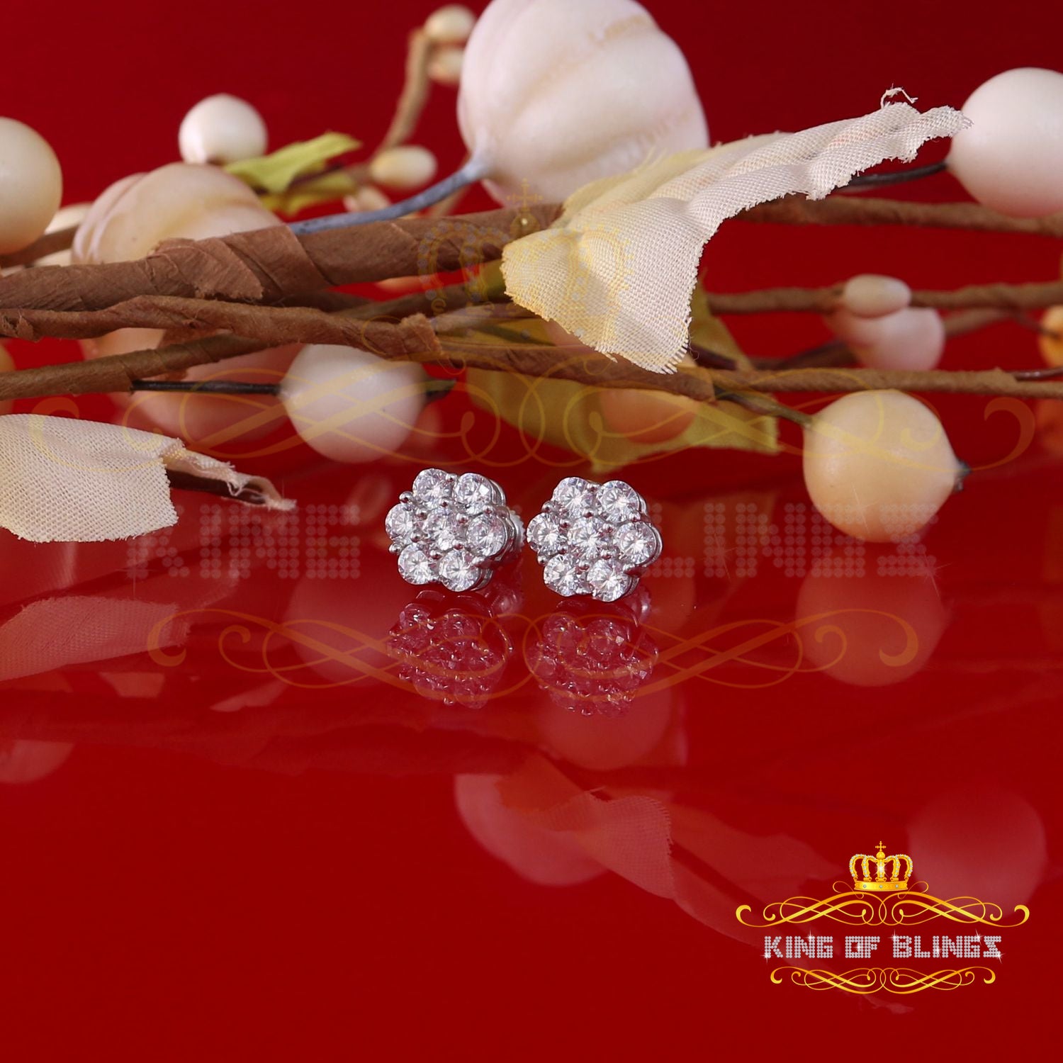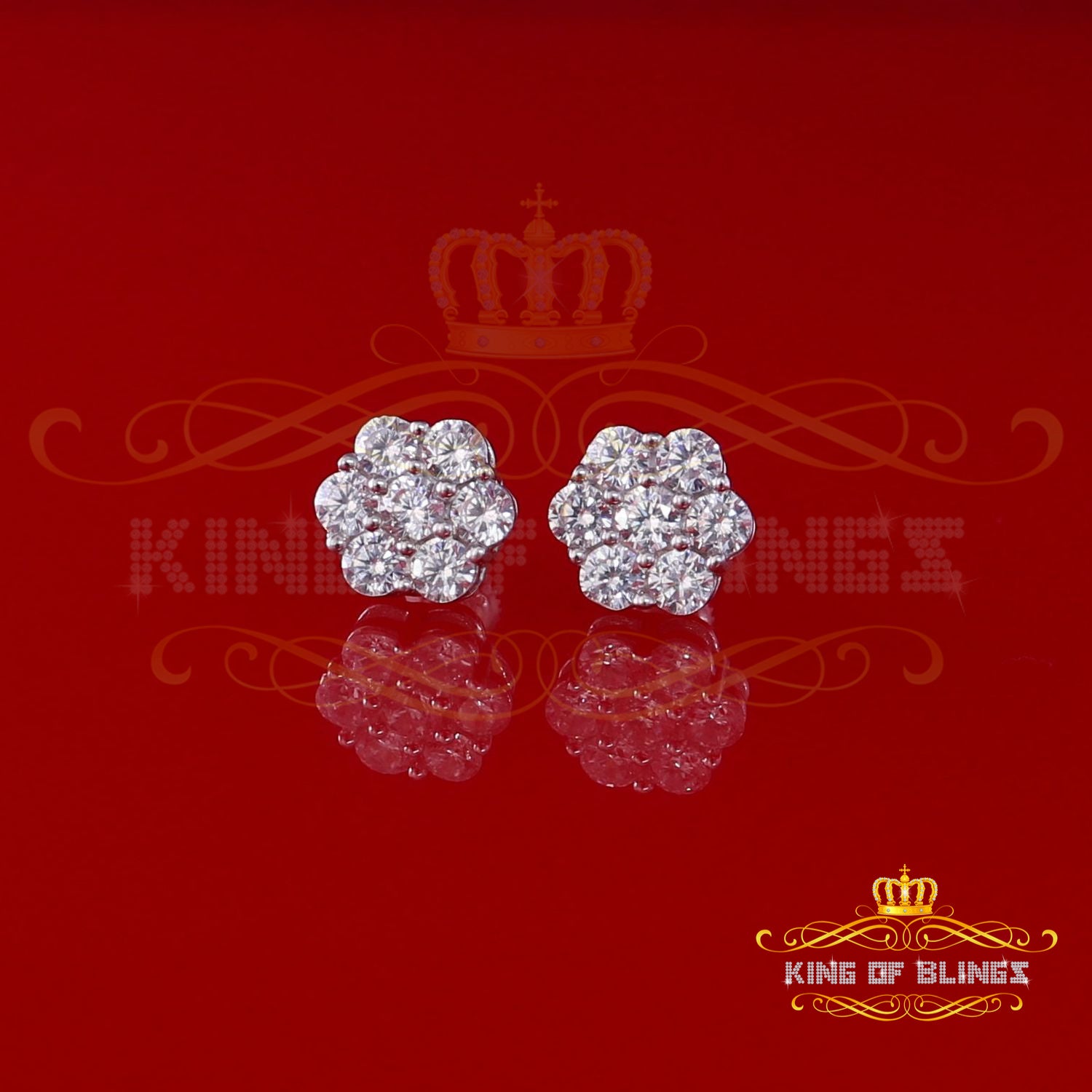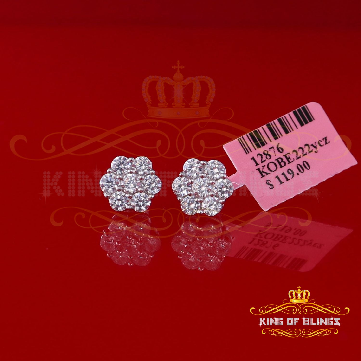 King of Bling's Cubic Zirconia 925 White 2.66ct Sterling Silver Women's Hip Hop Floral Earrings
