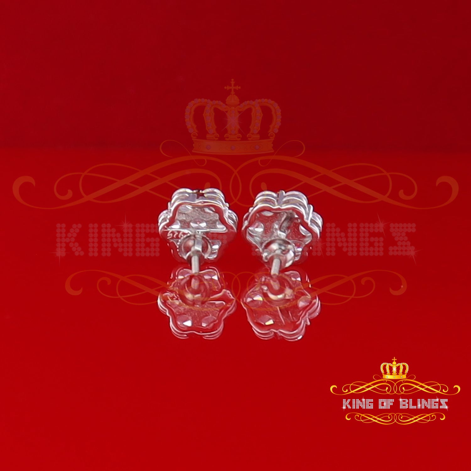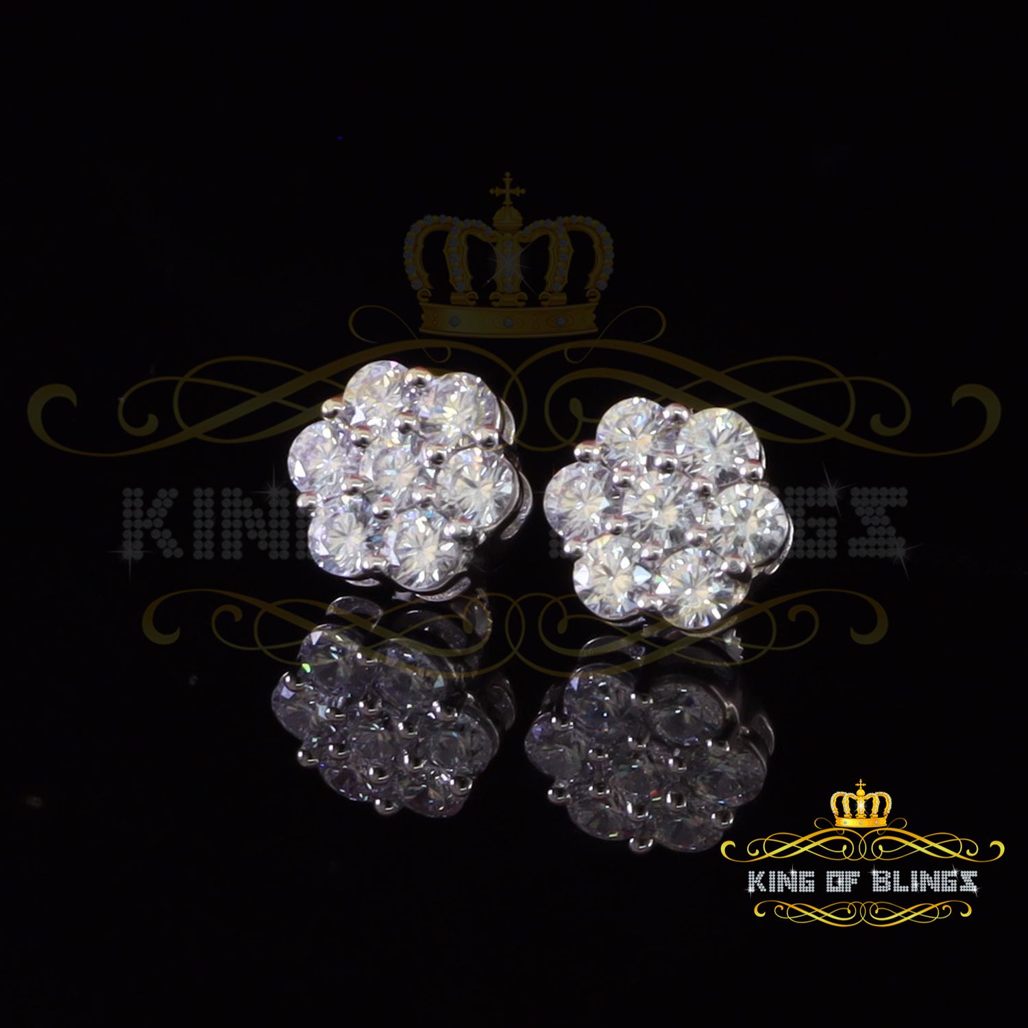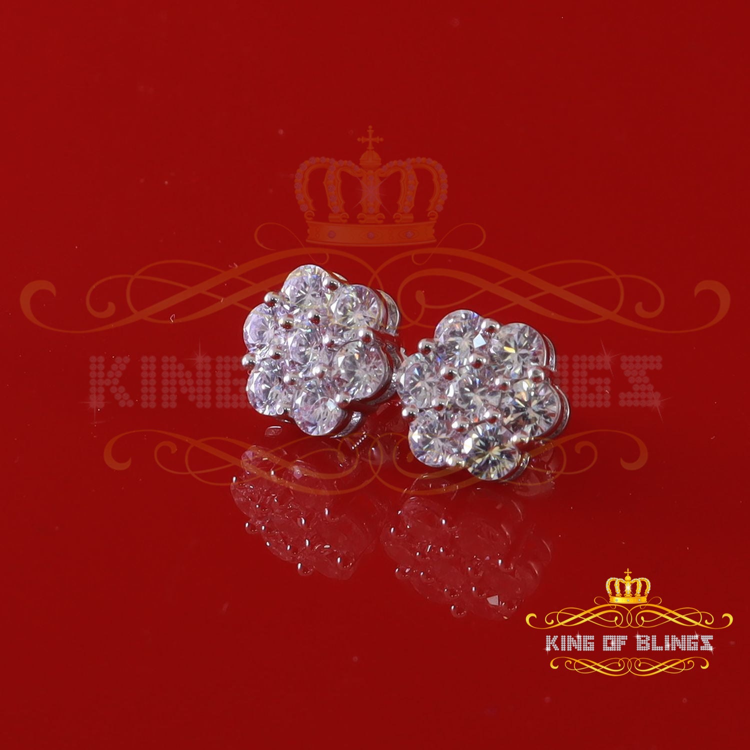 King of Bling's Cubic Zirconia 925 White 4.34ct Sterling Silver Women's Hip Hop Floral Earrings