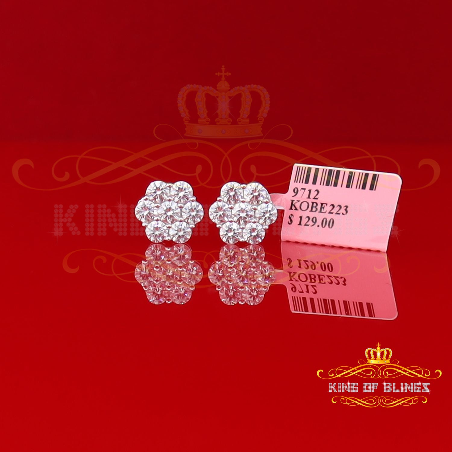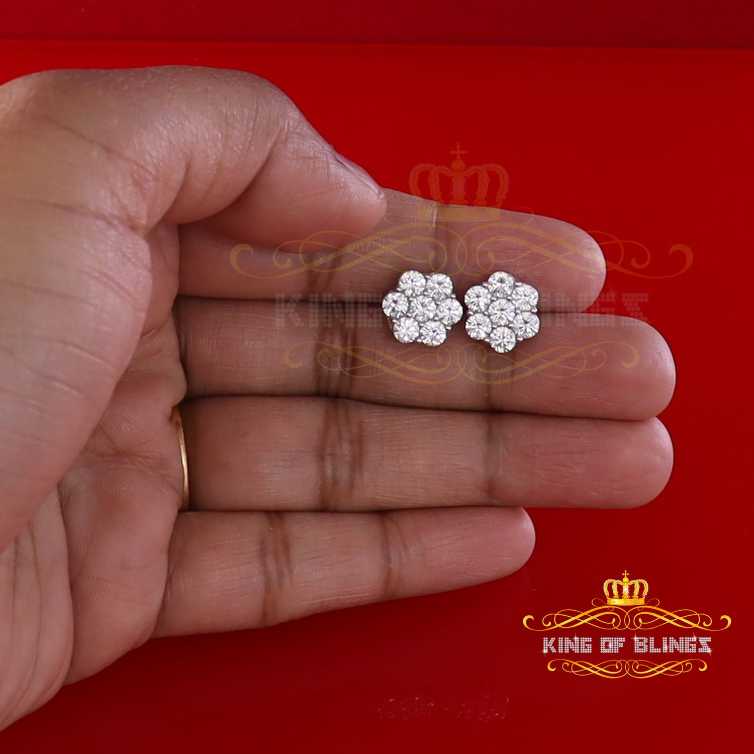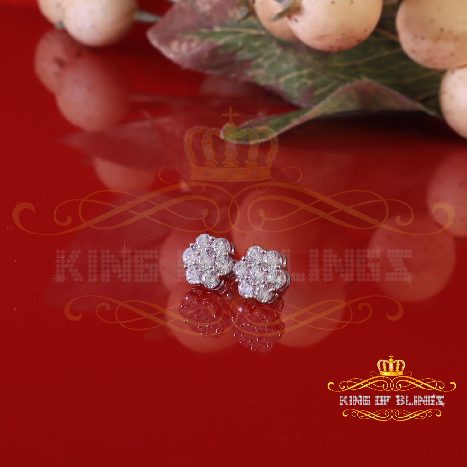 King of Bling's Cubic Zirconia 925 White 4.34ct Sterling Silver Women's Hip Hop Floral Earrings