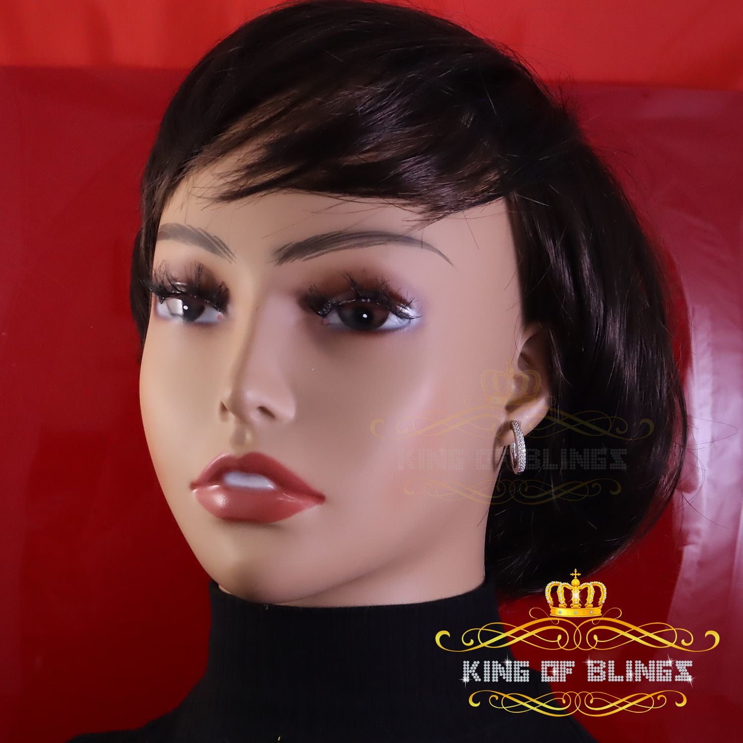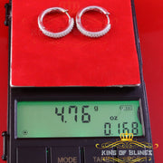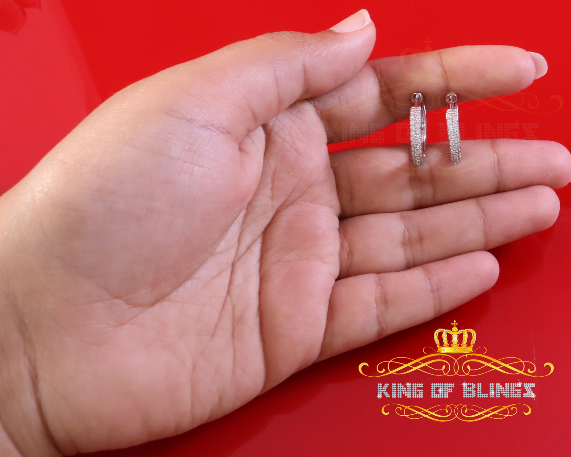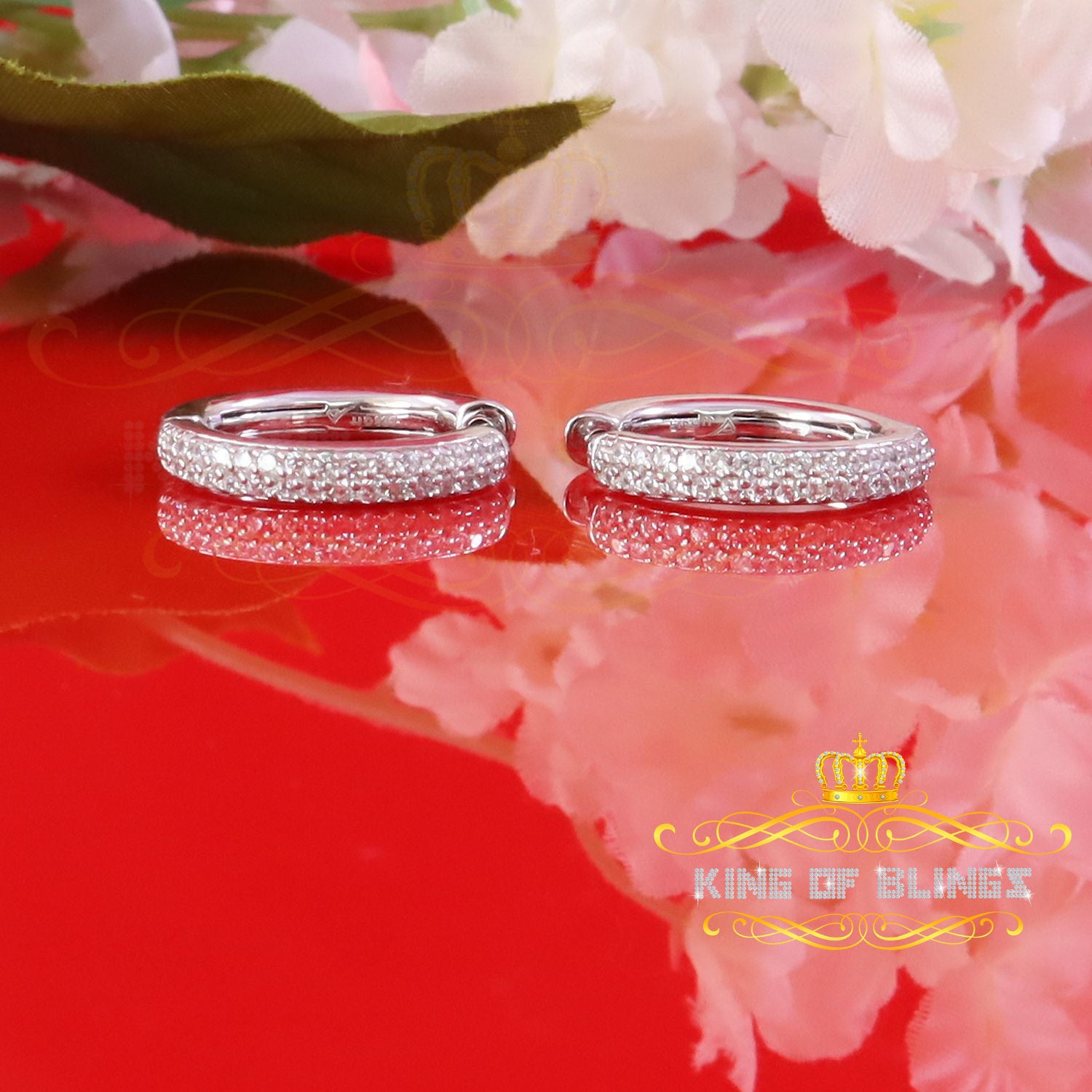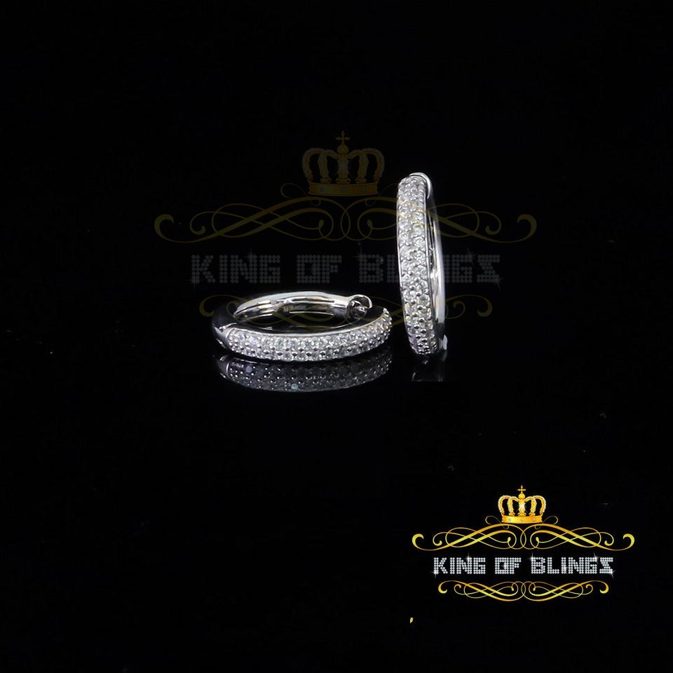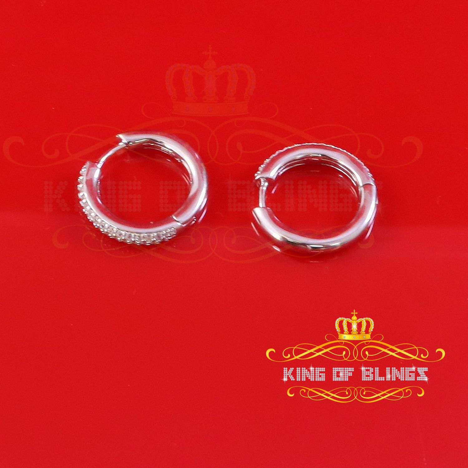 King of Bling's Cubic Zirconia 925 White Silver Hip Hop Women's & Men's Huggie Hoop Earrings