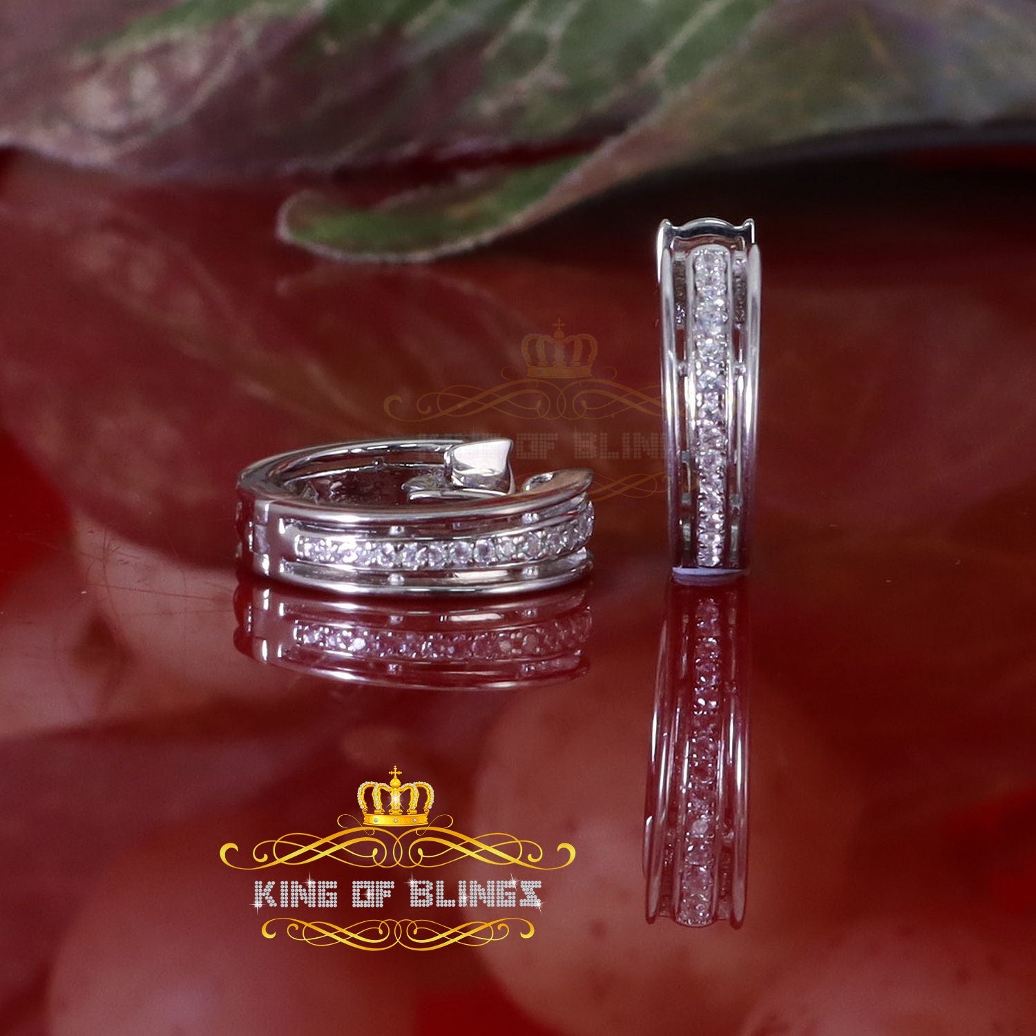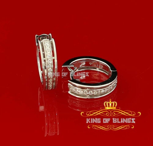 King of Bling's Cubic Zirconia 925 White Silver Hip Hop Women's & Men's Huggie Hoop Earrings
