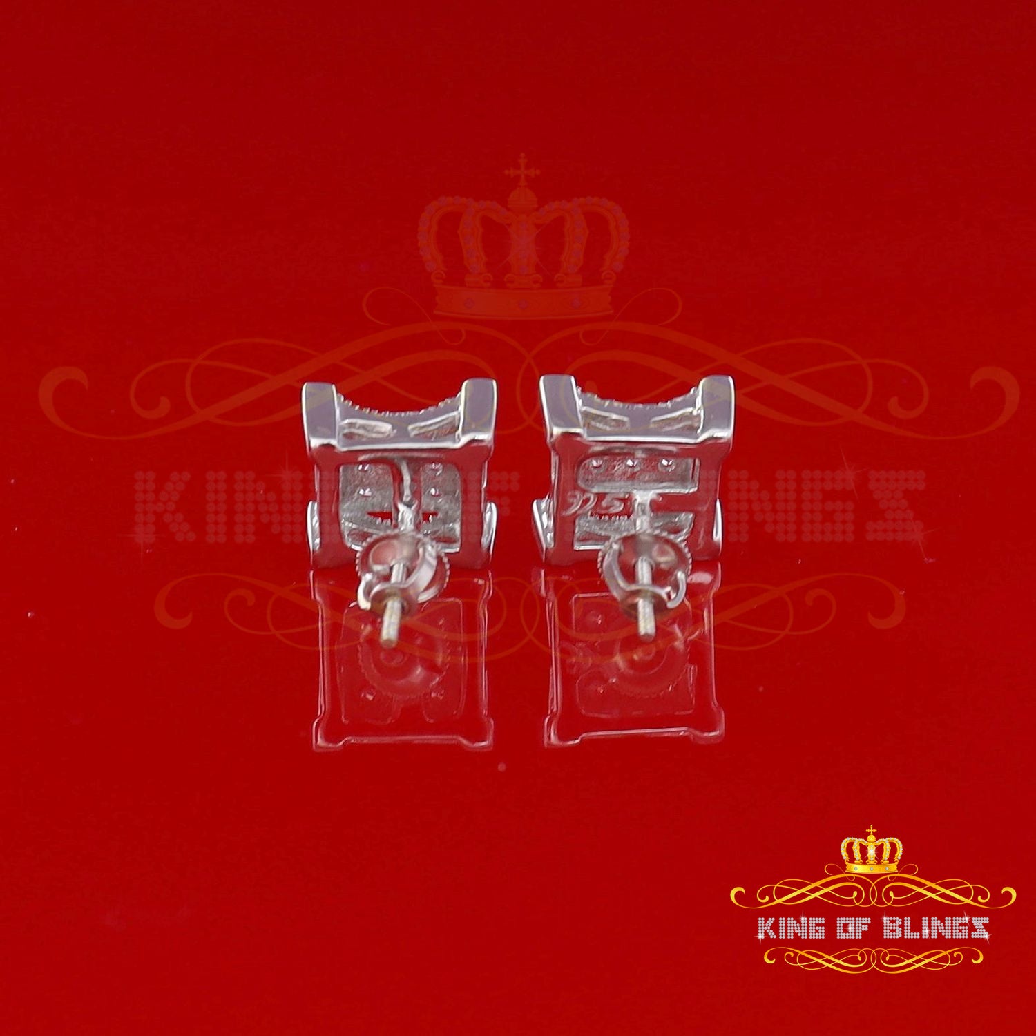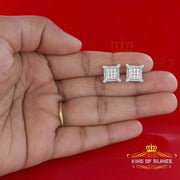 King of Bling's Elegant Square White 925 Silver Screw Back 1.05ct Cubic Zirconia Women Earrings