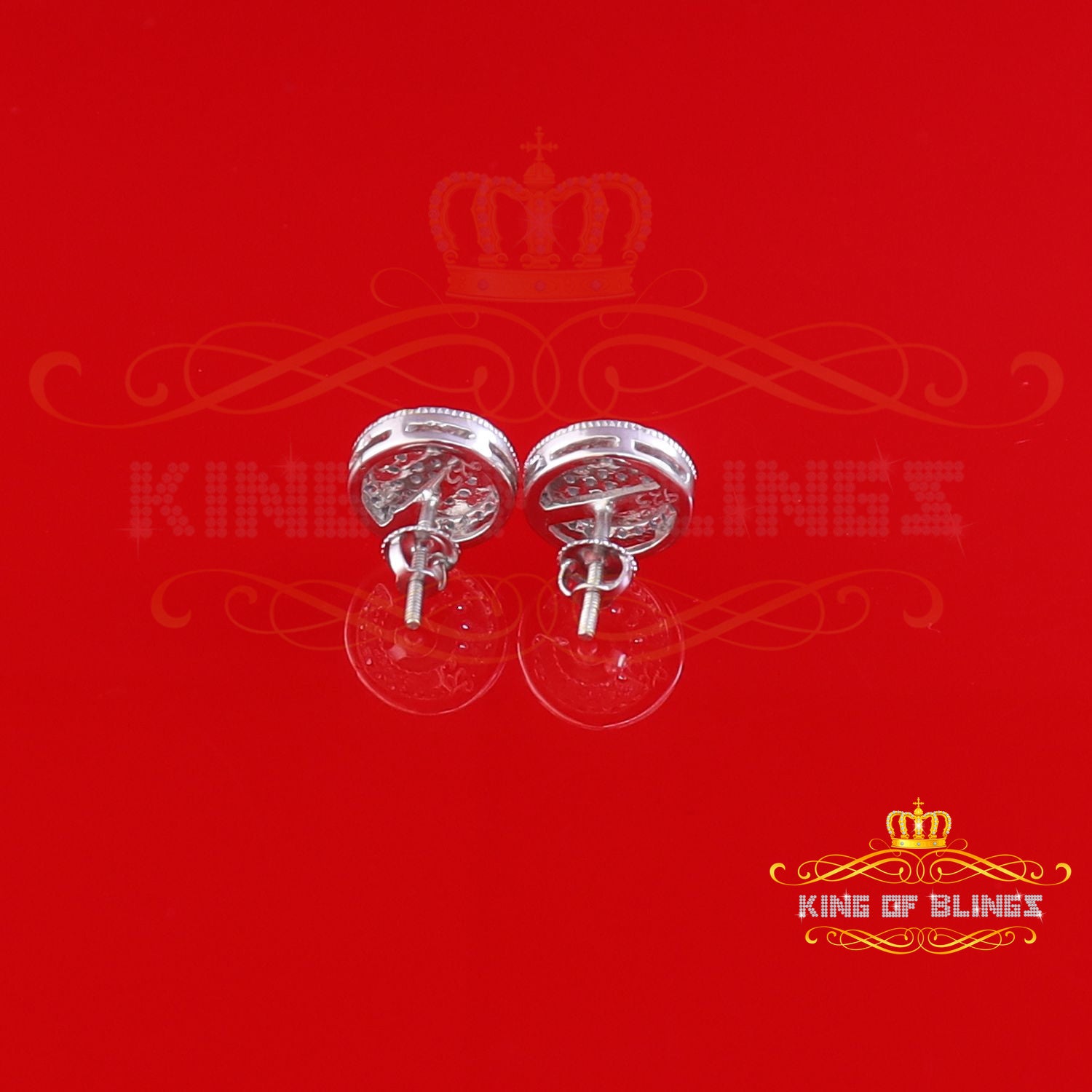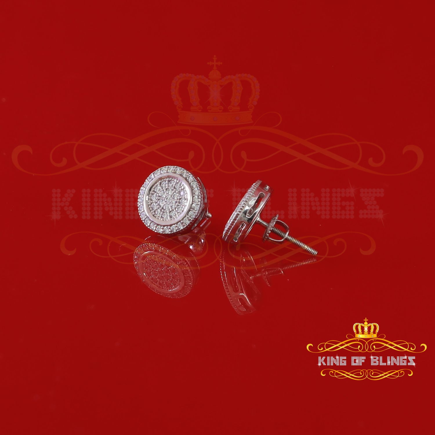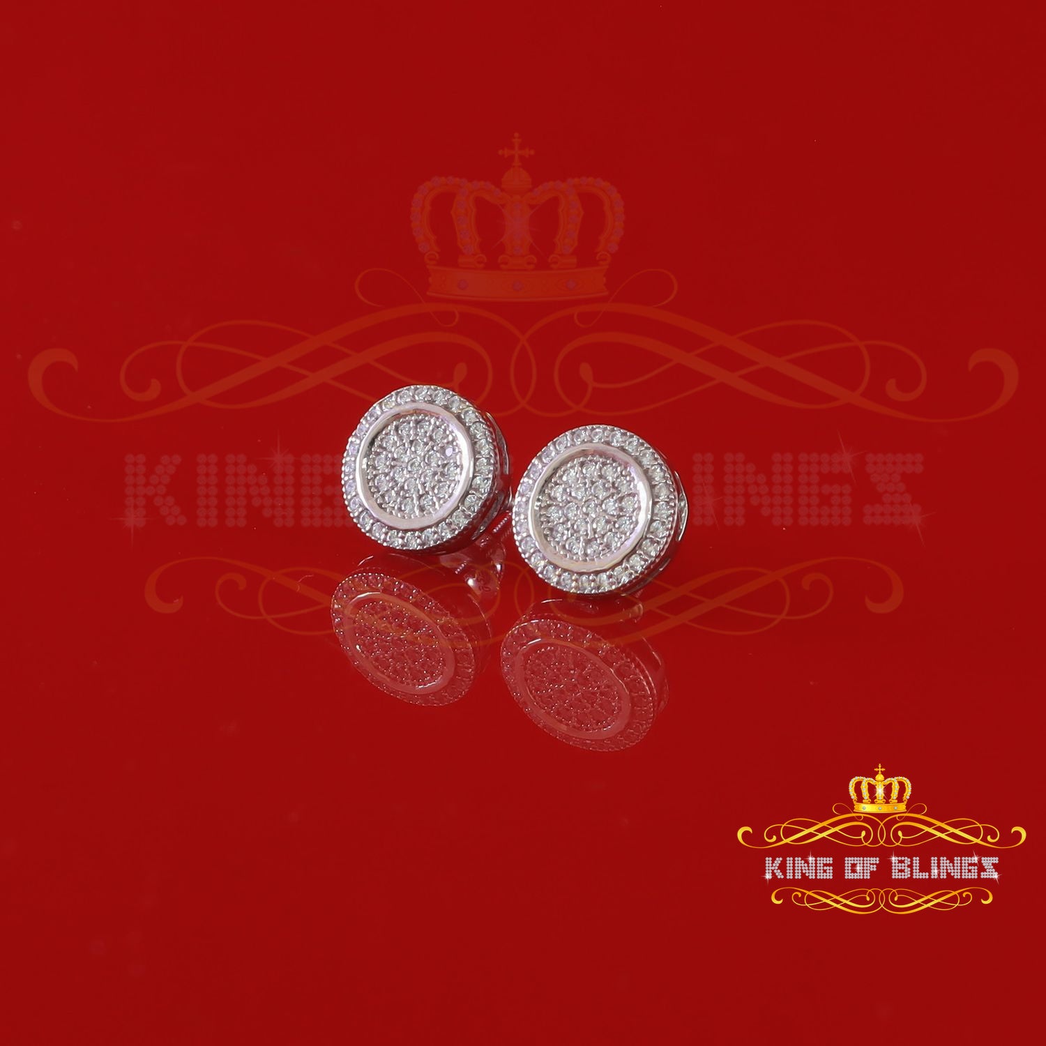 King of Bling's Elegant White 925 Silver Screw Back 0.69ct Cubic Zirconia Round Womens Earrings