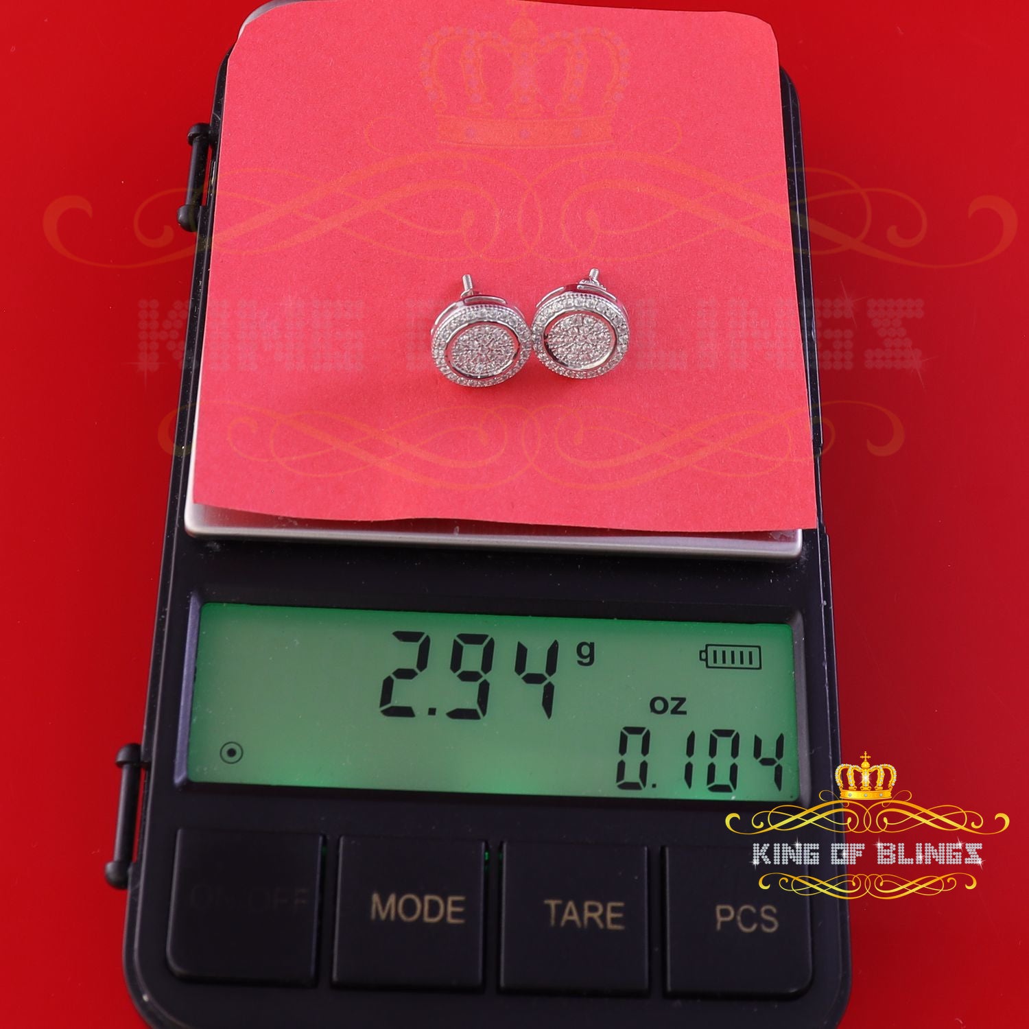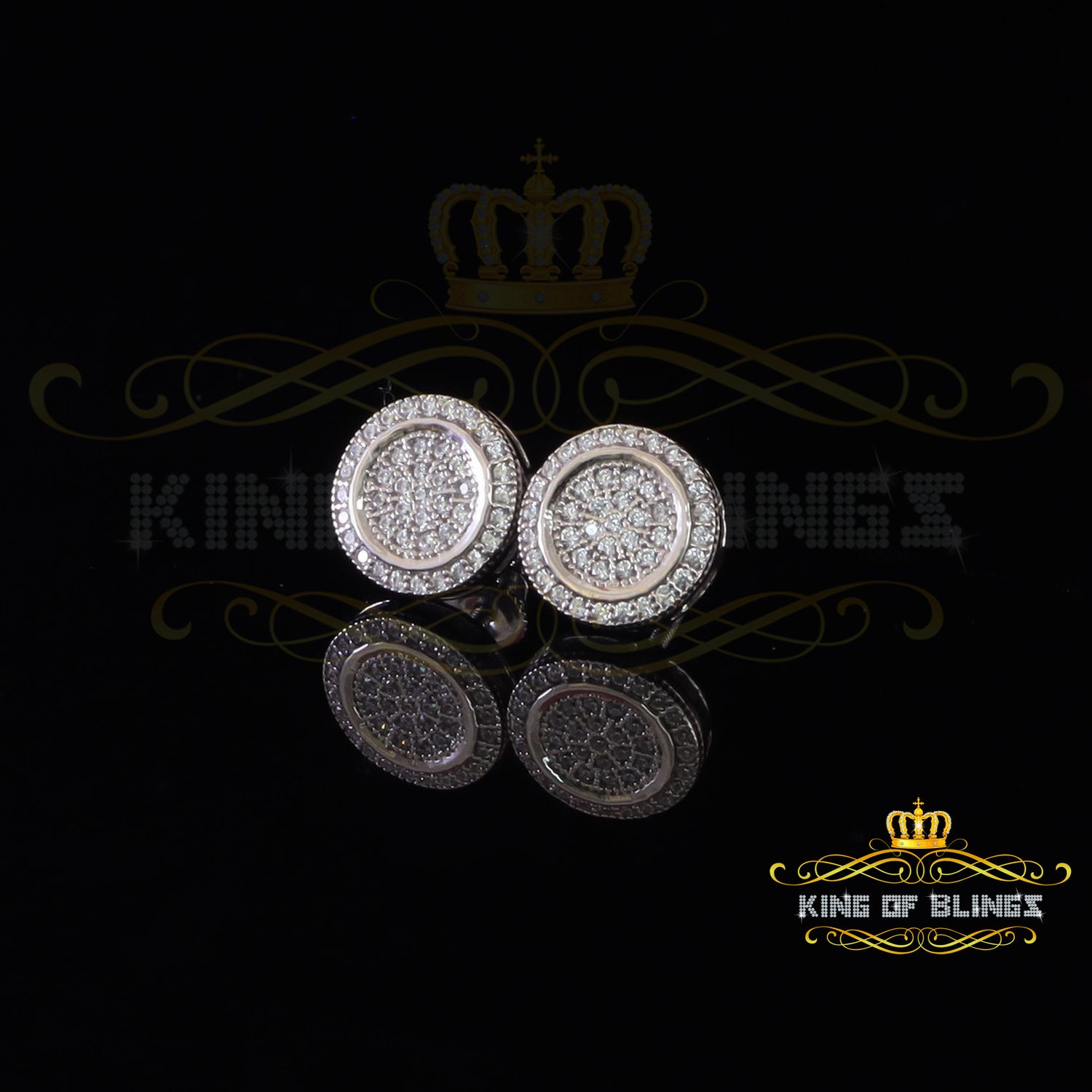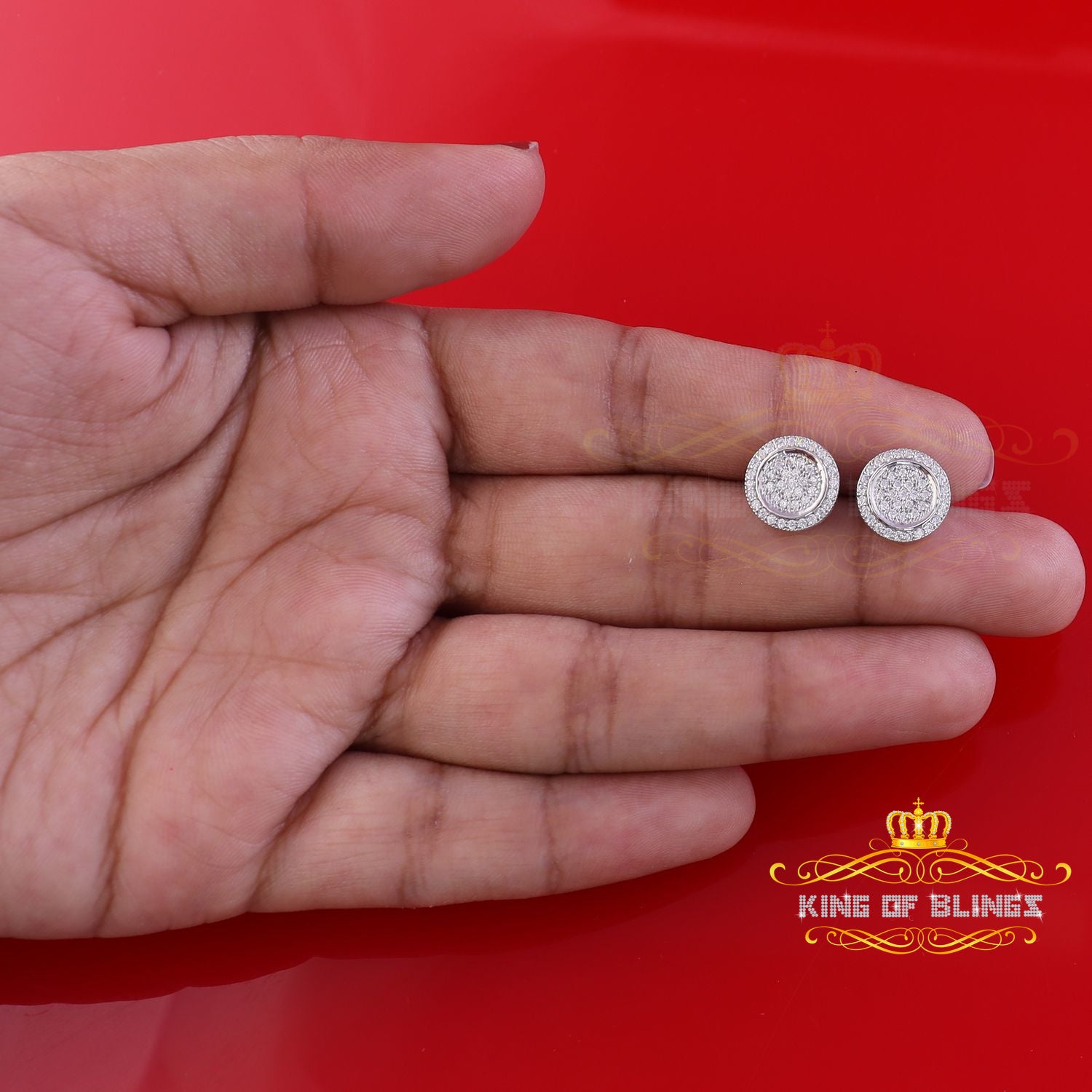 King of Bling's Elegant White 925 Silver Screw Back 0.69ct Cubic Zirconia Round Womens Earrings