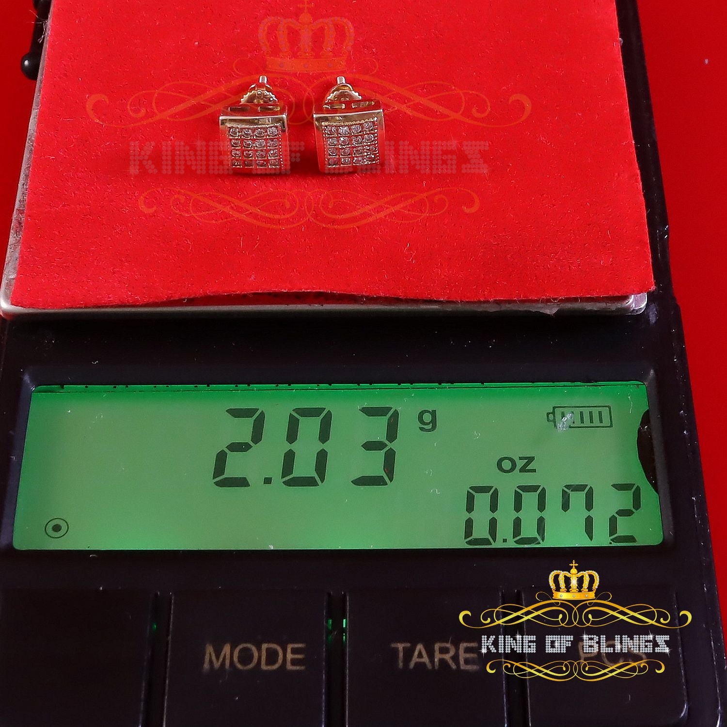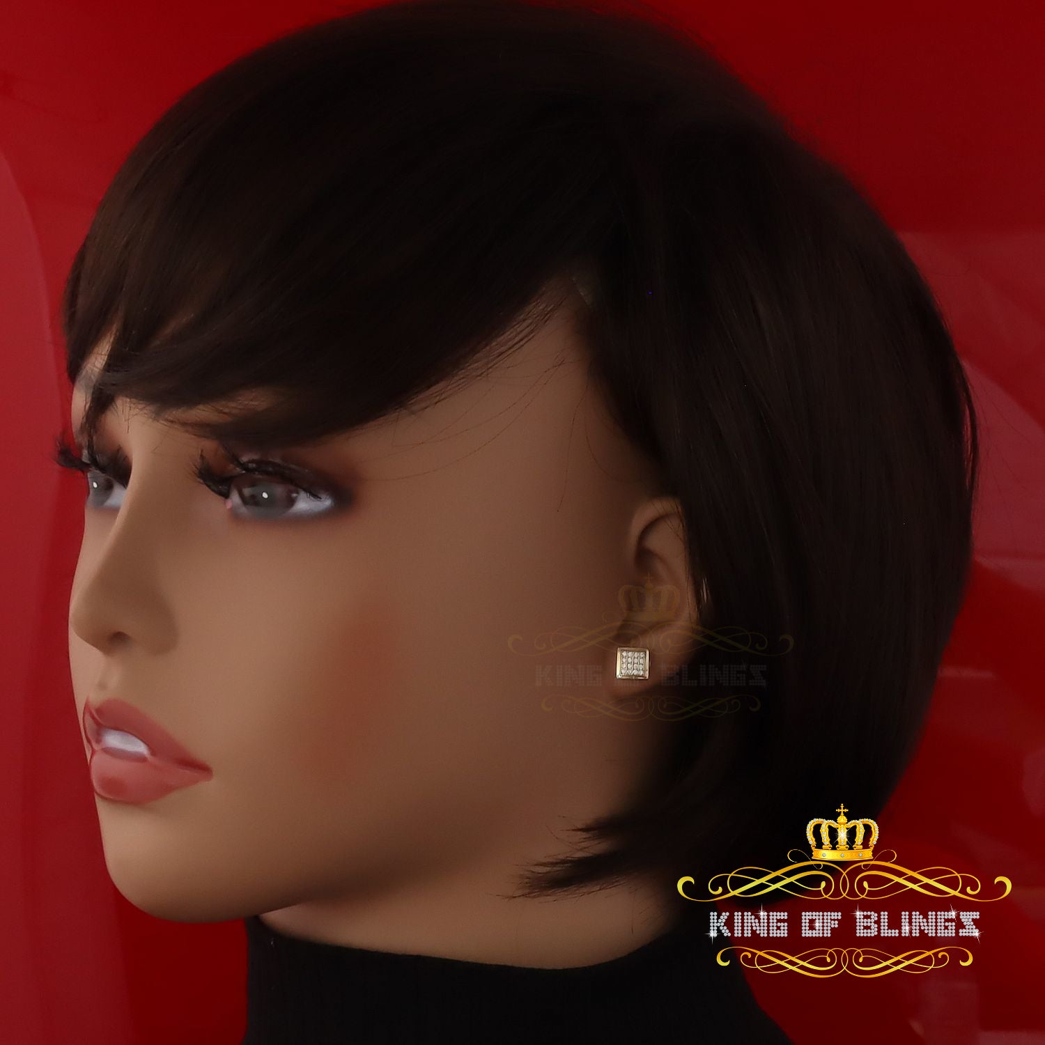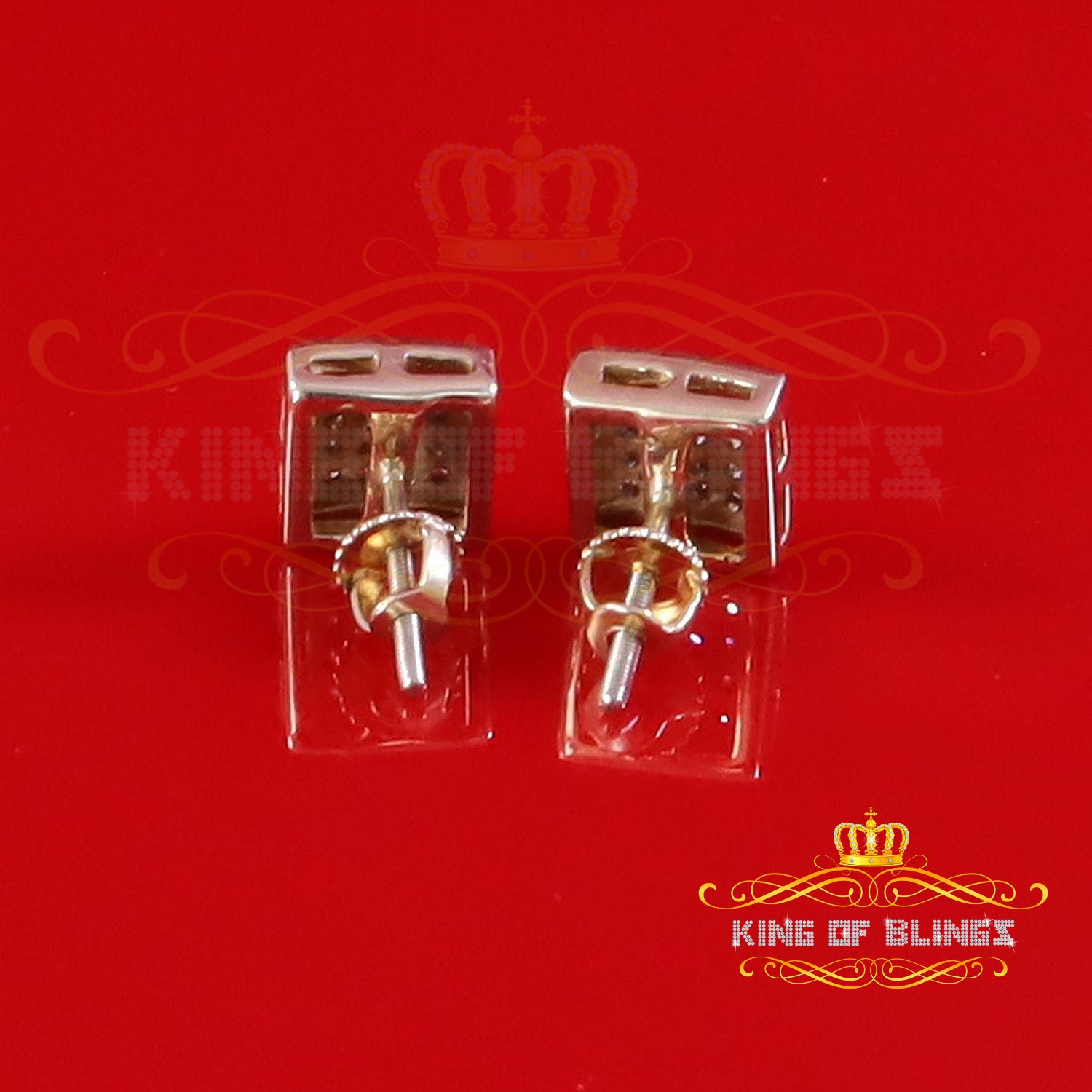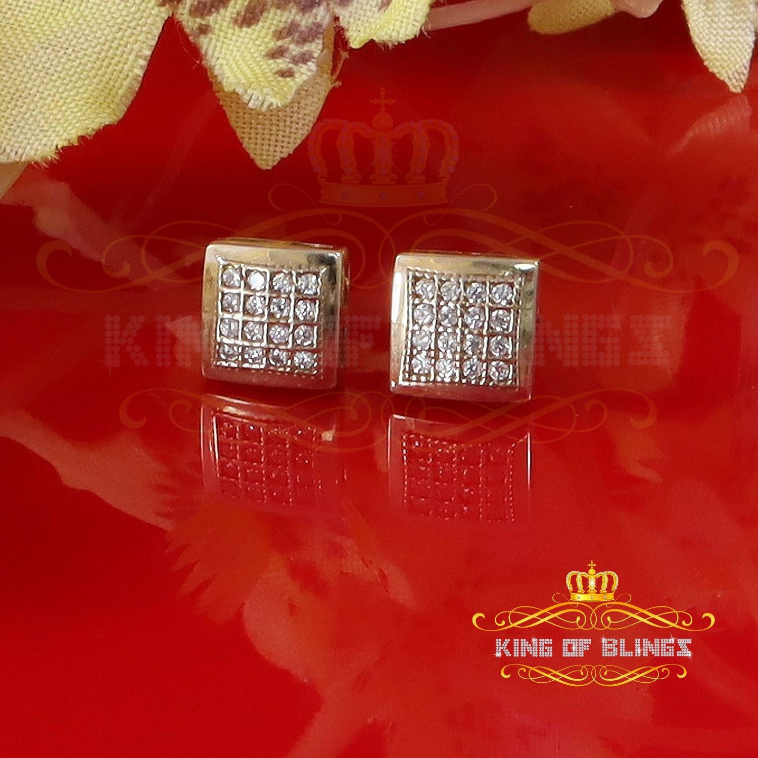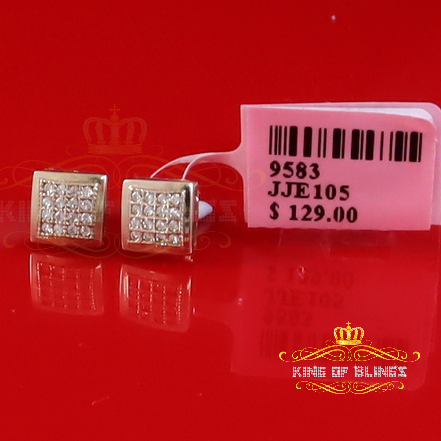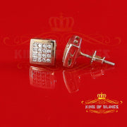 King of Bling's Elegant Yellow 925 Silver Screw Back 0.32ct Cubic Zirconia Square Earrings Women