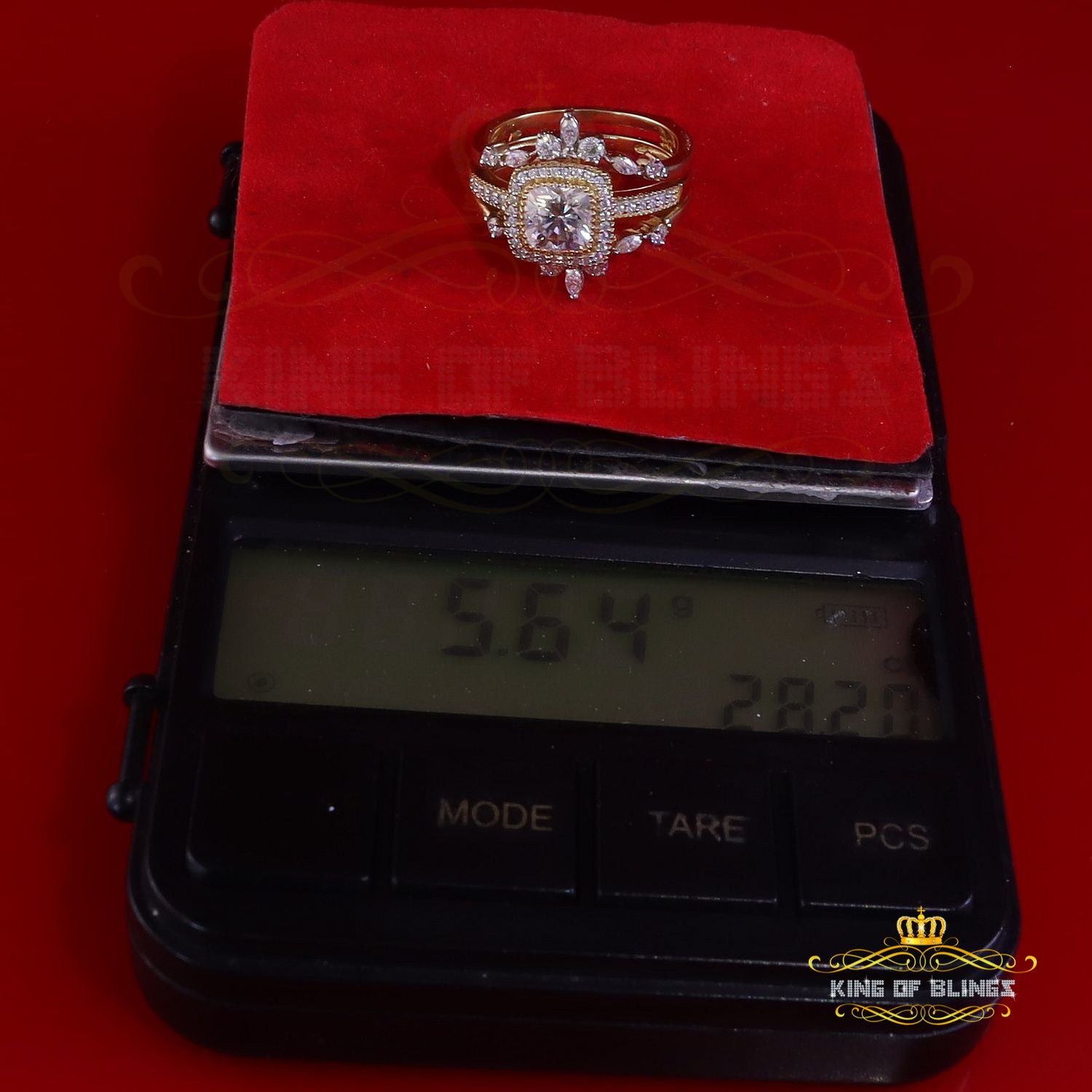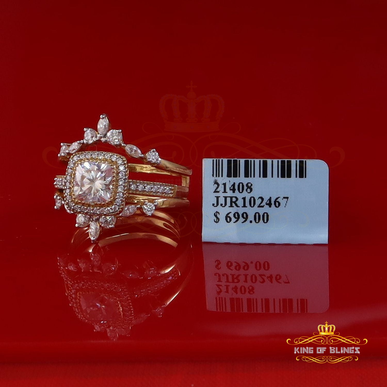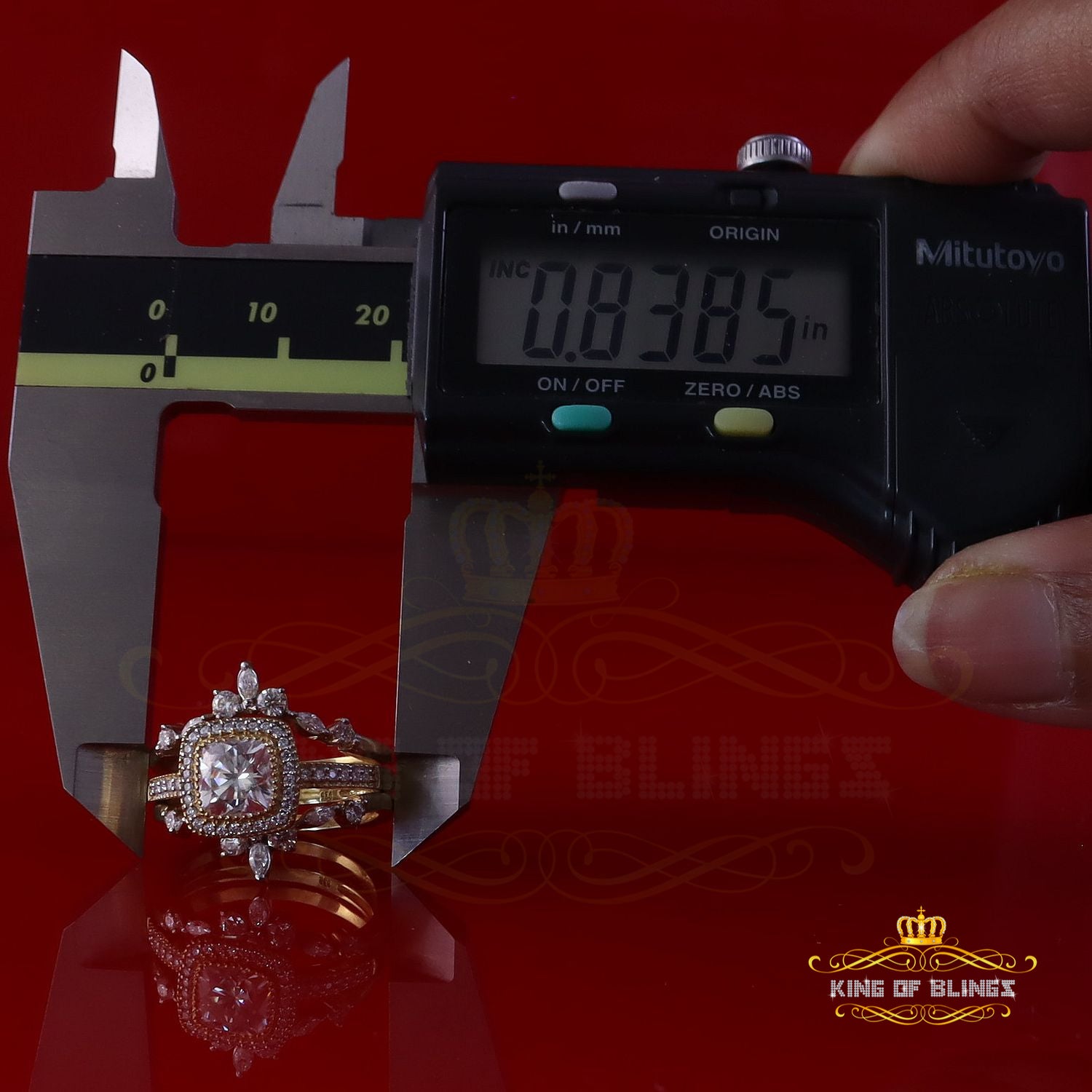 King of Bling's Enhancer Guard Wrap Insert Cushion Moissanite 1.75ct VVS D Yellow Silver RingSZ7