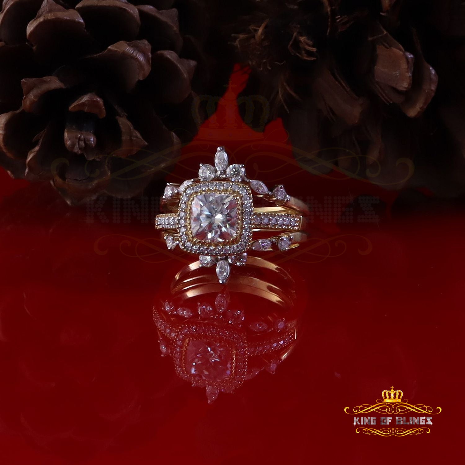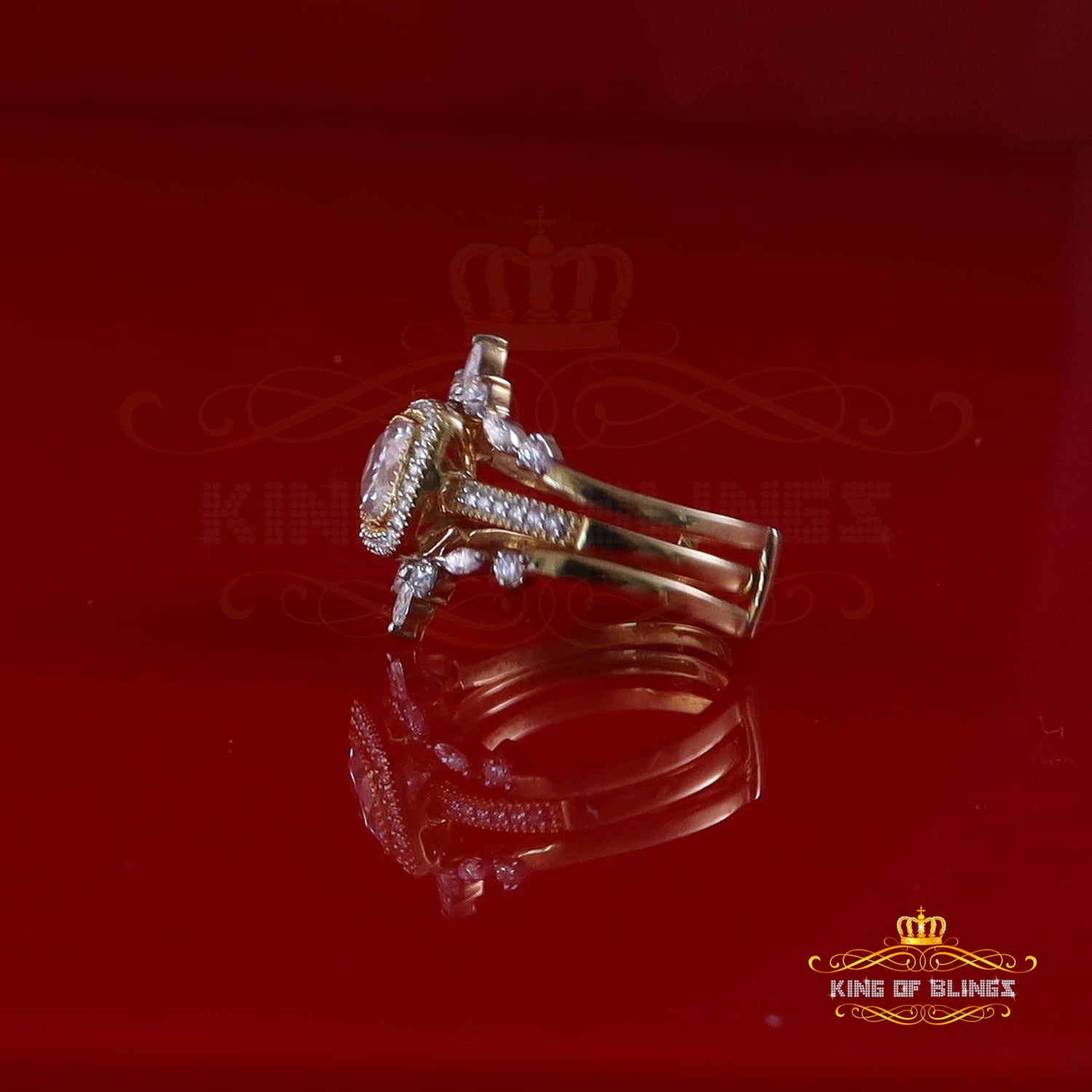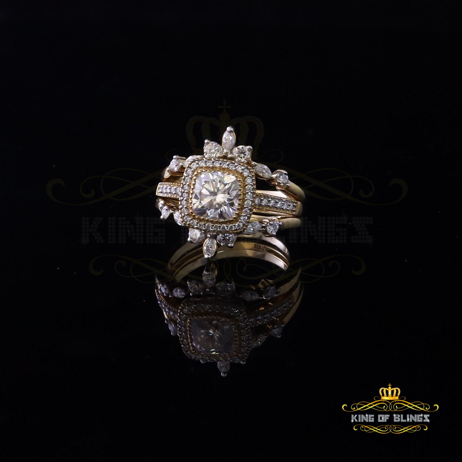 King of Bling's Enhancer Guard Wrap Insert Cushion Moissanite 1.75ct VVS D Yellow Silver RingSZ7