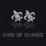 King of Blings- Fleur de Lis White 925 Silver Screw Back 0.62ct Cubic Zirconia Women Earrings