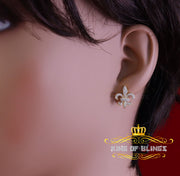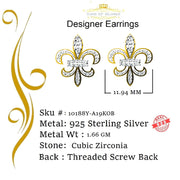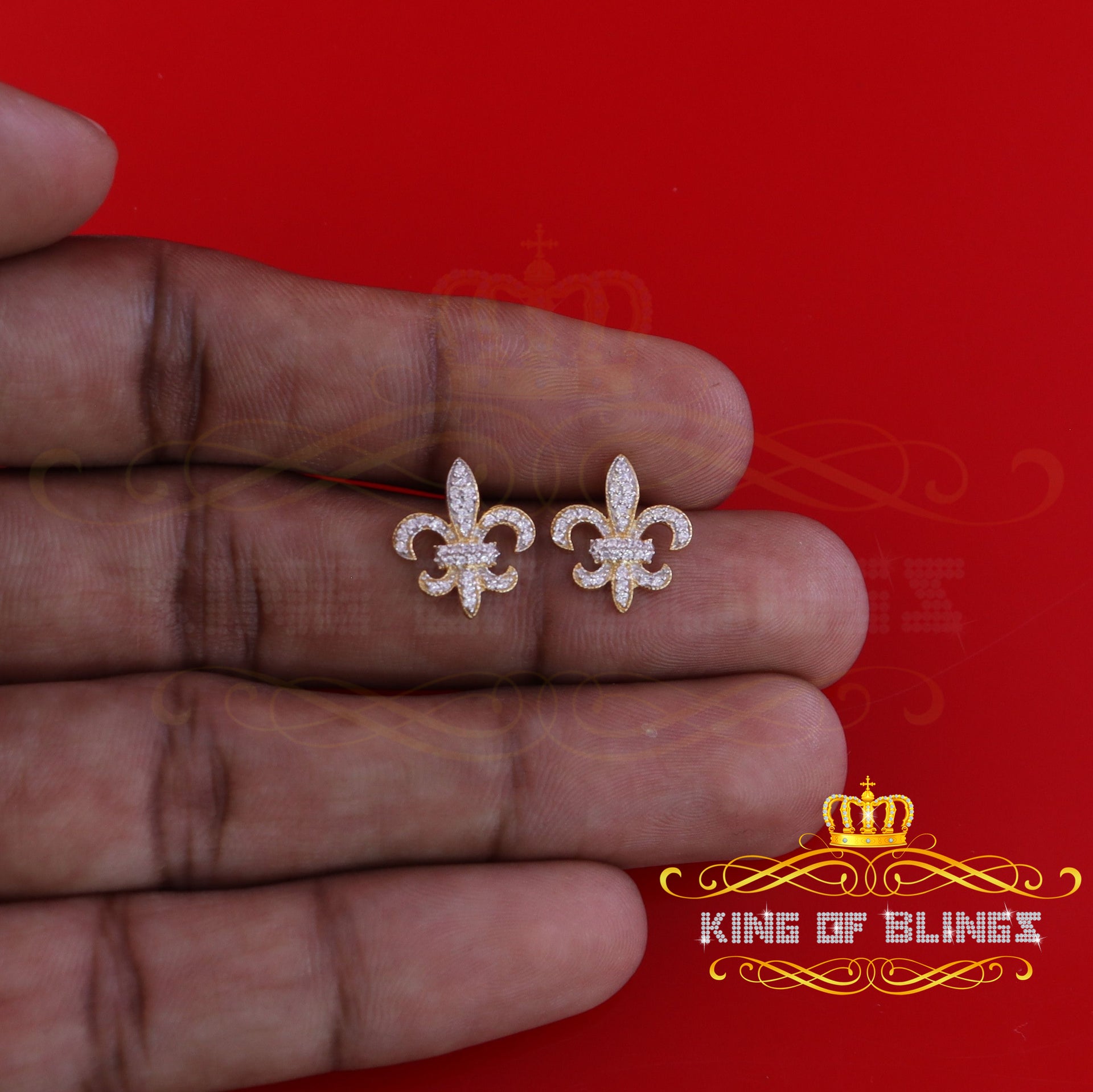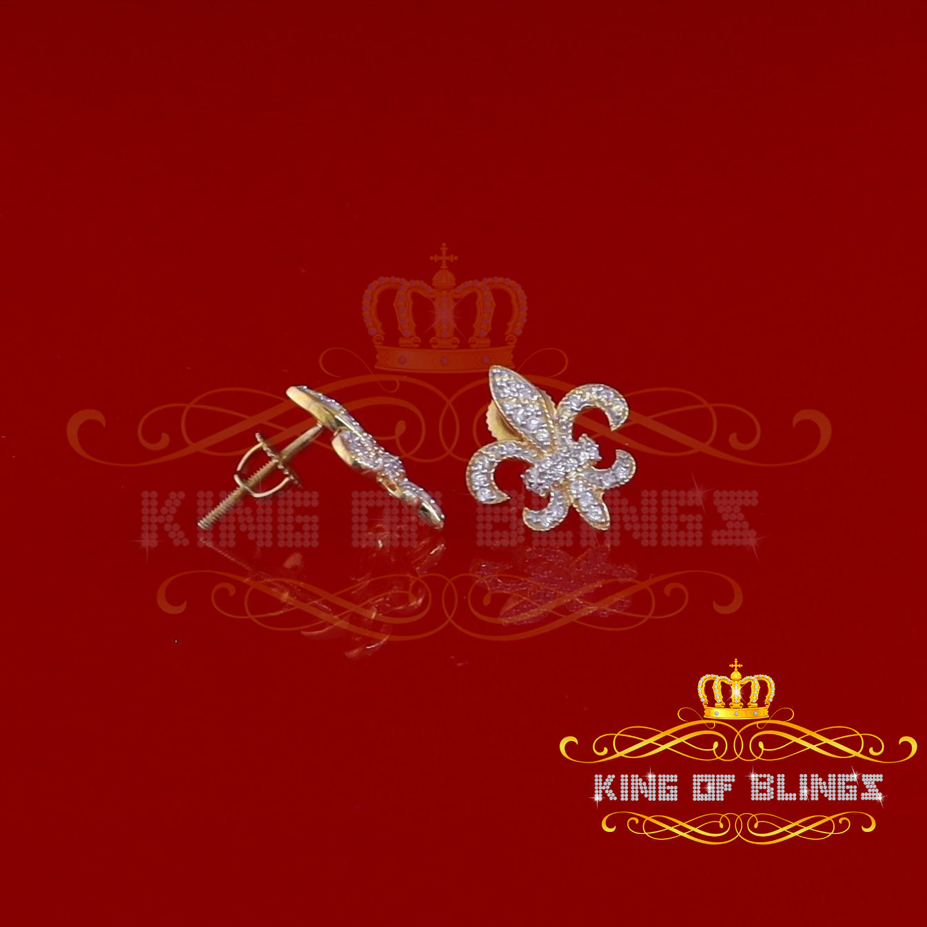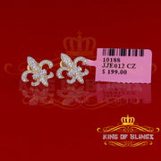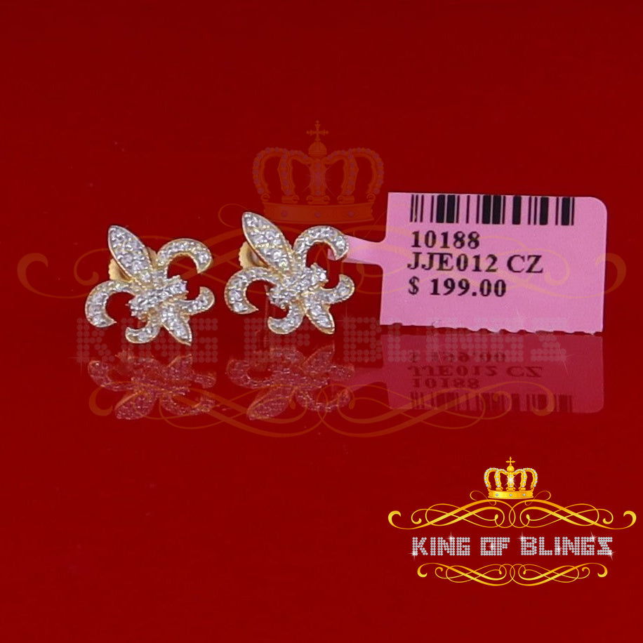 King of Bling's Fleur de Lis Yellow 925 Silver Screw Back 0.62ct Cubic Zirconia Women Earrings