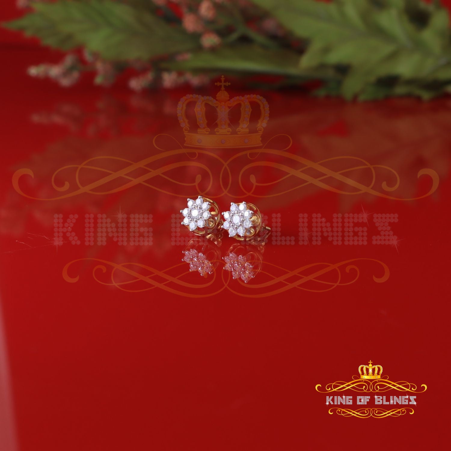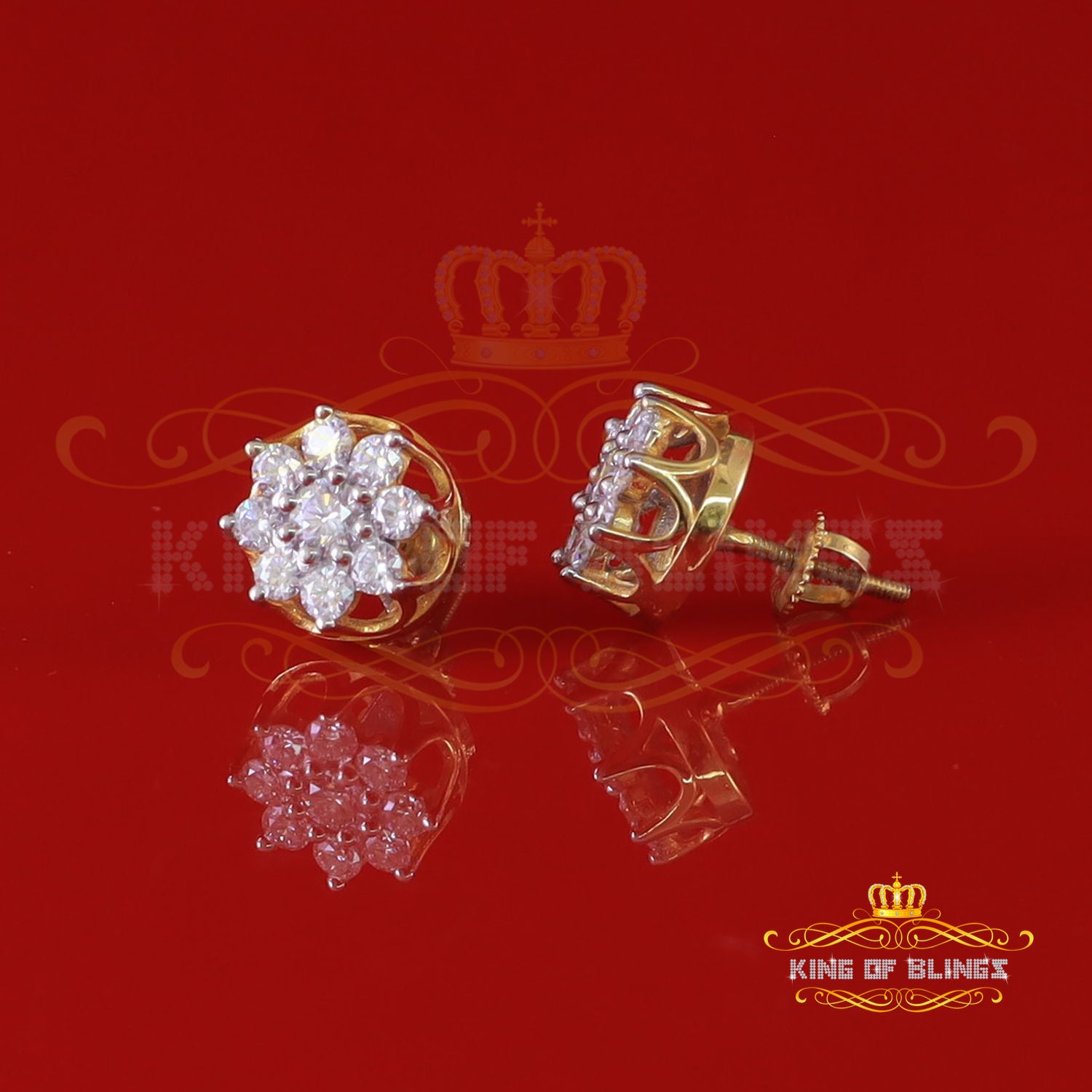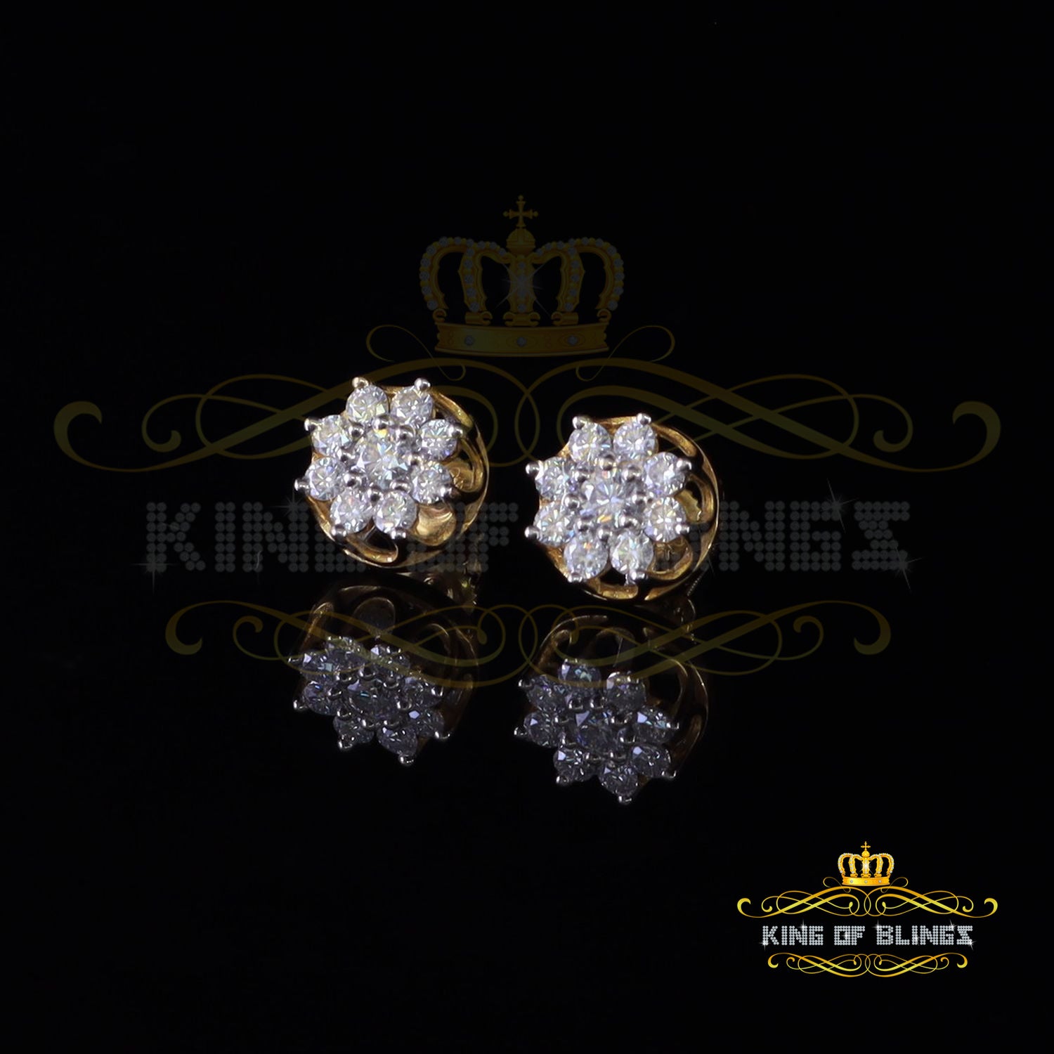King Of Bling's FLORAL Earrings 10k Real Yellow Gold 1.00ct Vvs 'D' Color Genuine Moissanite