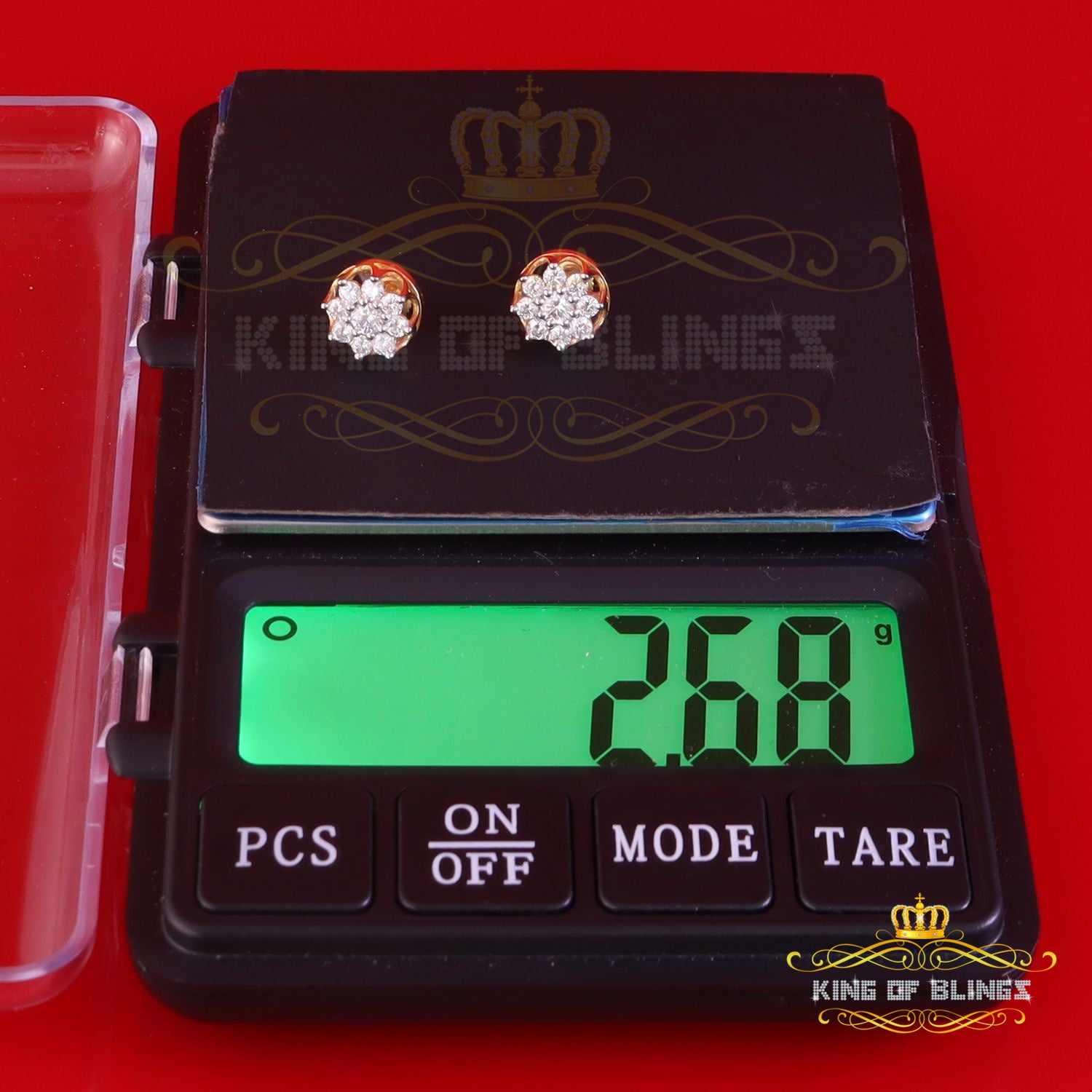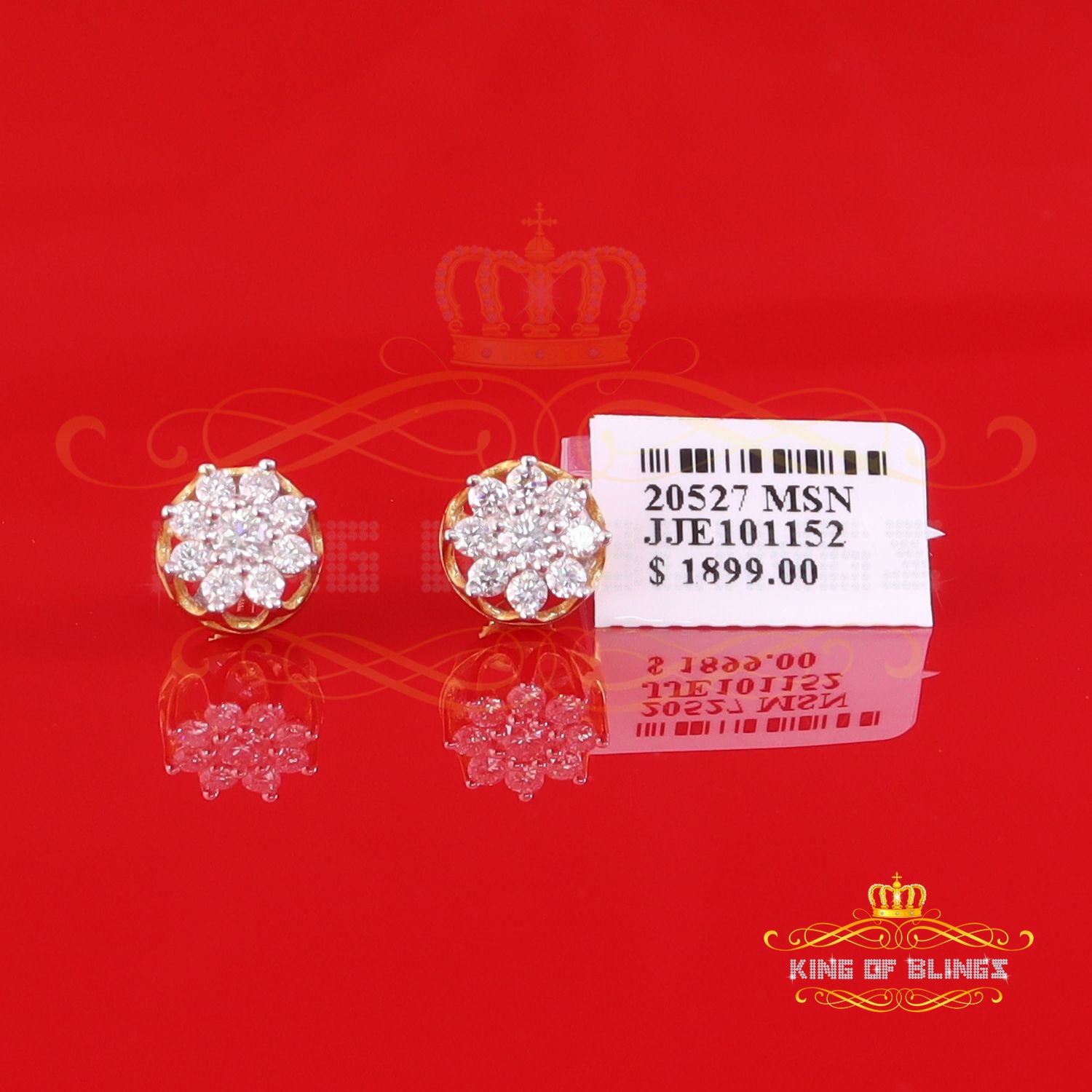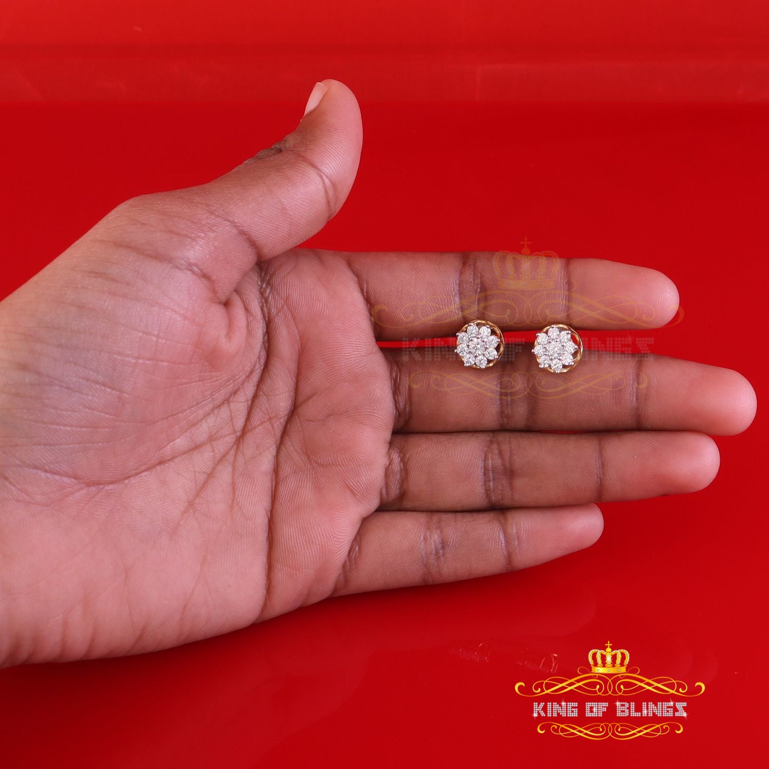 King Of Bling's FLORAL Earrings 10k Real Yellow Gold 1.00ct Vvs 'D' Color Genuine Moissanite