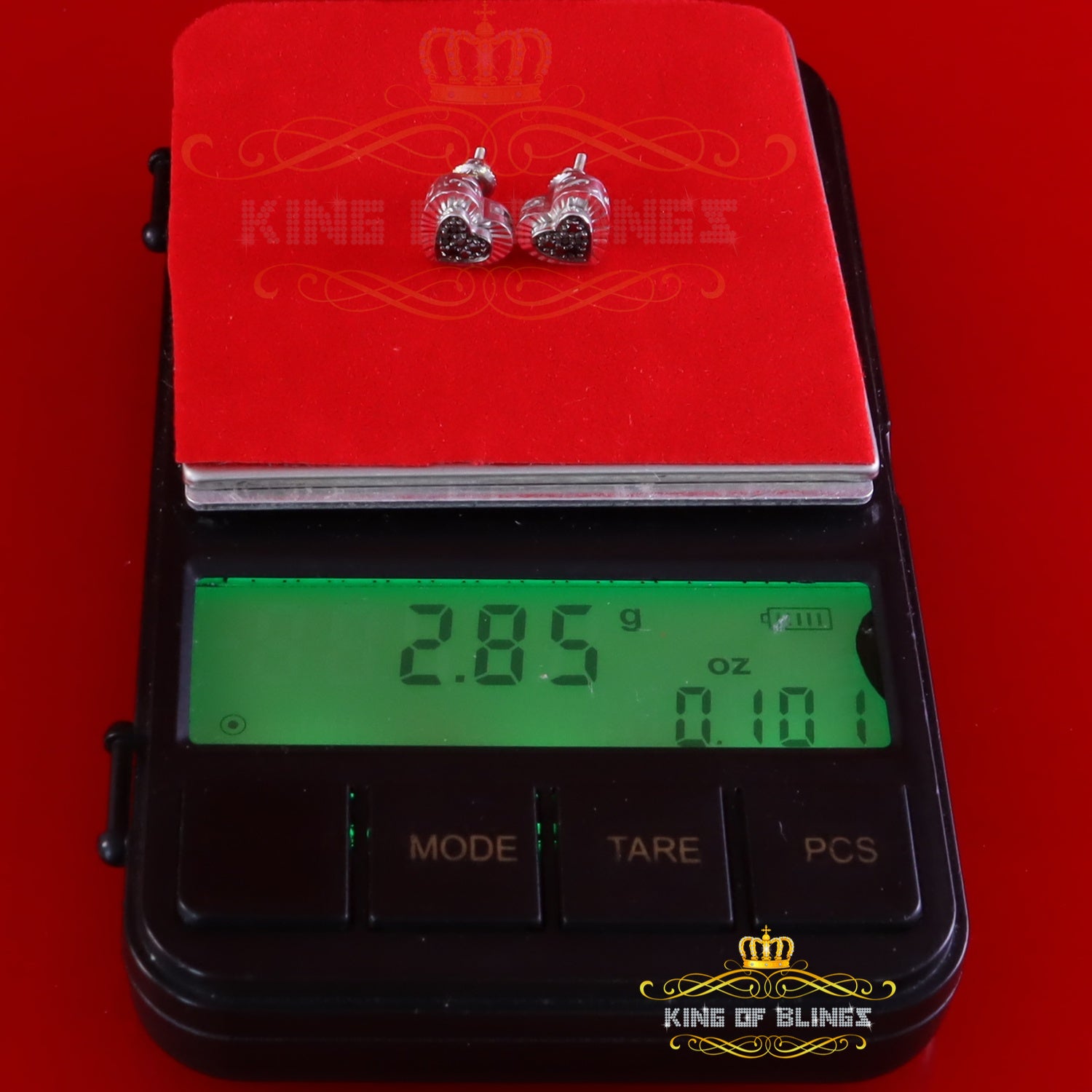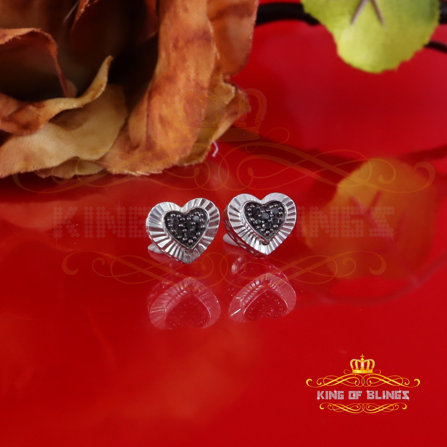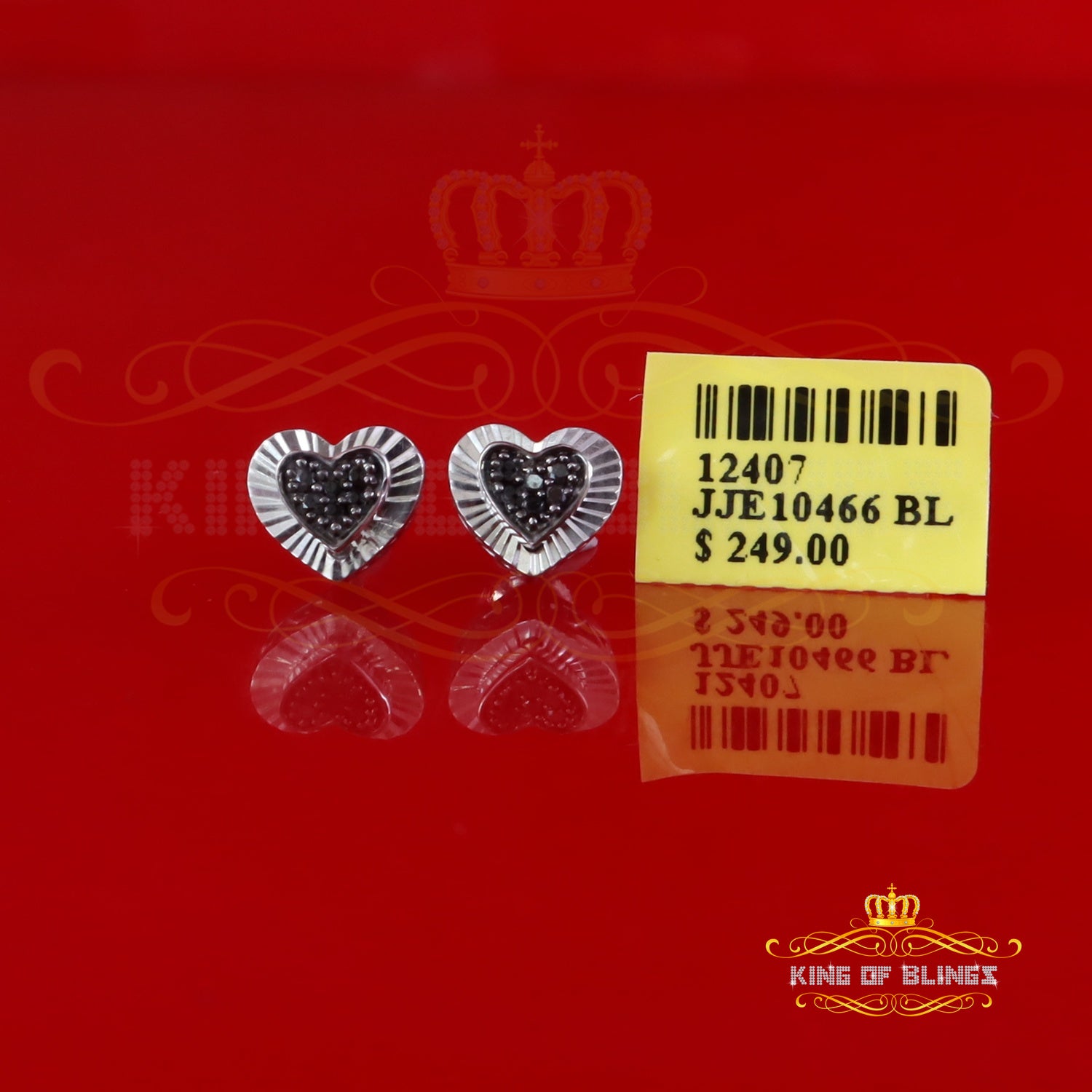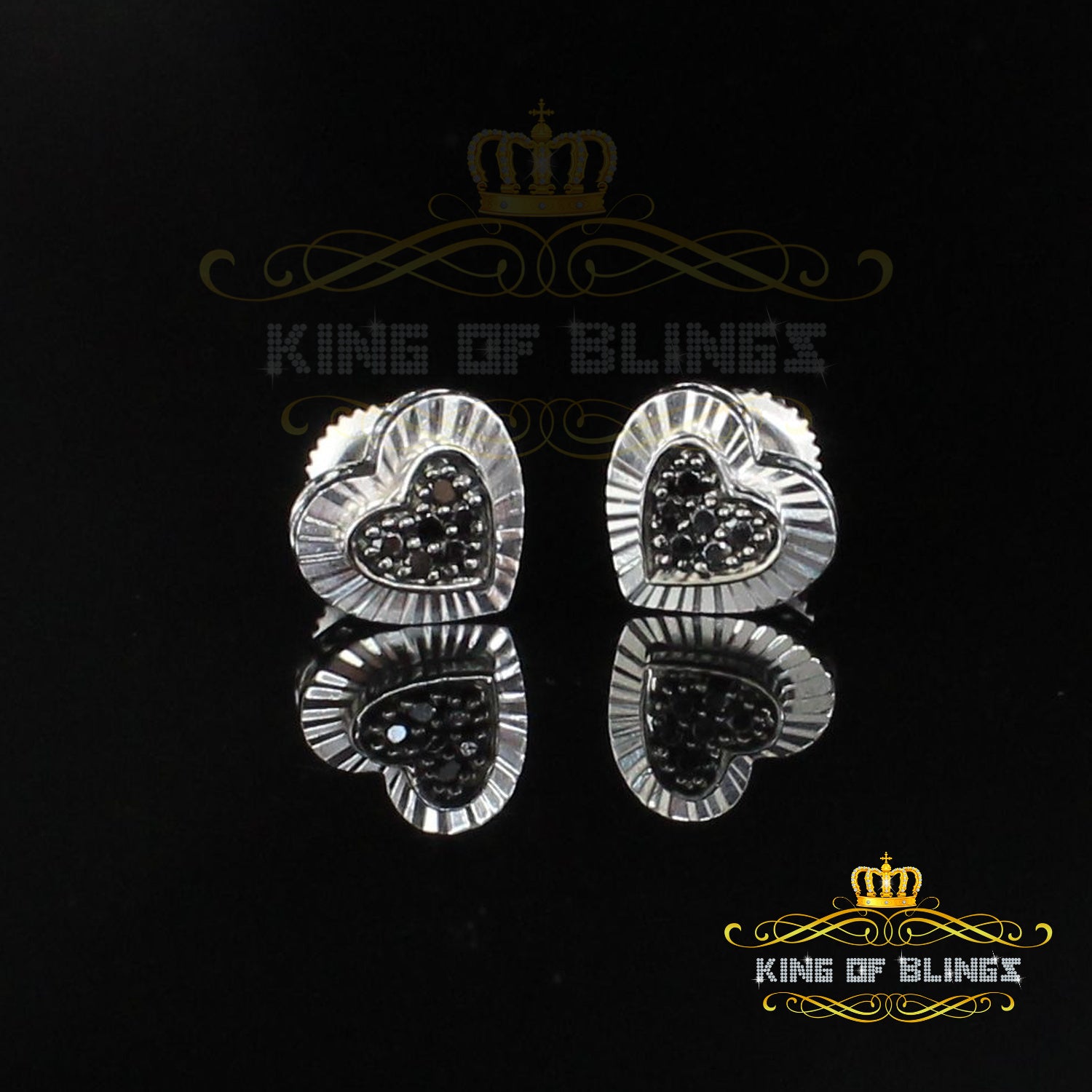 King Of Bling's Heart 925 White Silver 0.12ct Black Diamond Women's /Men's Fashion Earrings