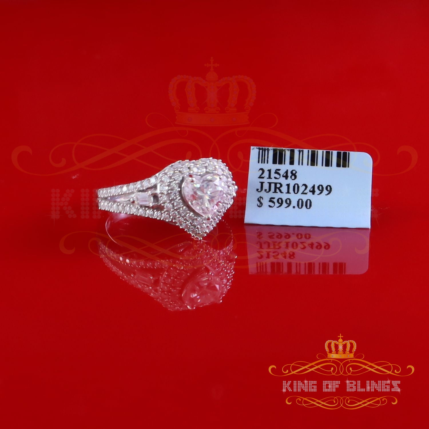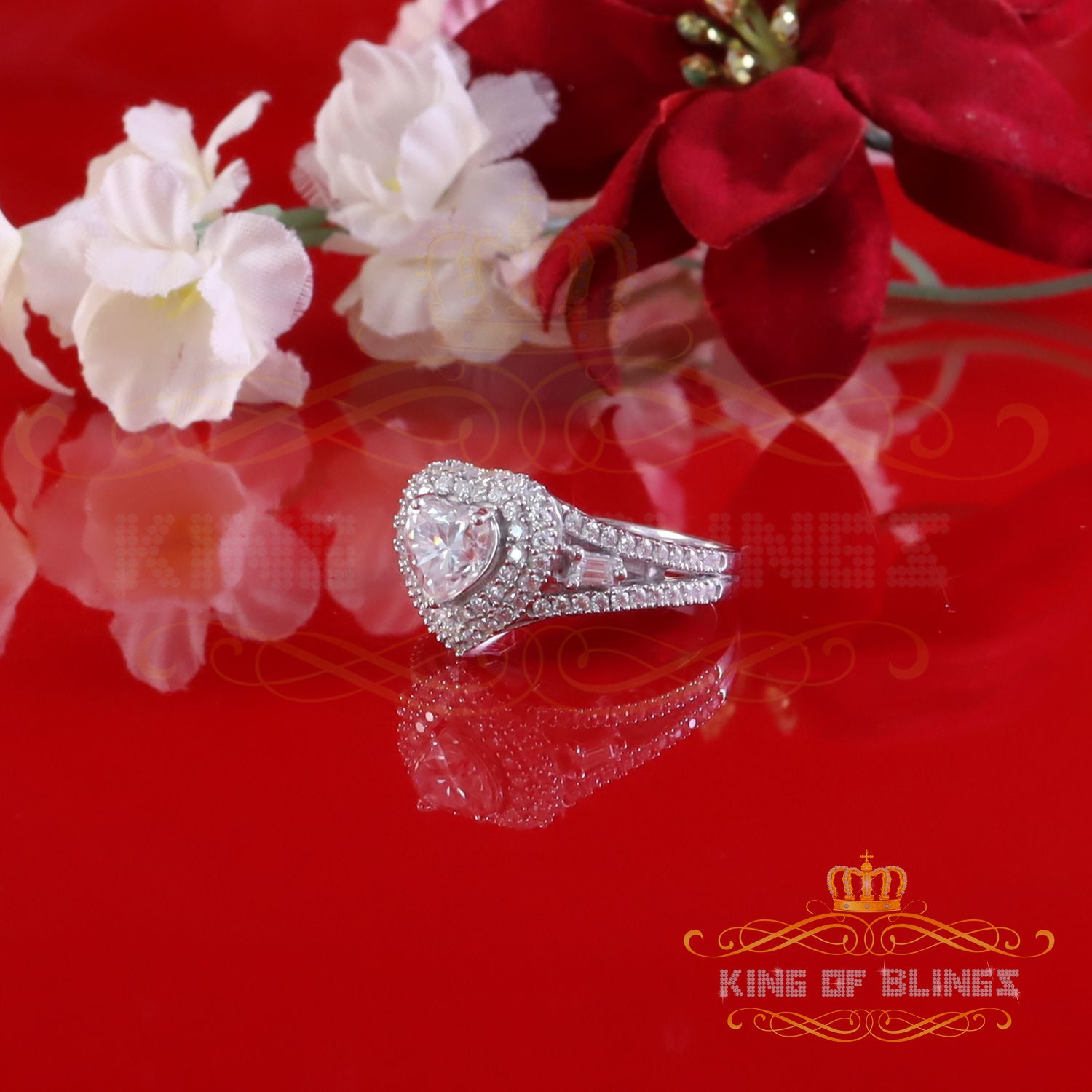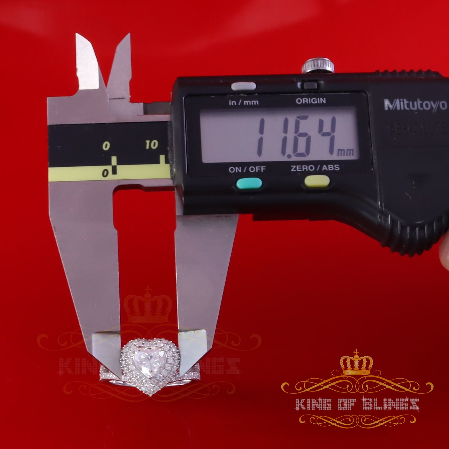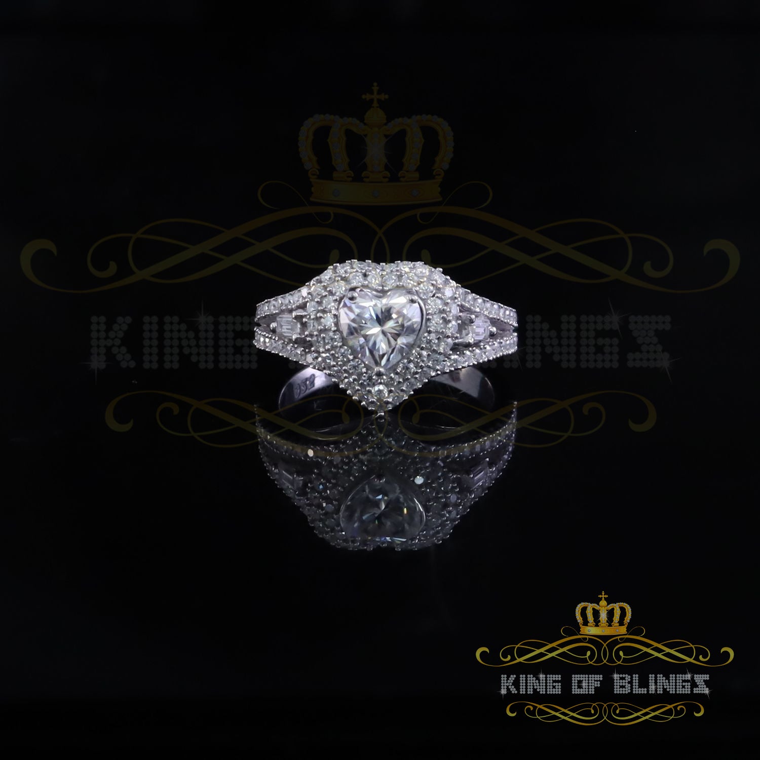 King of Bling's Heart Ring Size7 for Women White Silver 1.50ct VVS D with HEART Moissanite Stone