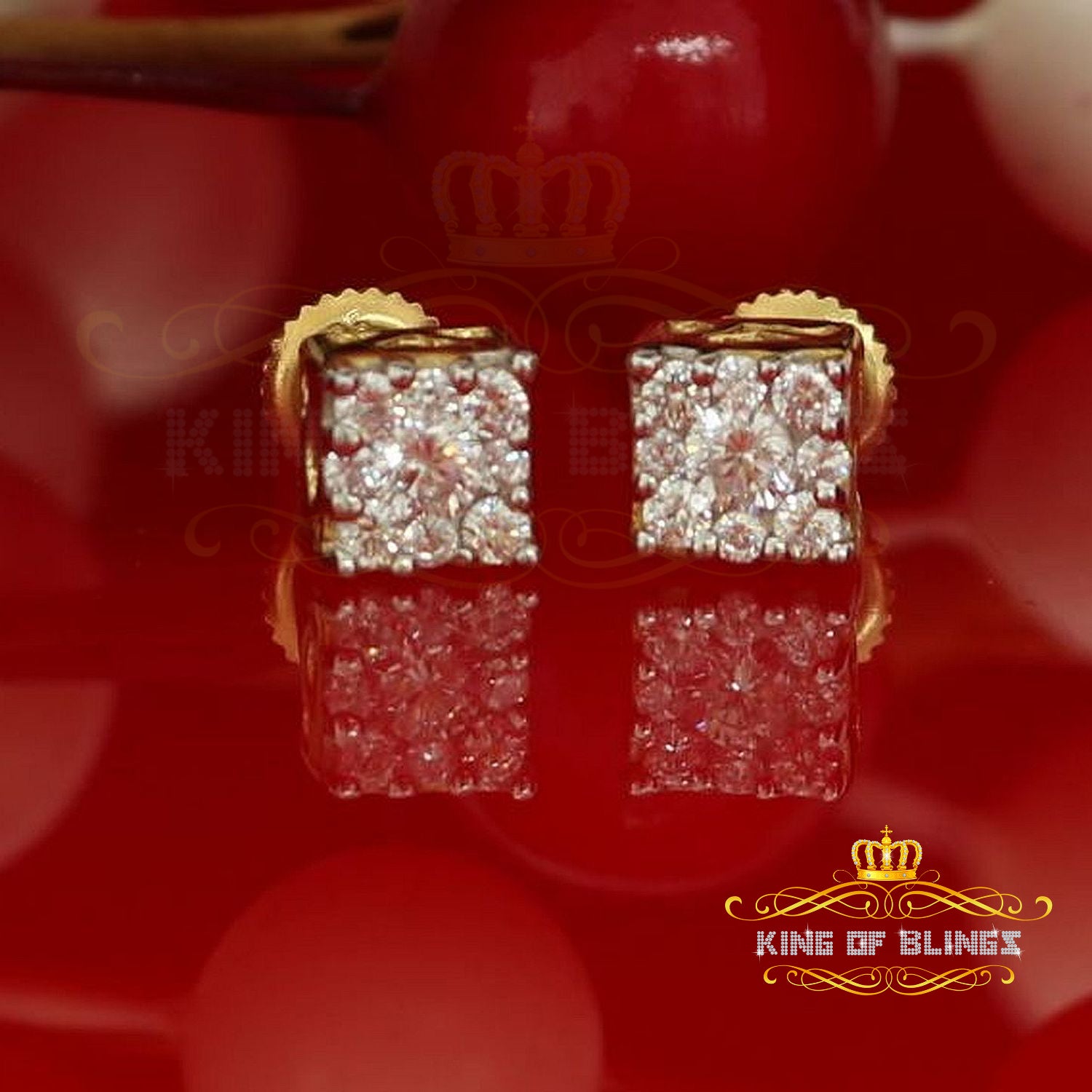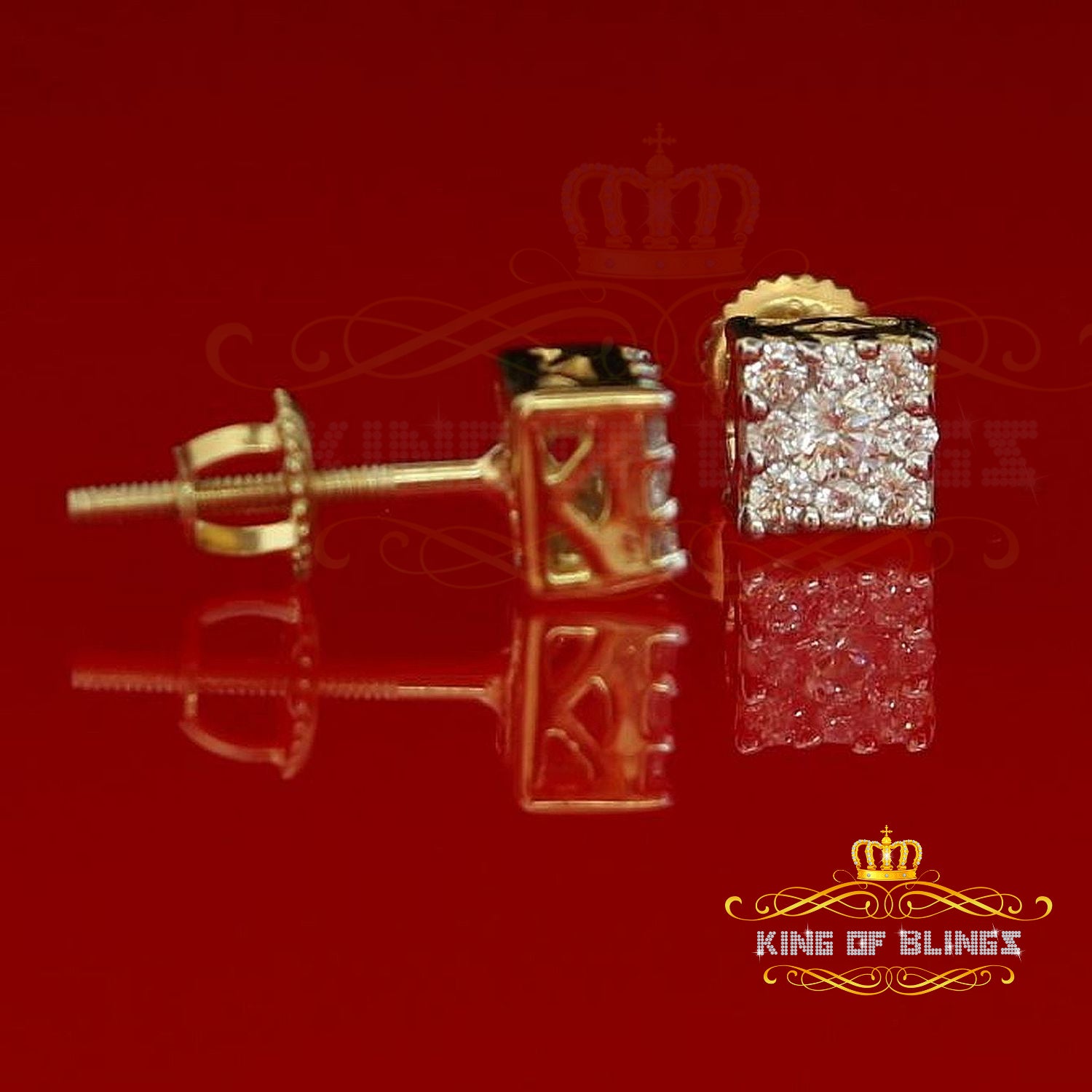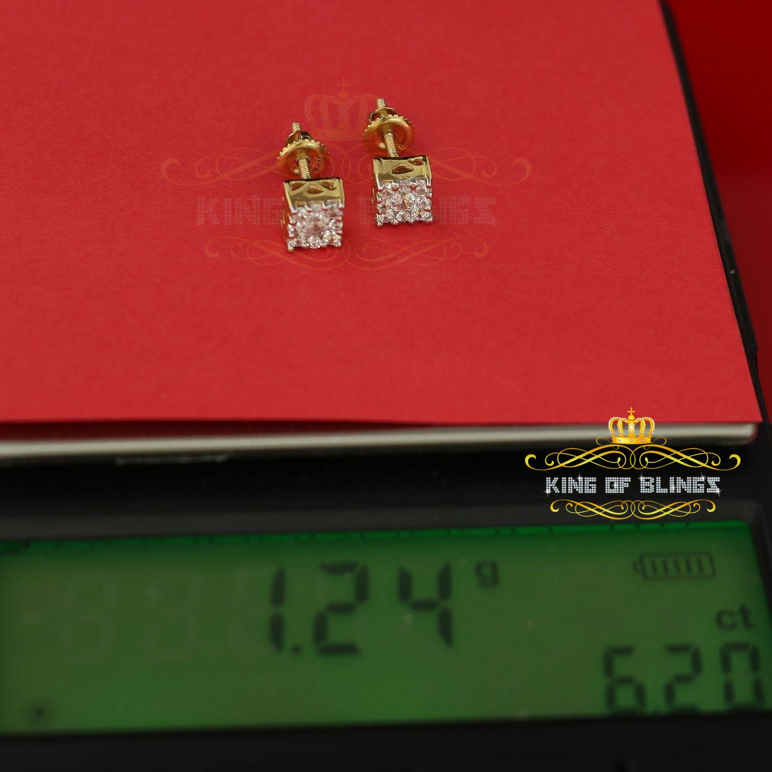 King of Bling's Hip Hop 925 Yellow Silver 0.6ct Cubic Zirconia Women's & Men's Square Earrings