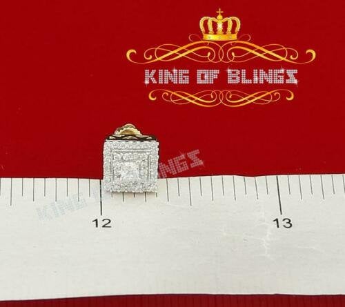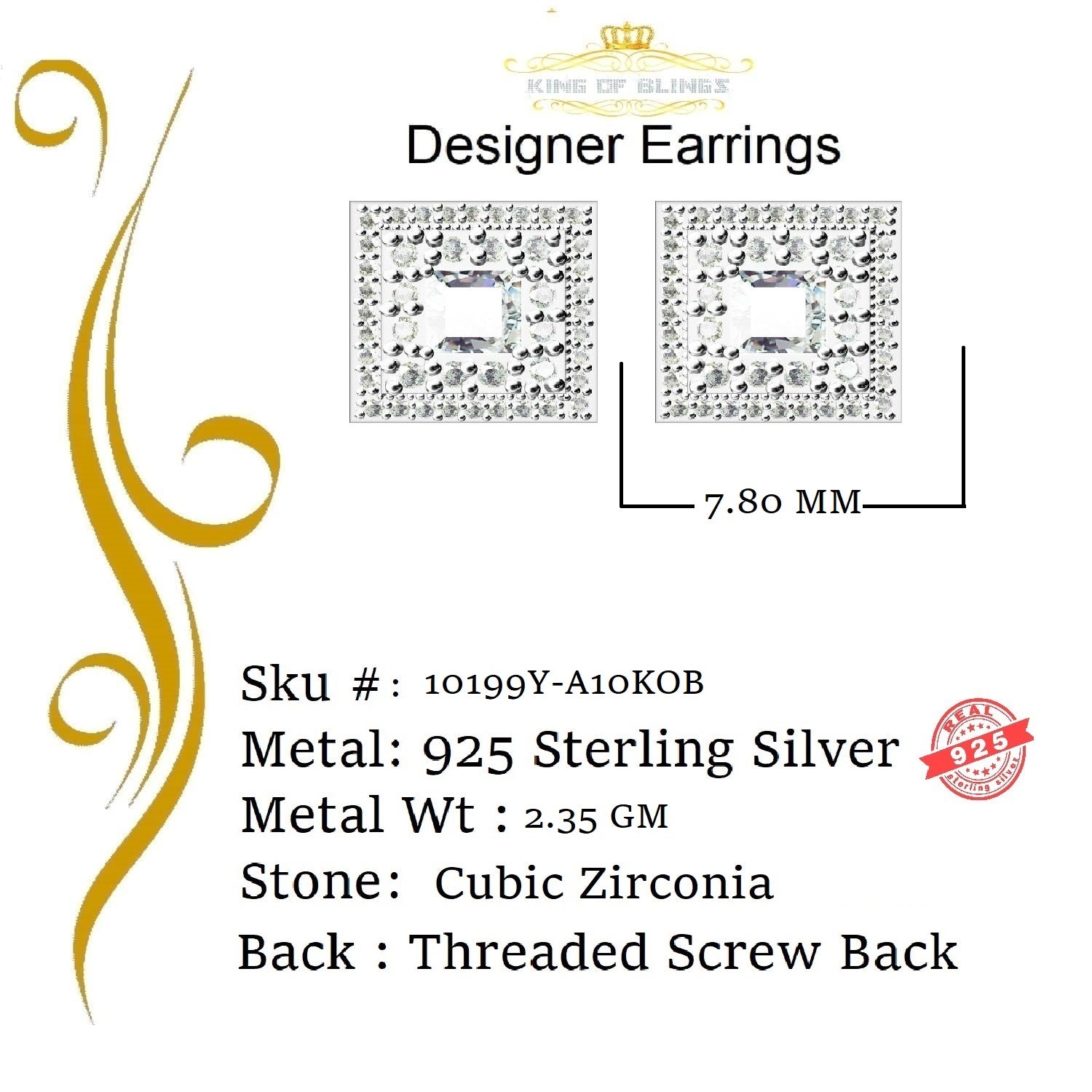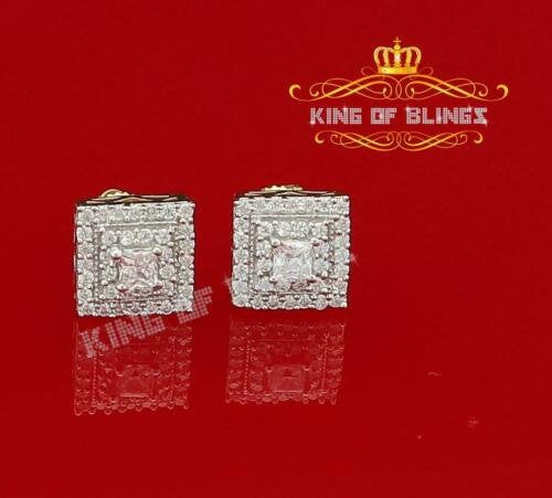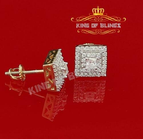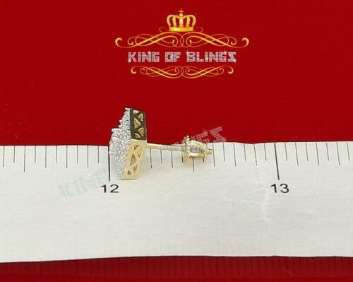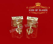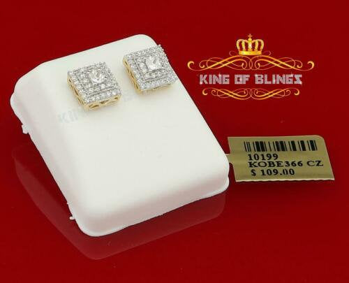 King of Bling's Hip Hop 925 Yellow Silver 1.12ct Cubic Zirconia Women's & Men's Square Earrings