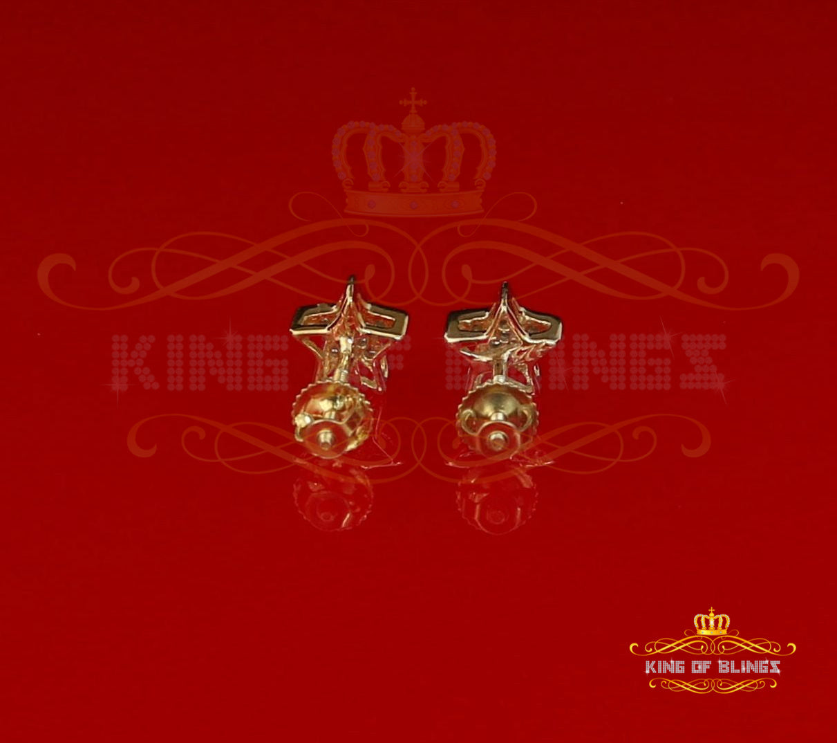 King of Bling's Hip Hop Yellow Silver Screw 0.22ct Cubic Zirconia Women's & Men's Star Earrings