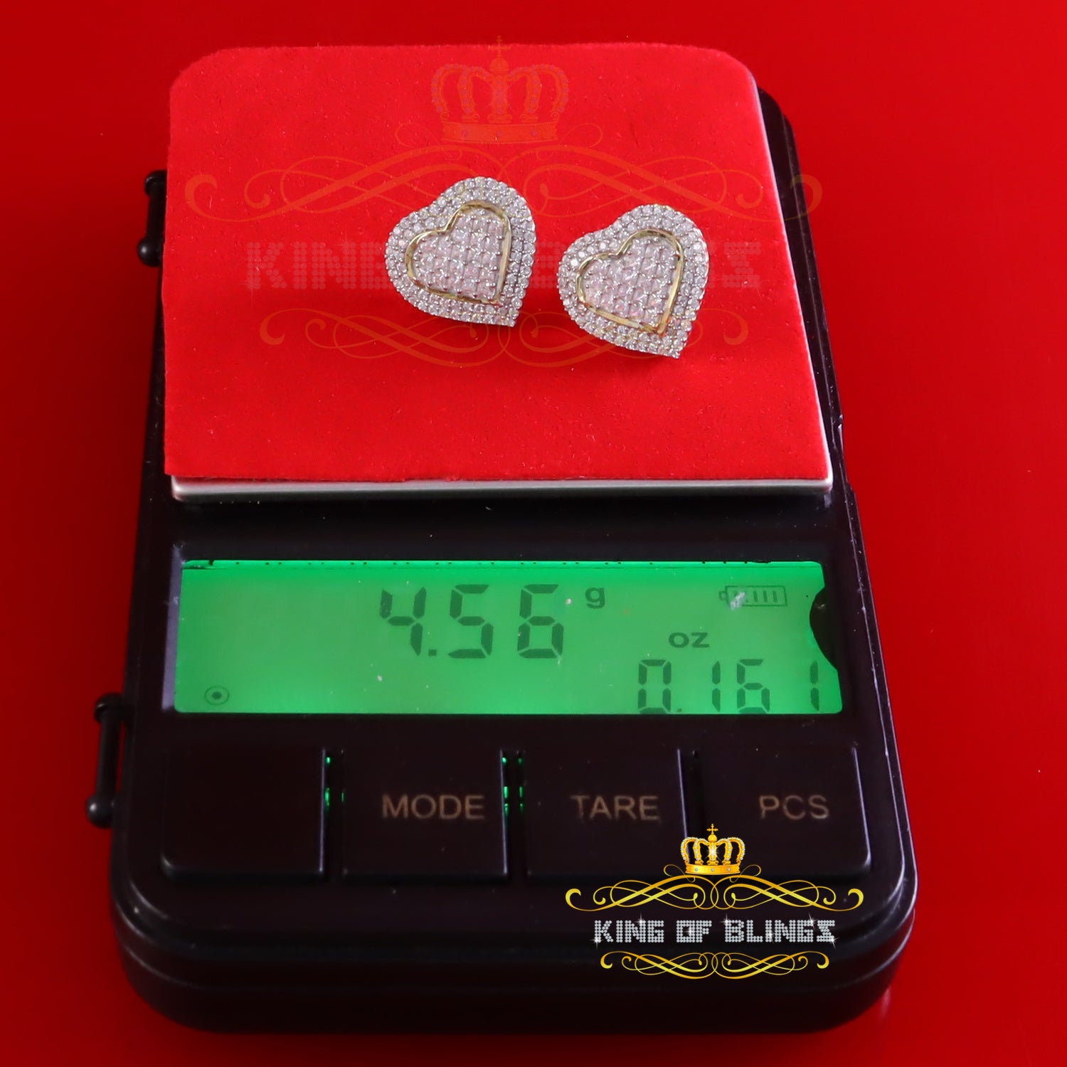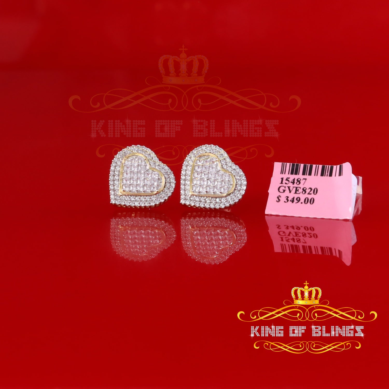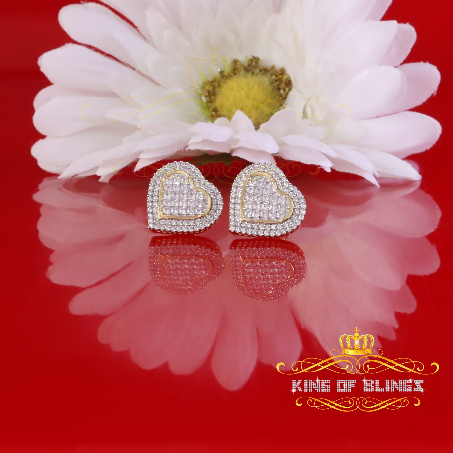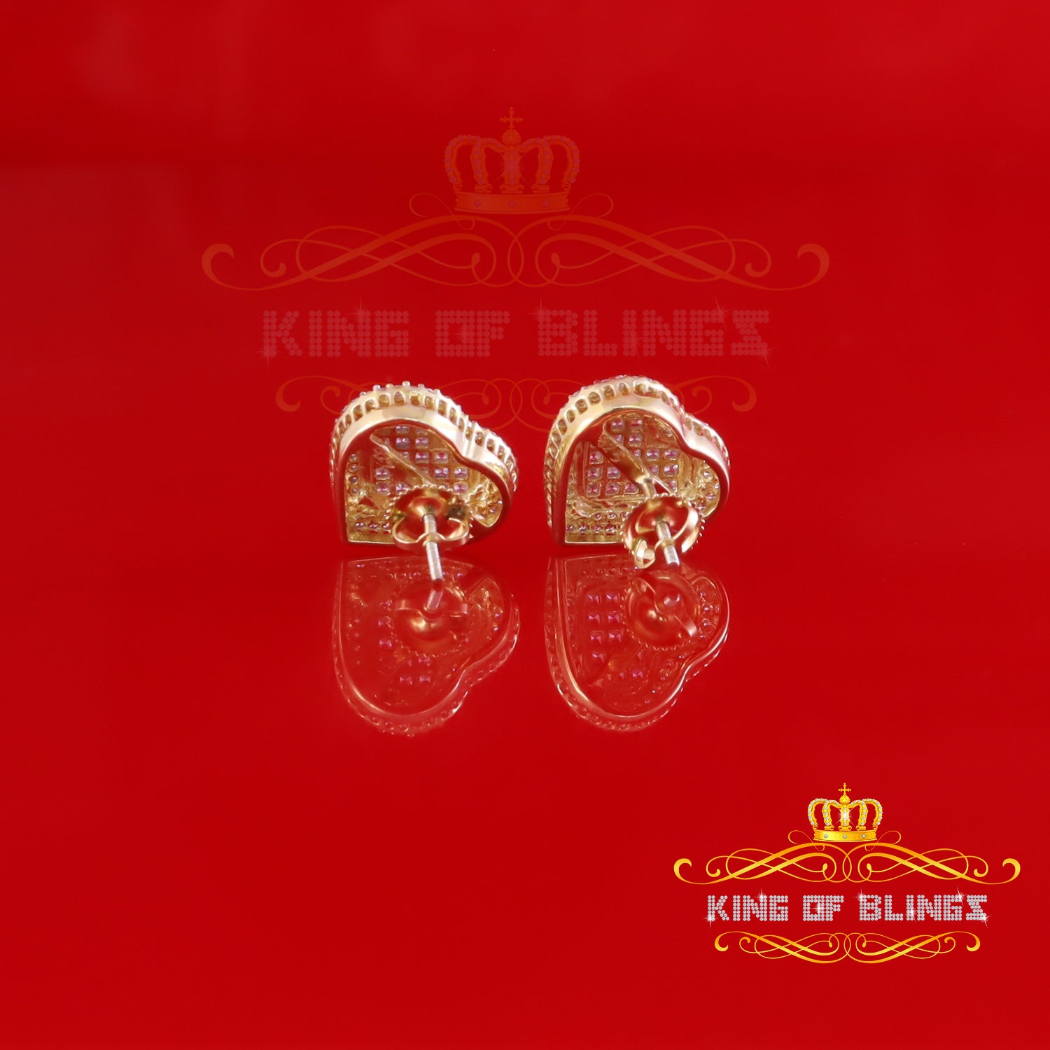 King of Bling's HIp Hop Yellow Sterling Silver Women's & Men 1.44ct Cubic Zirconia Heart Earring