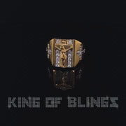 King Of Bling's Jesus Design Yellow Cubic Zirconia 0.45ct Men's Adjustable Ring From SZ 9 to 11