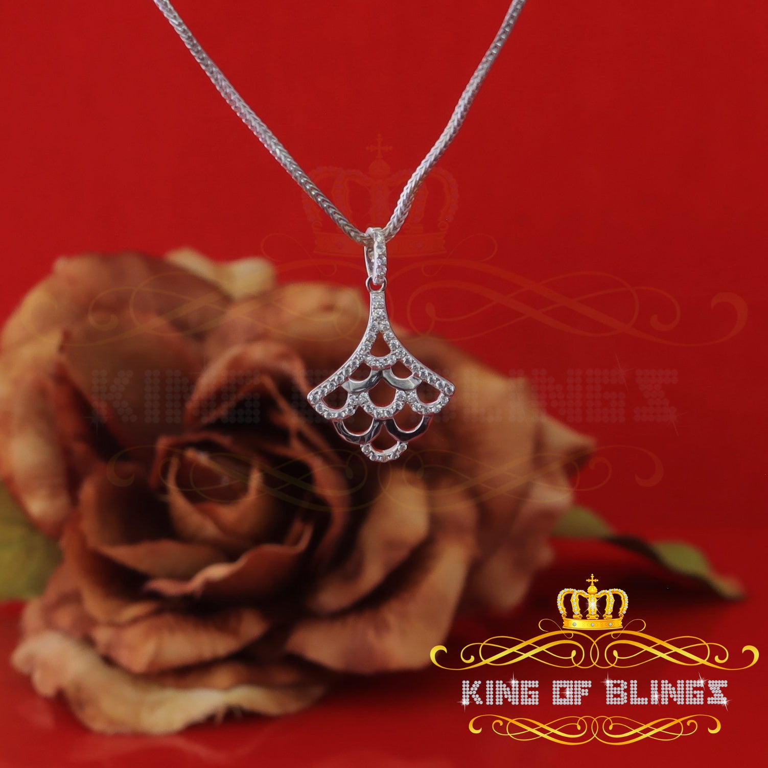 King Of Bling's King of Bling's White Sterling Silver Charming Necklace Pendant Cubic Zirconia