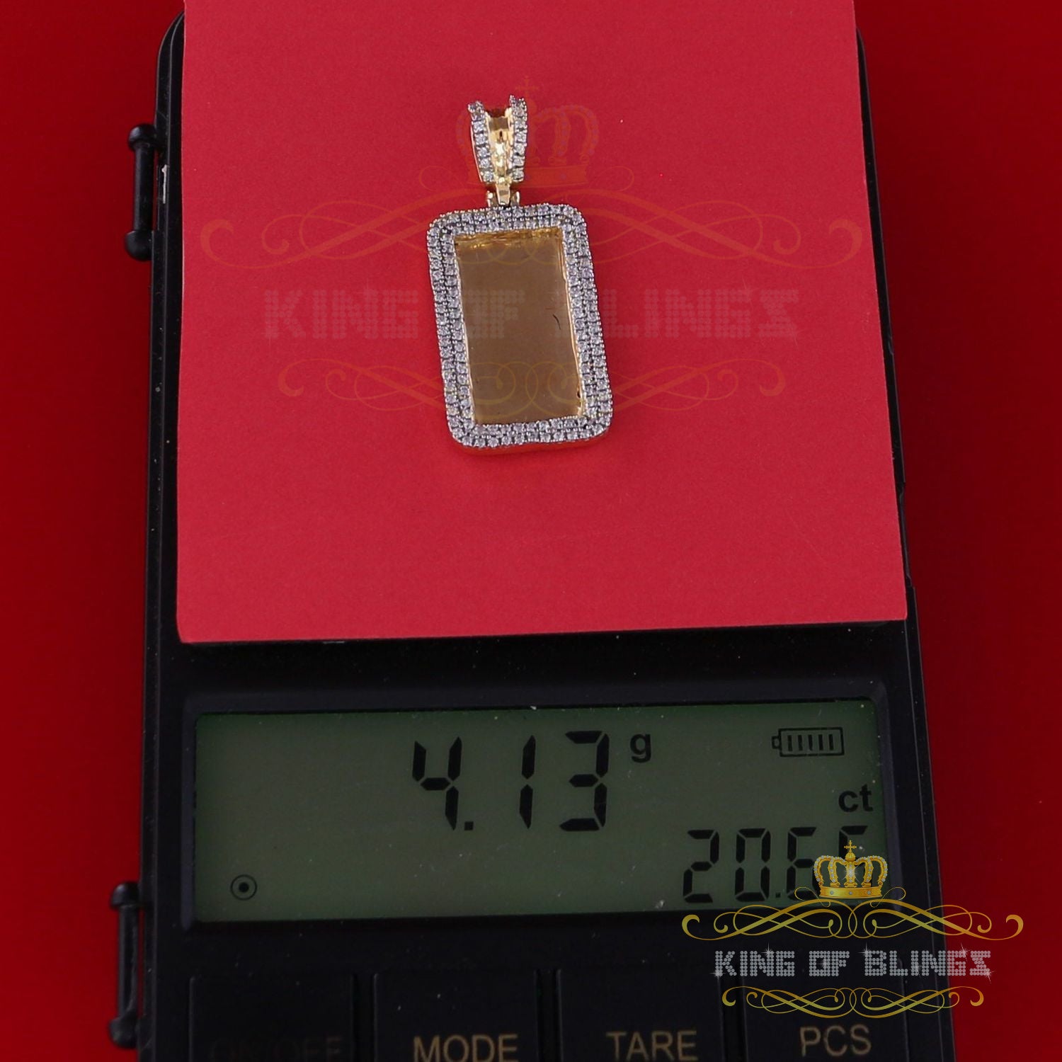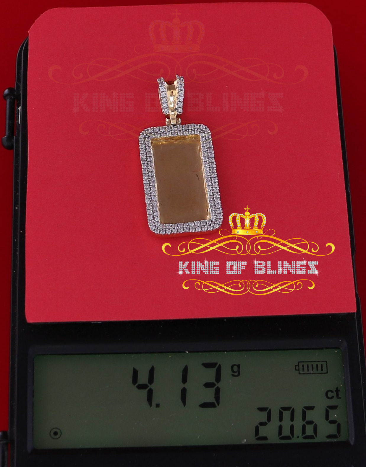 Special memories are never to be forgotten with this personalized and engravable diamond frame medallion photo pendant. Handcrafted, customized photo pendant brings a unique way to honor your loved ones, relatives and friends by allowing you to hold their memories with you in every moment. Your picture will be cropped to fit perfectly into the image area, covered by a protective glass bubble that allows you to see the image from all angles with a reflecting 3D effect. This pendant Made in 925 Yellow Silver got 4.13 gm and Sparkling AAA grade Cubic Zircon weight 1.32ct makes for the perfect holiday gift. A unique way to express your love.