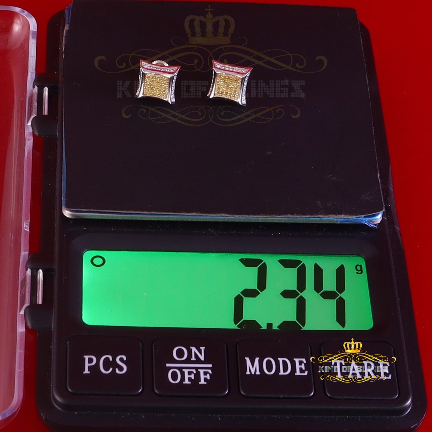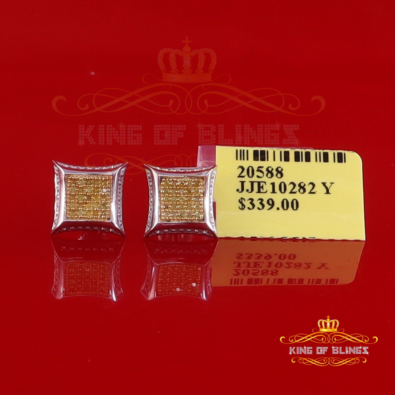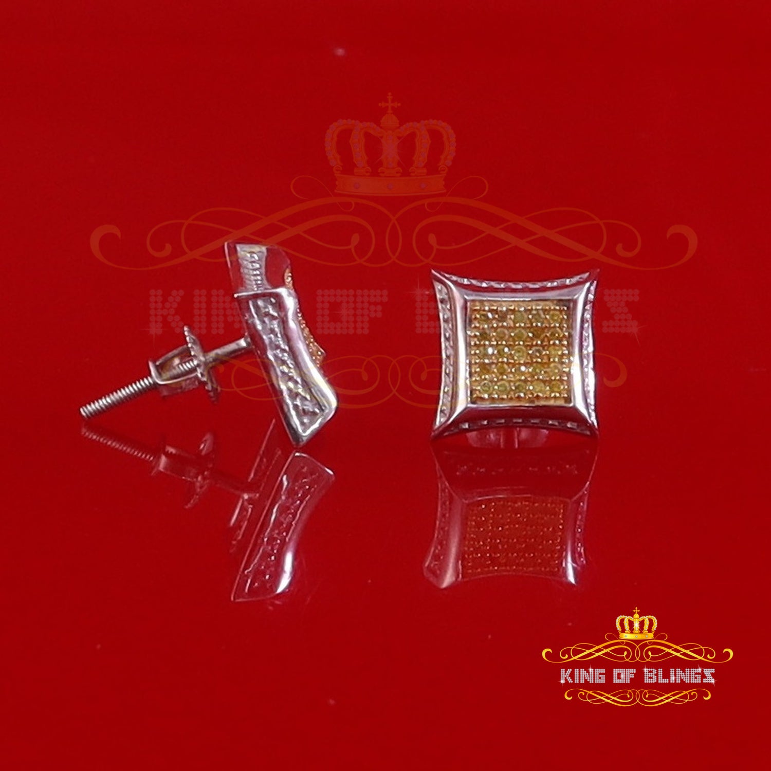 King Of Bling's Kite Shape 0.15ct Genuine Yellow Diamond 3D Earring 925 Sterling White Silver