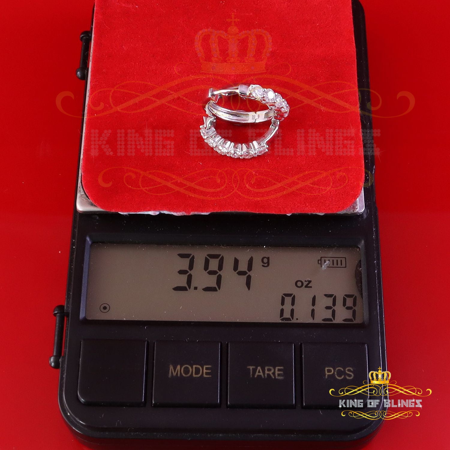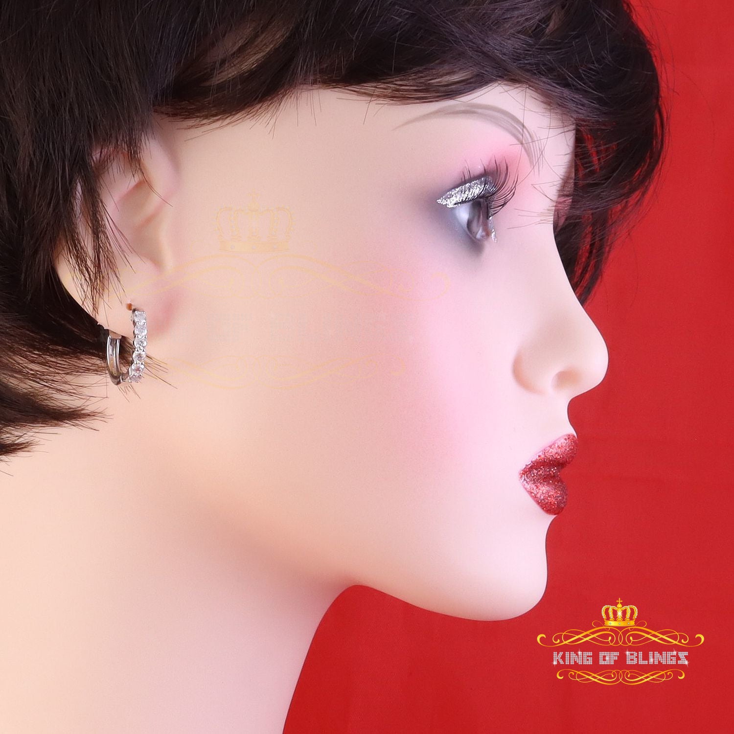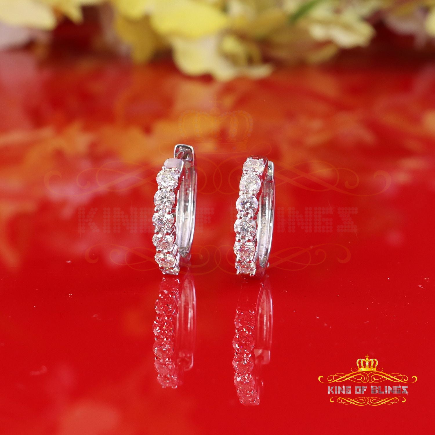 King of Bling's Women's 925 Silver 1.50ct VVS 'D' Moissanite 1 row Stones Hoop Earrings