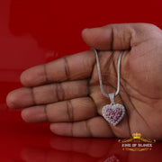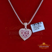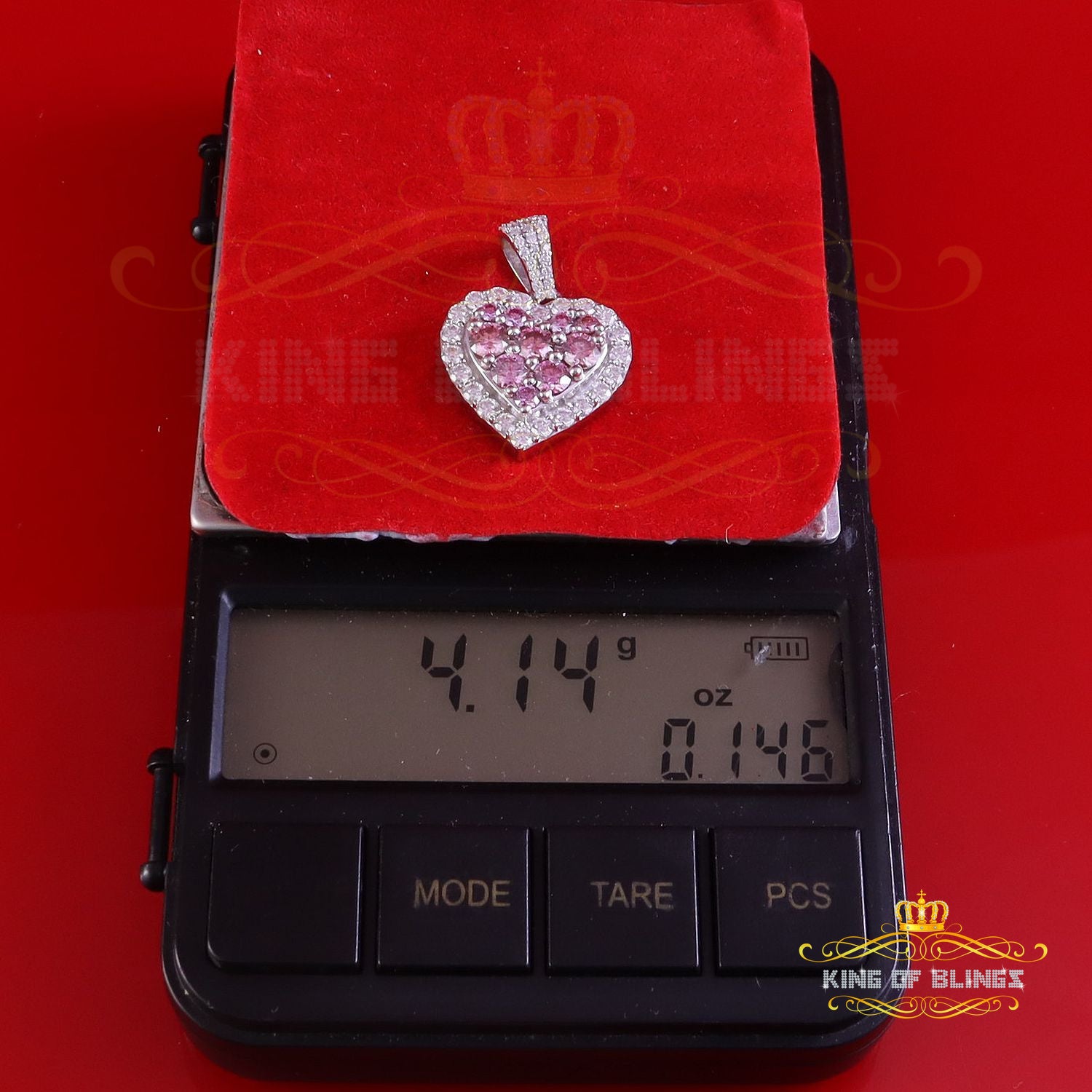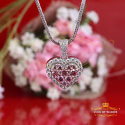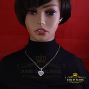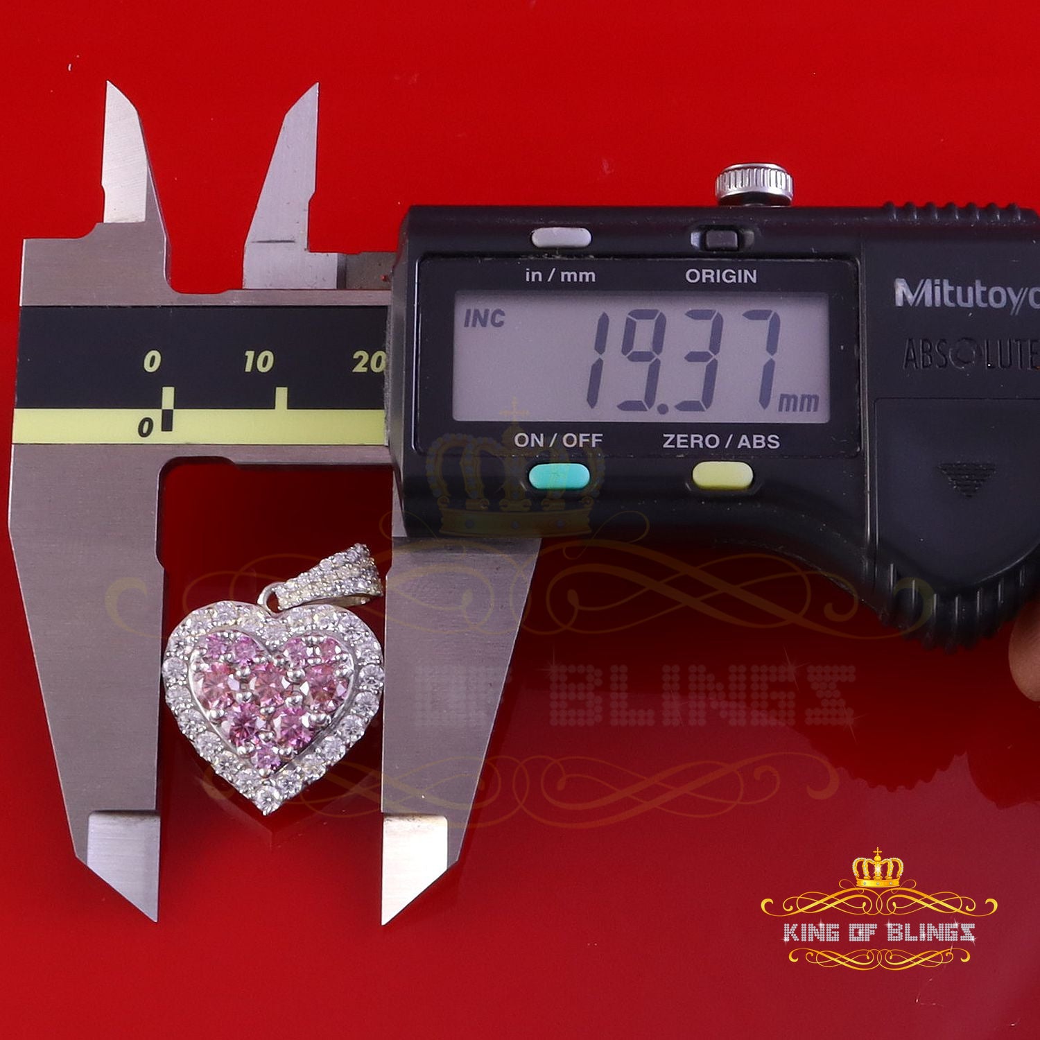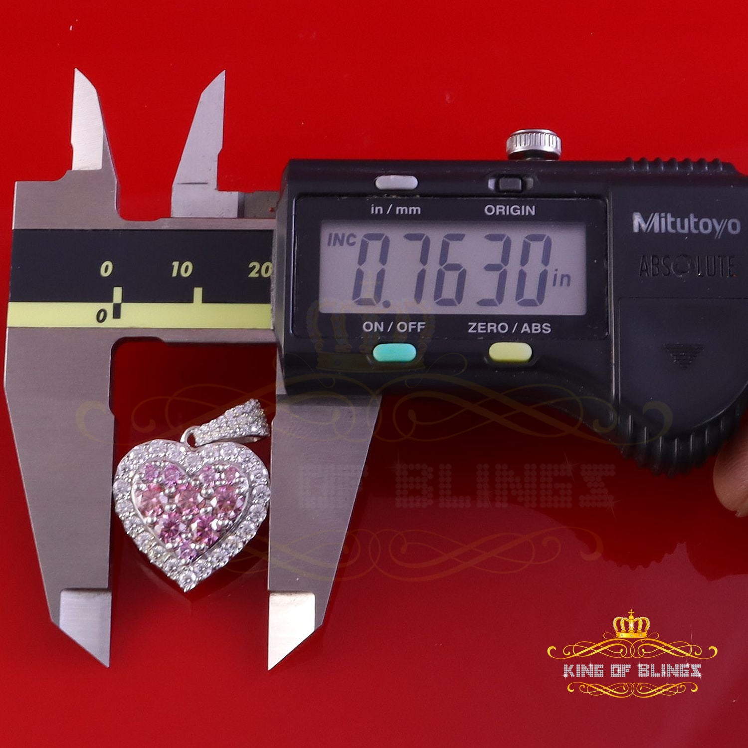King Of Bling's New Men's/Women's 925 Silver White 3.00ct VVS D Pink Moissanite Heart 3D Pendant