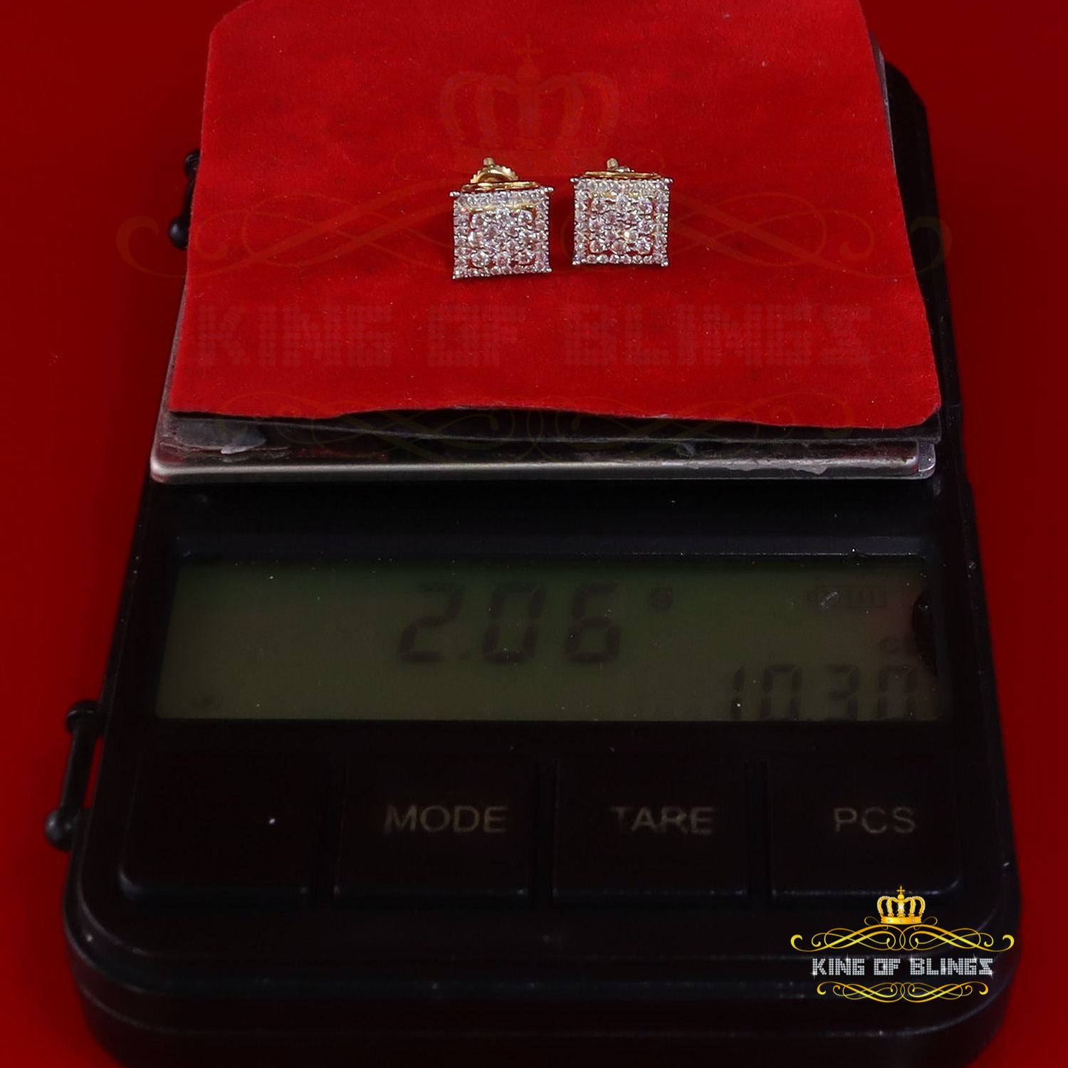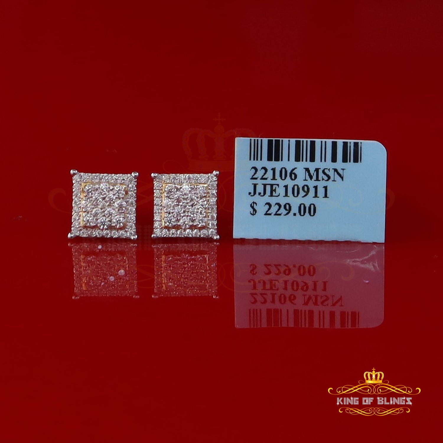 King of Bling's Men's/Womens 925 Silver Yellow 0.55ct VVS 'D' Moissanite Square Stud Earrings