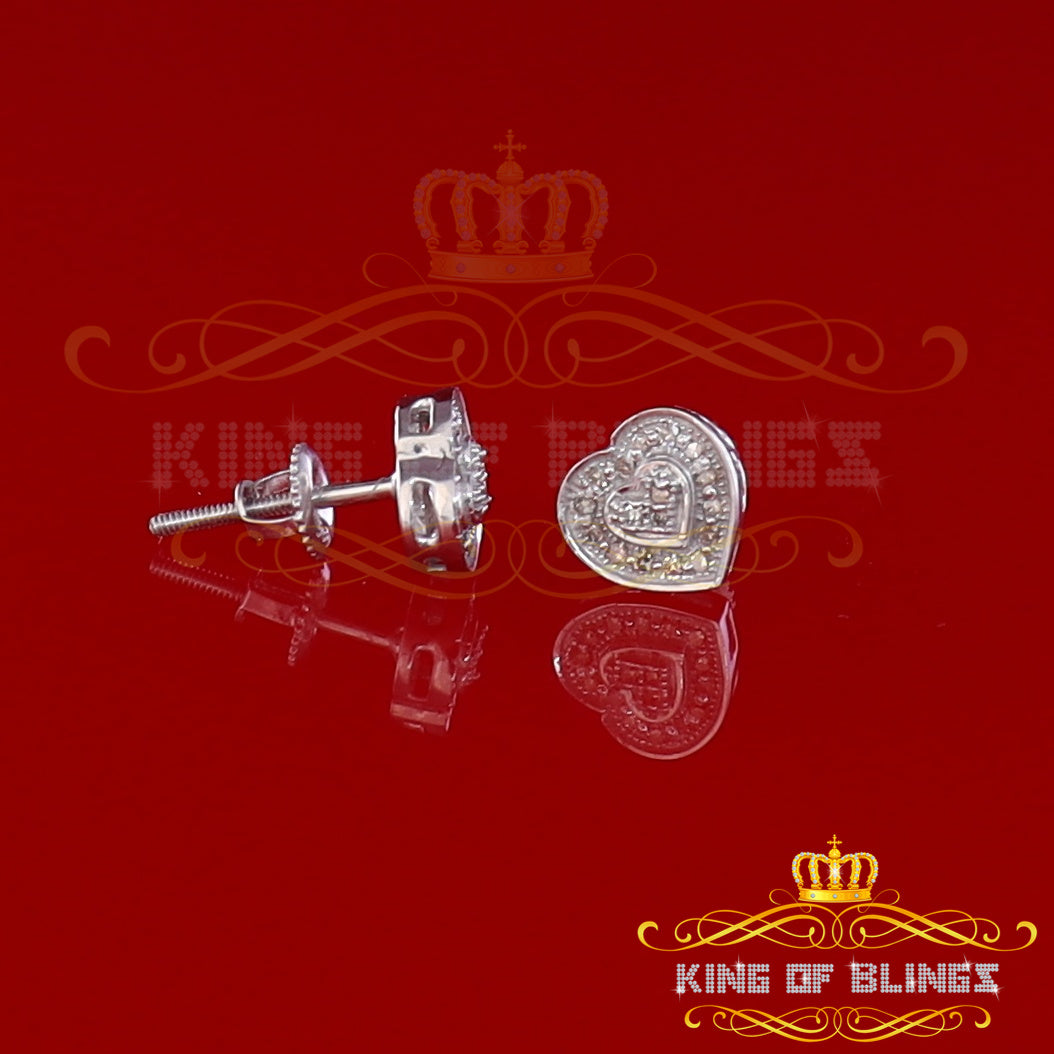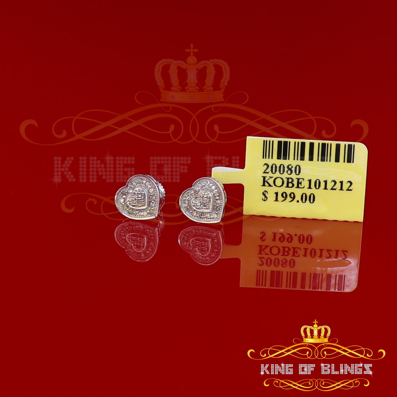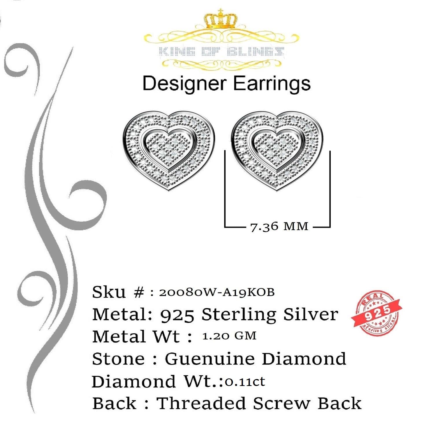 King Of Bling's Micro Pave 0.11ct Real Diamonds 925 White Silver Women's & Men's Heart Earrings