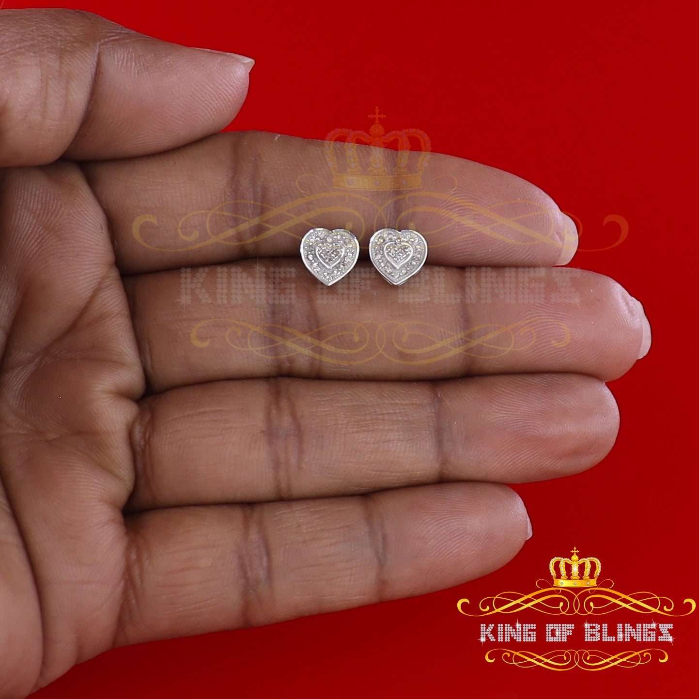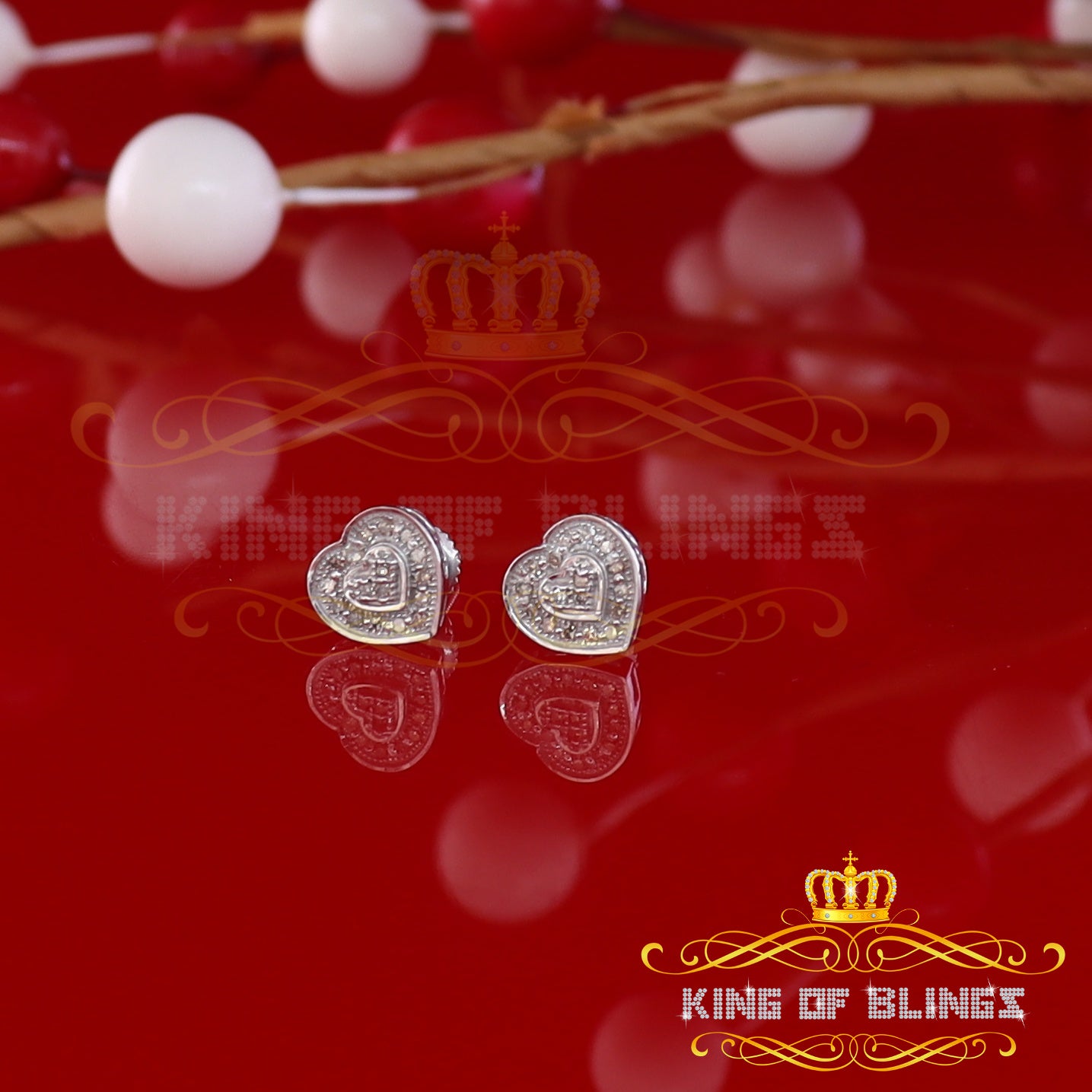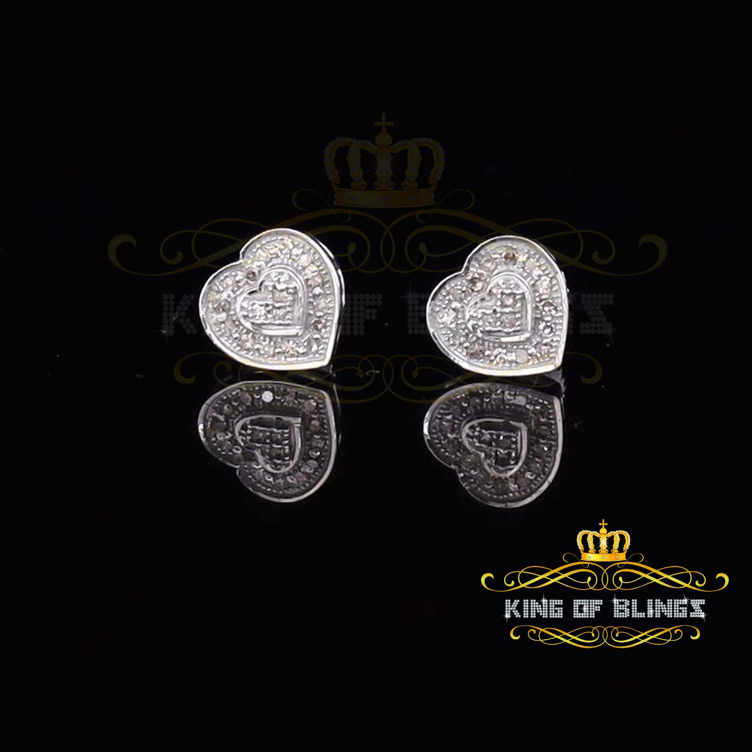King Of Bling's Micro Pave 0.11ct Real Diamonds 925 White Silver Women's & Men's Heart Earrings
