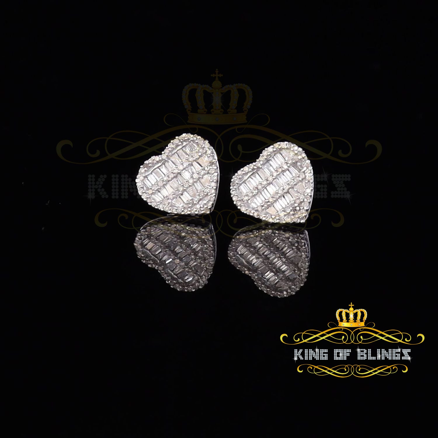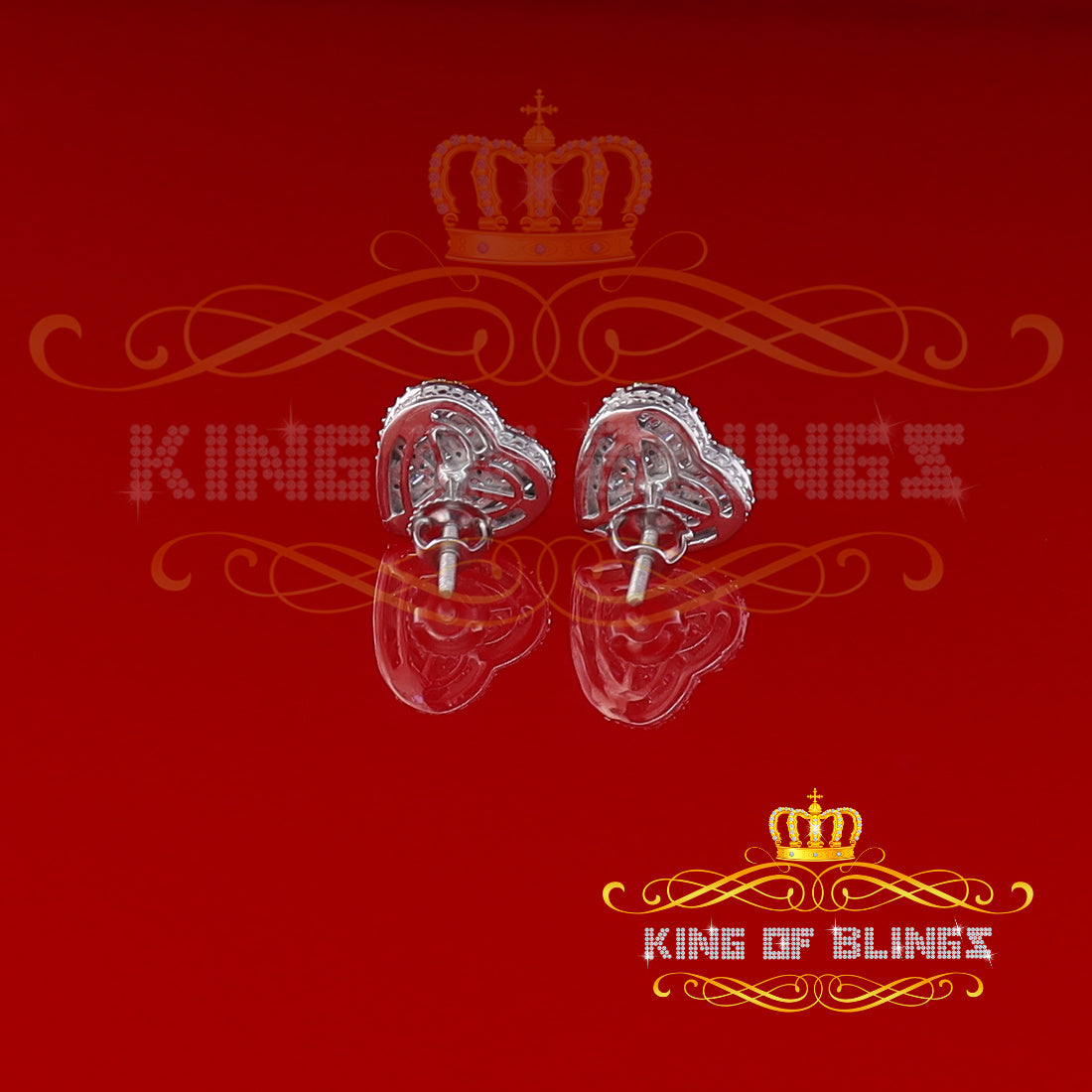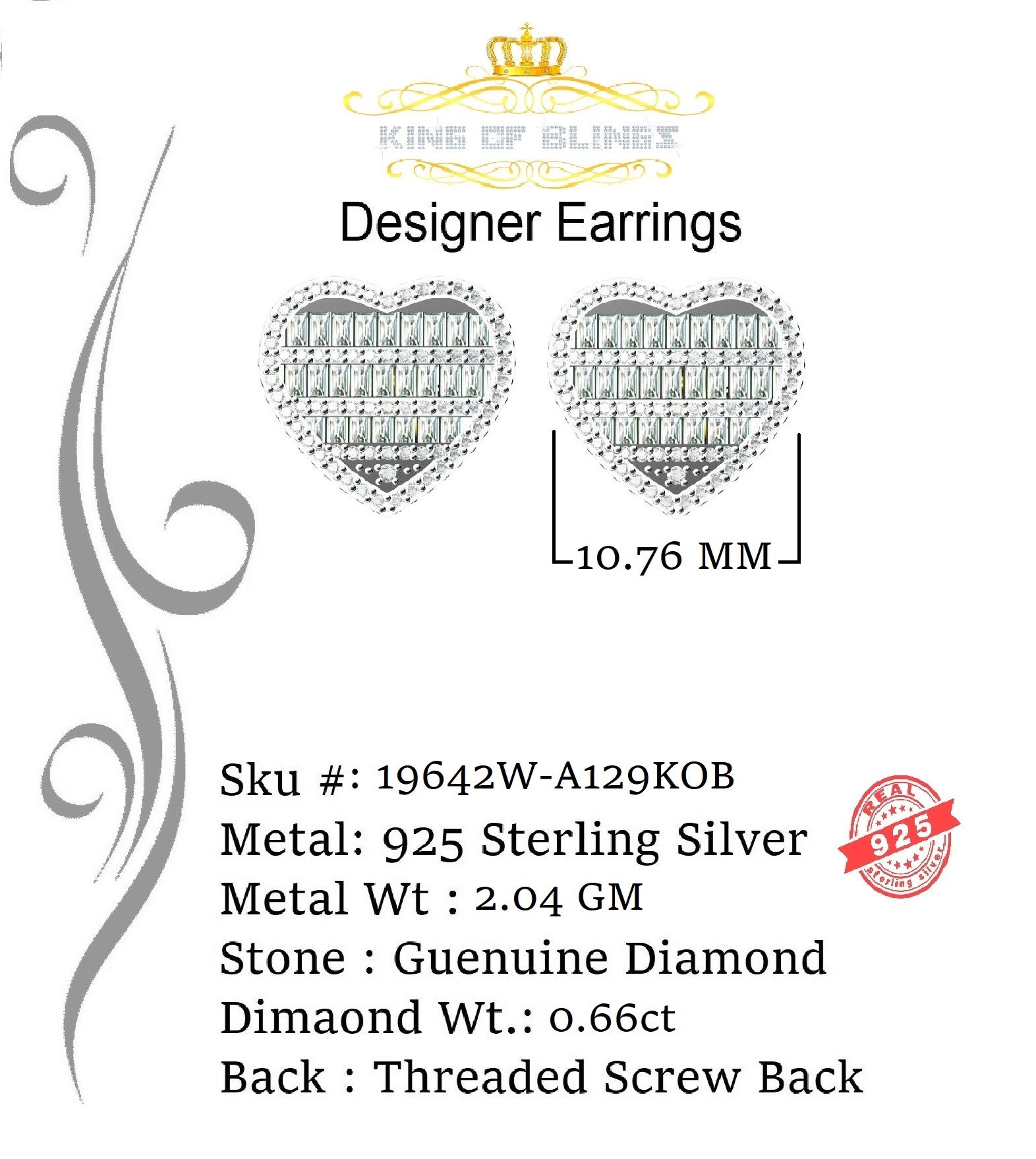 King Of Bling's Micro Pave Heart 0.66ct Real Diamonds 925 White Silver Women's & Men's Earrings