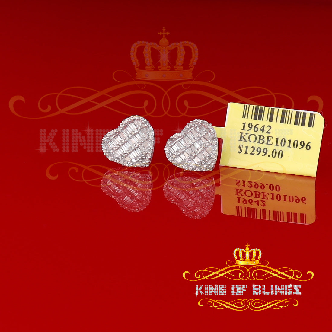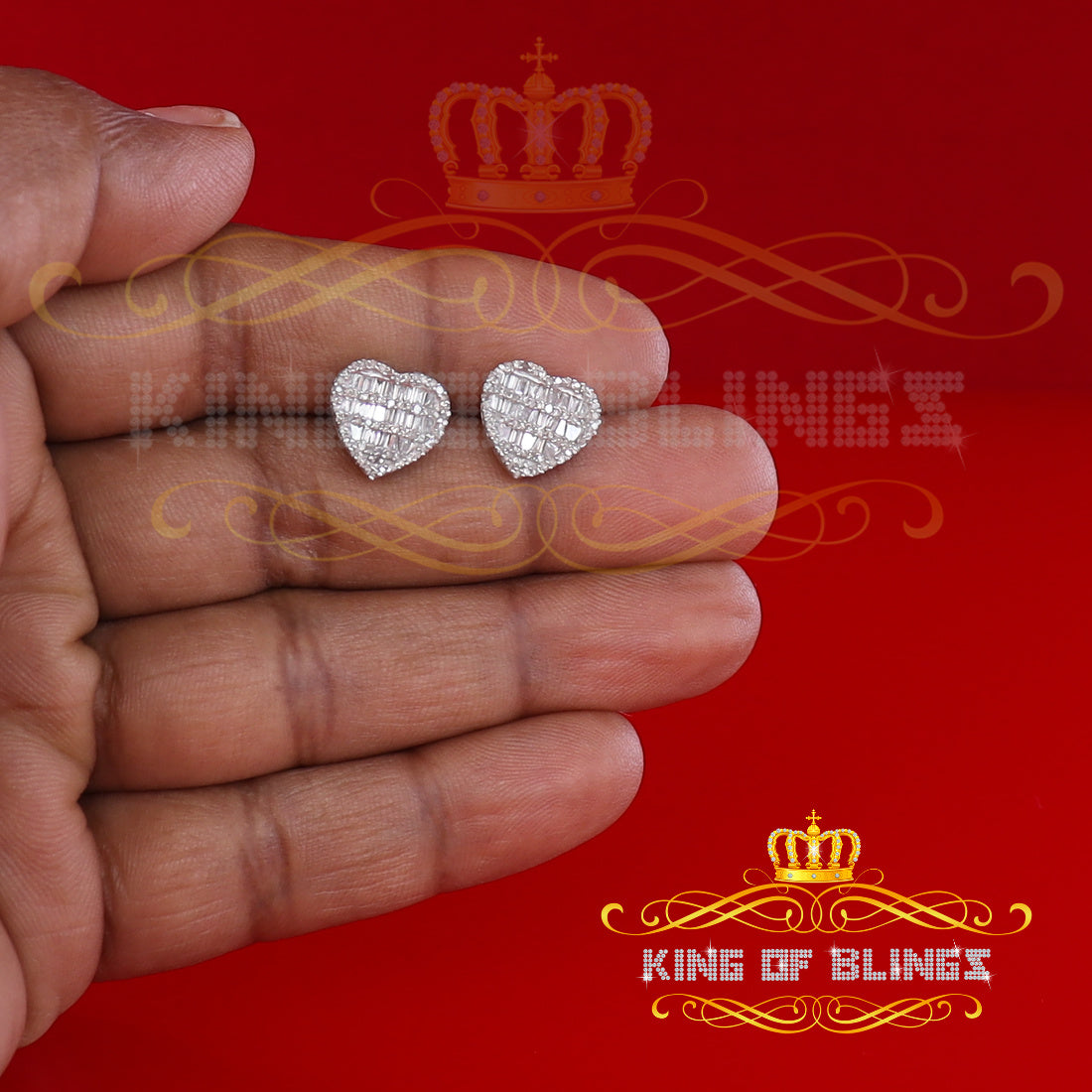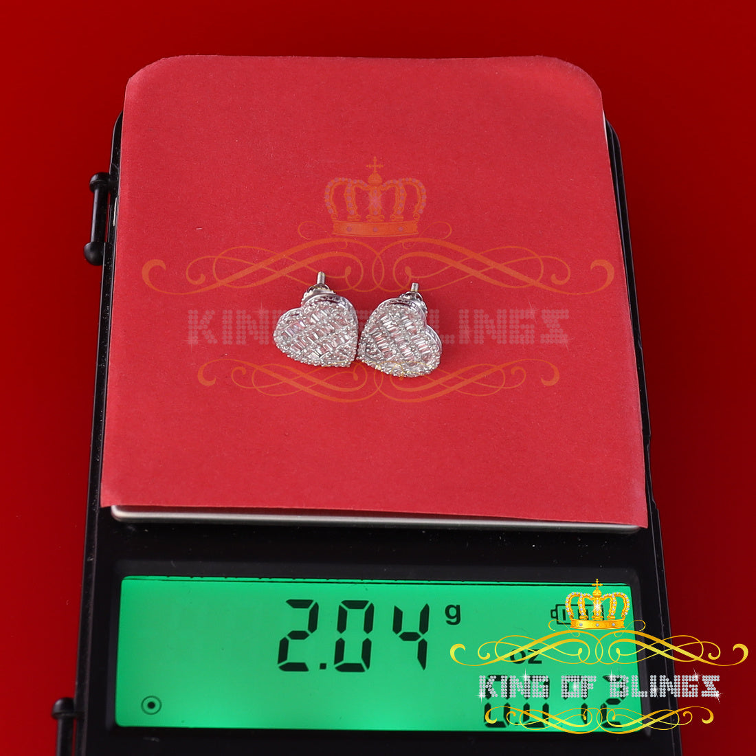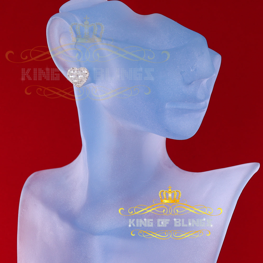 King Of Bling's Micro Pave Heart 0.66ct Real Diamonds 925 White Silver Women's & Men's Earrings