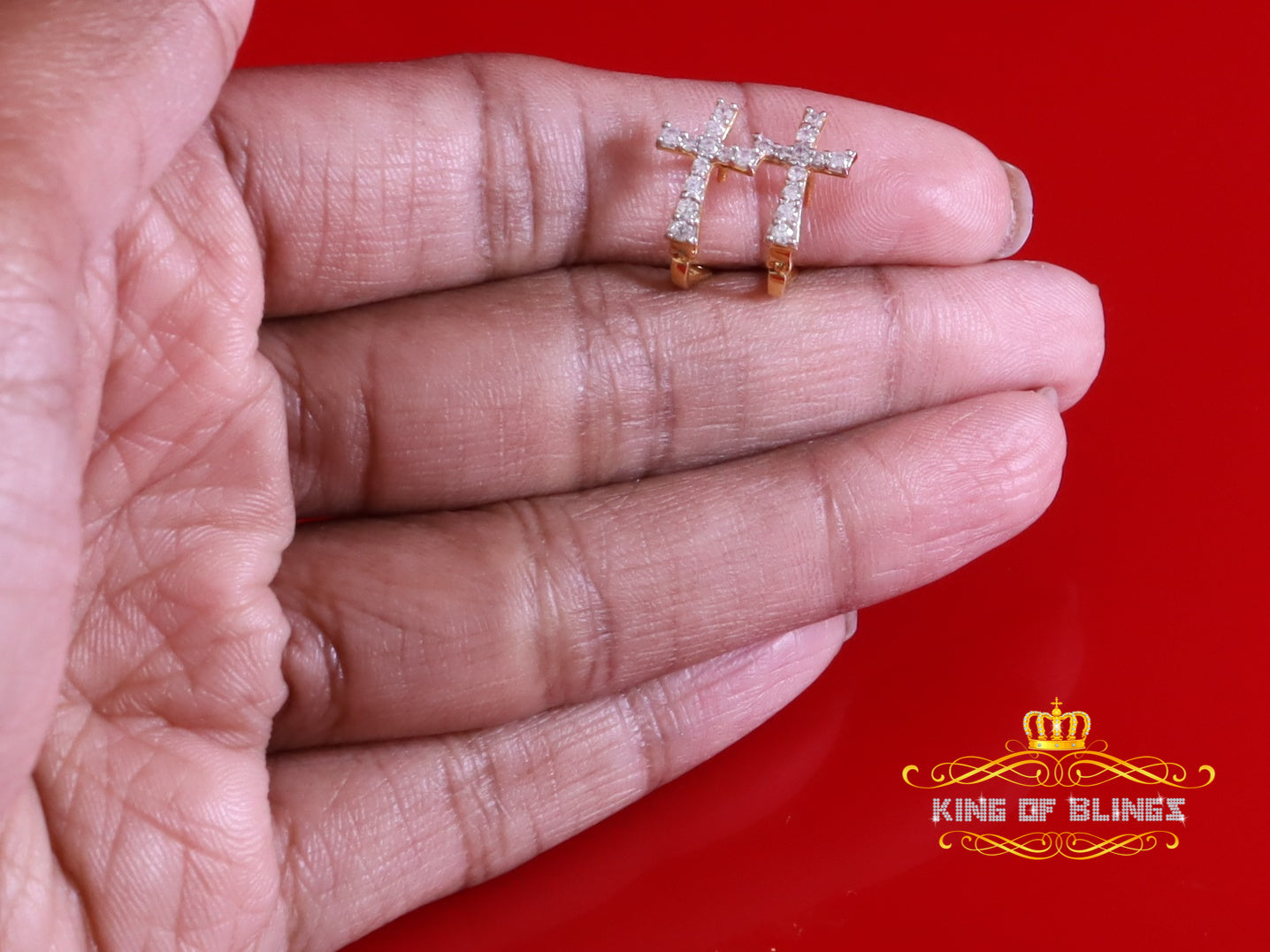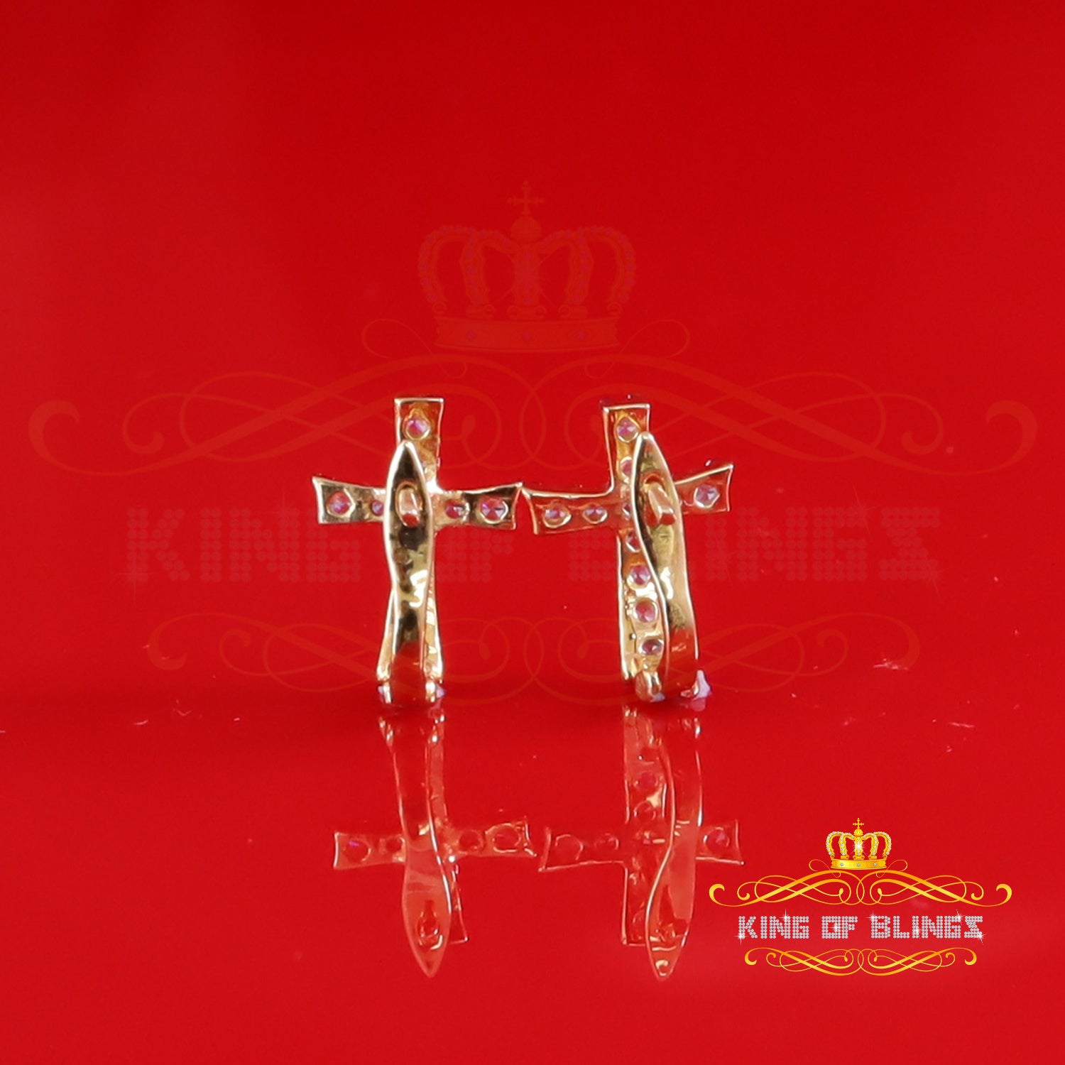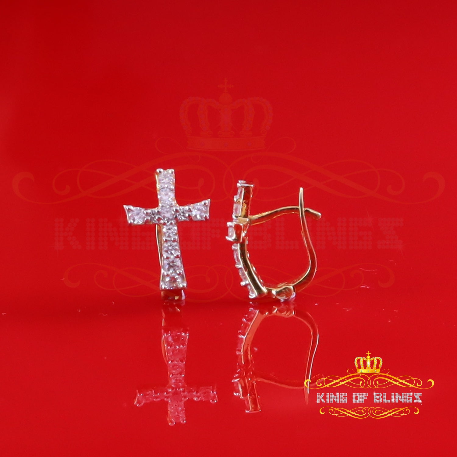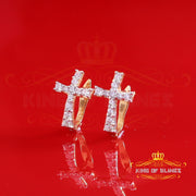 King of Bling's Moissanite 925 Silver Round Yellow Hip Hop Cross Stud Earring Men's/Women's