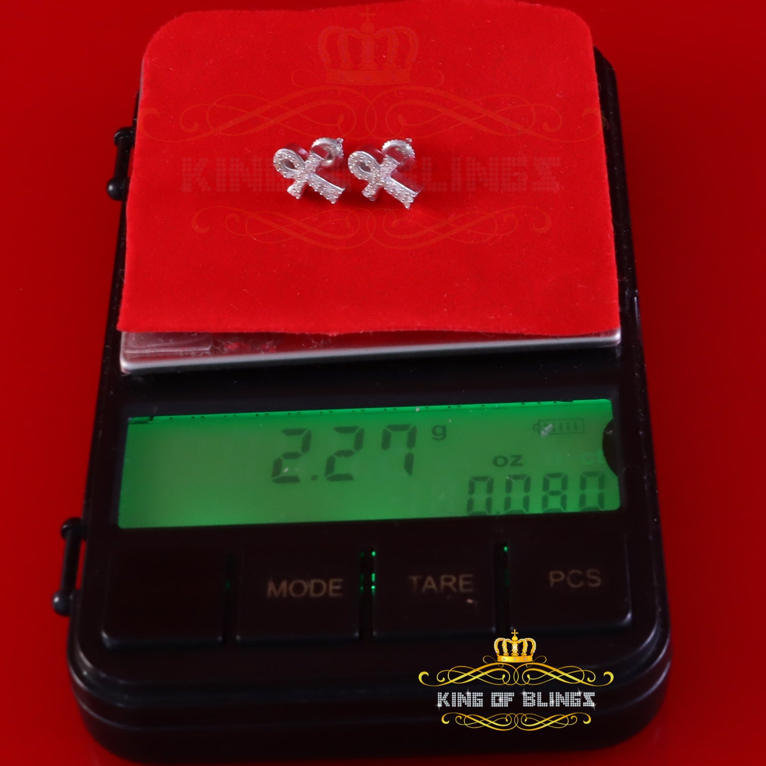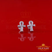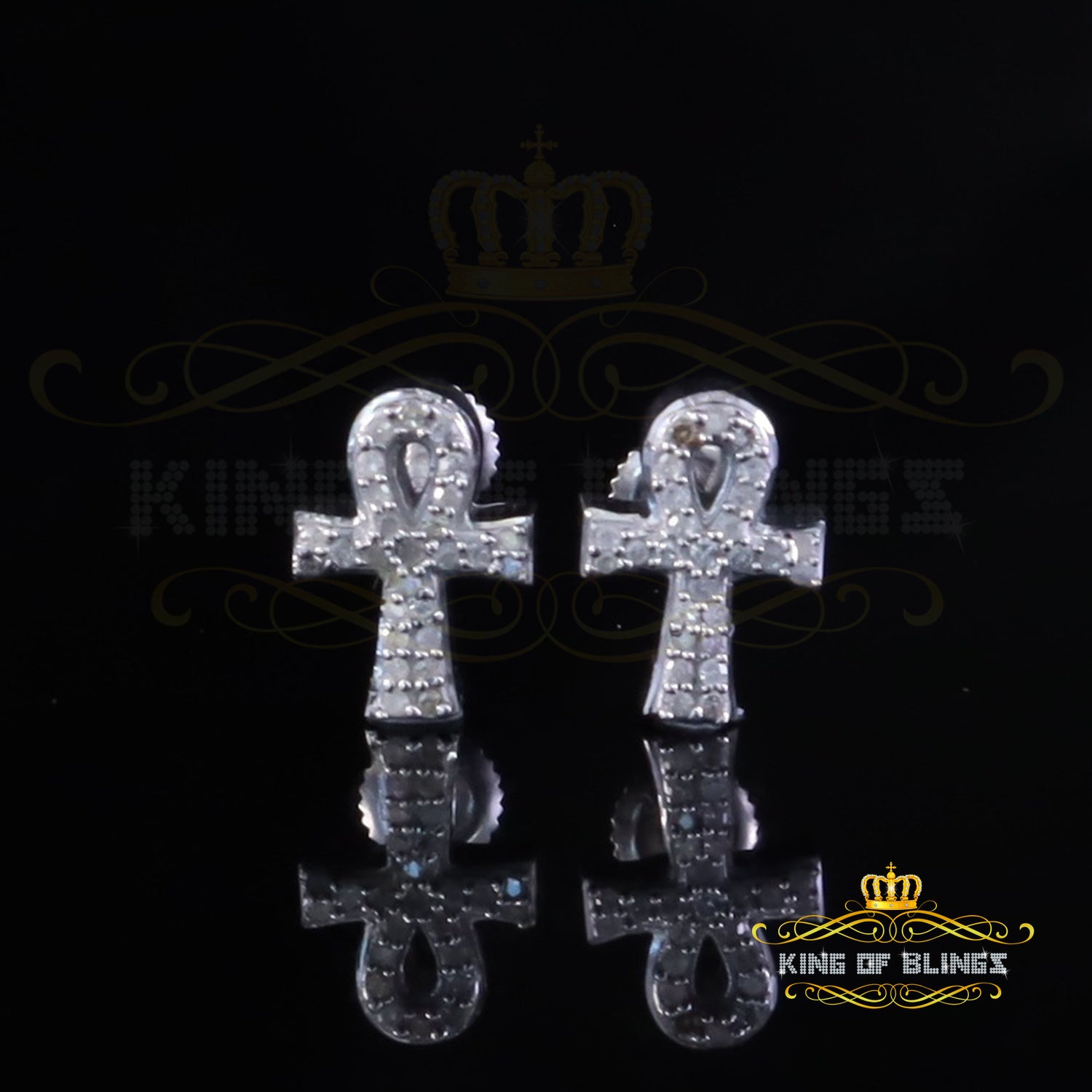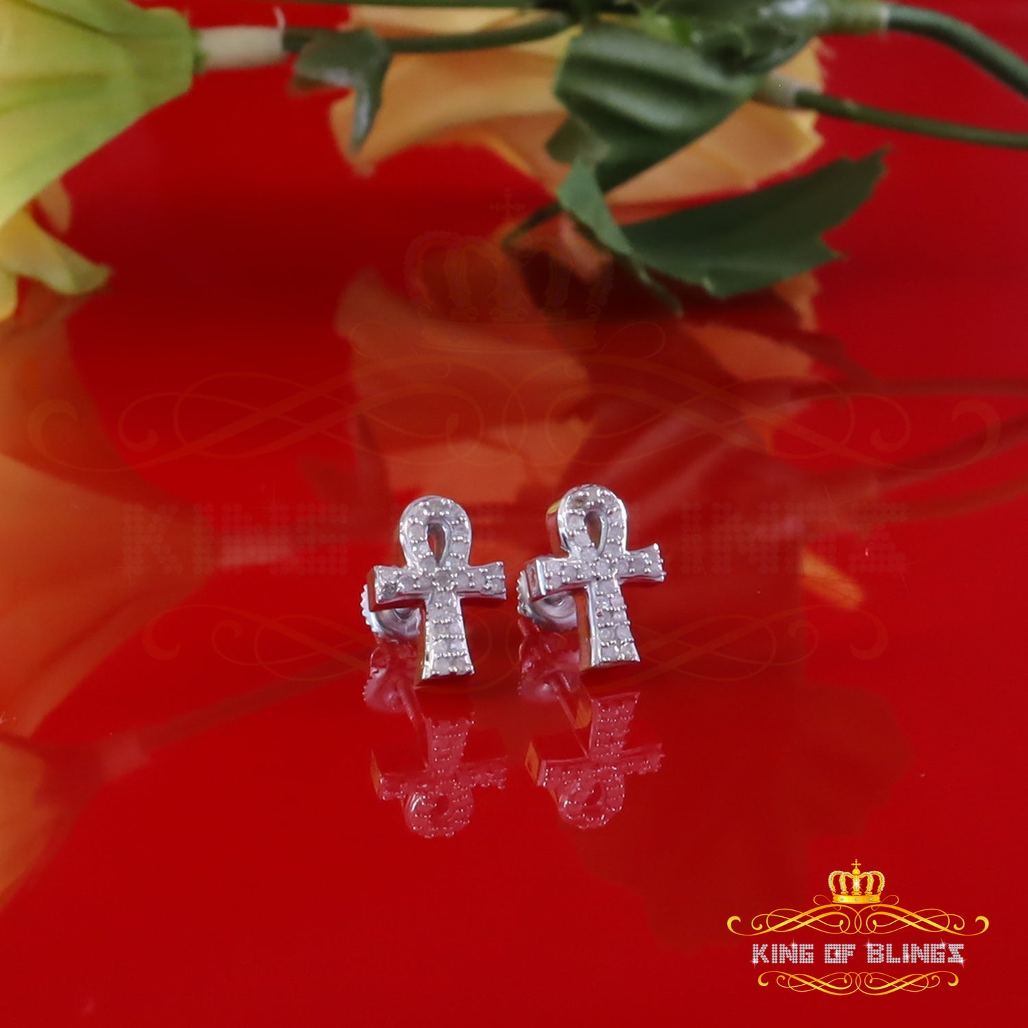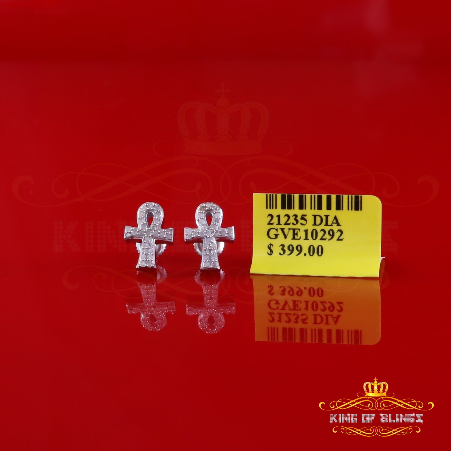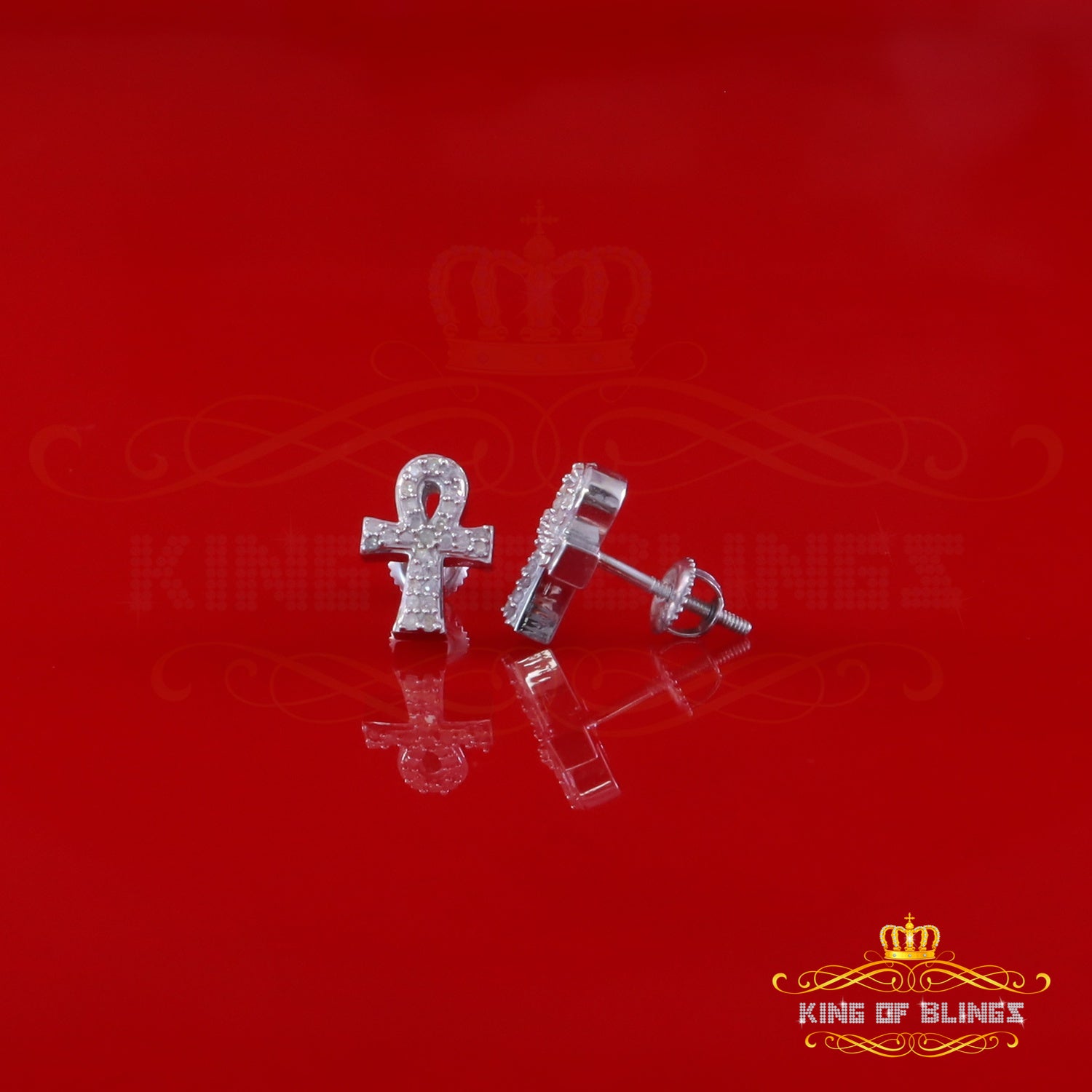 King Of Bling's New 0.25ct Diamond 925 Sterling Silver White for Men's & Women Stud ANKH Earring